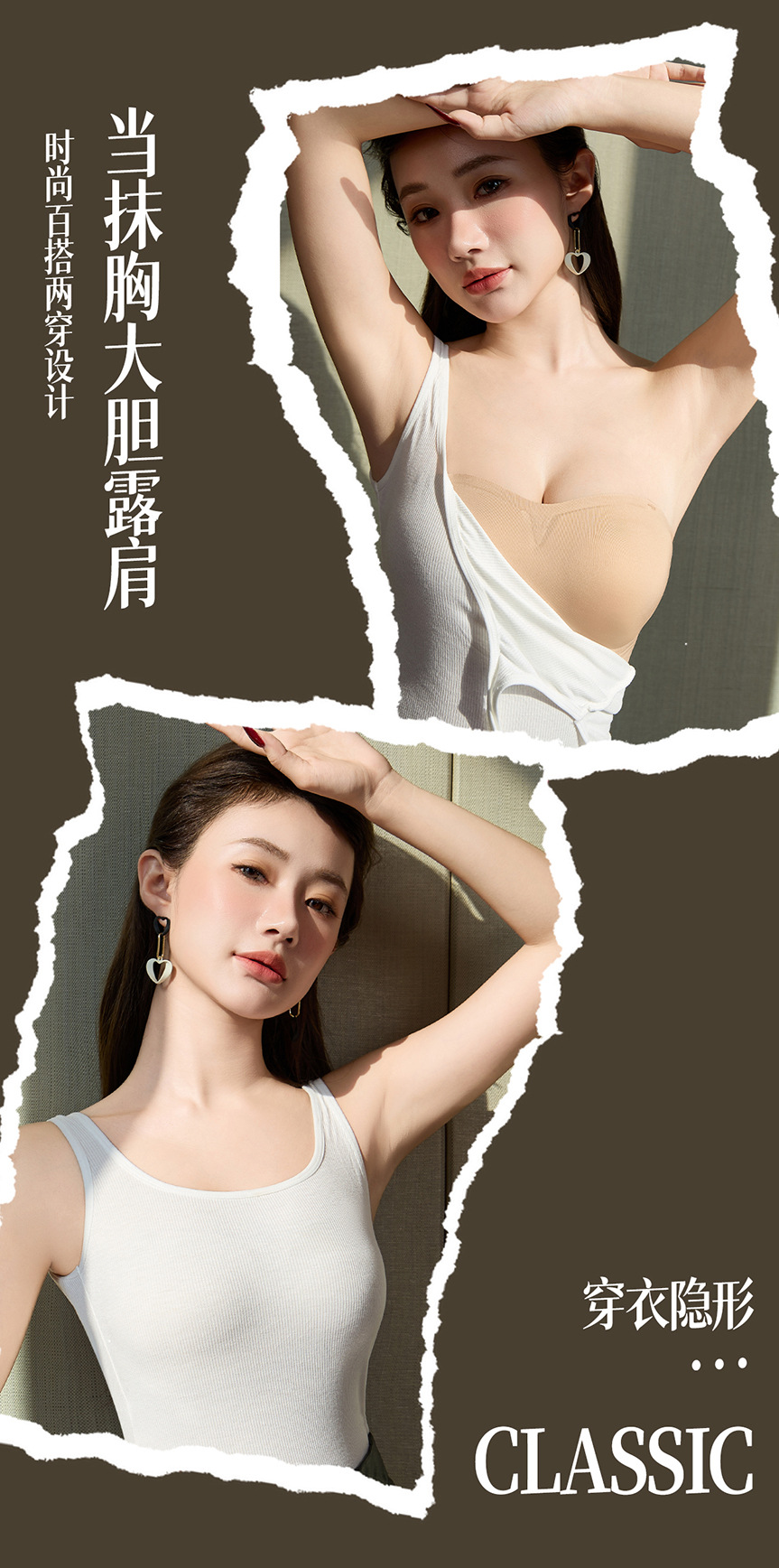 국경 간 폭발 보이지 않는 추적없는 어깨없는 속옷 여성의 미끄럼 방지 작은 가슴 모임 아름다운 등받이 여름