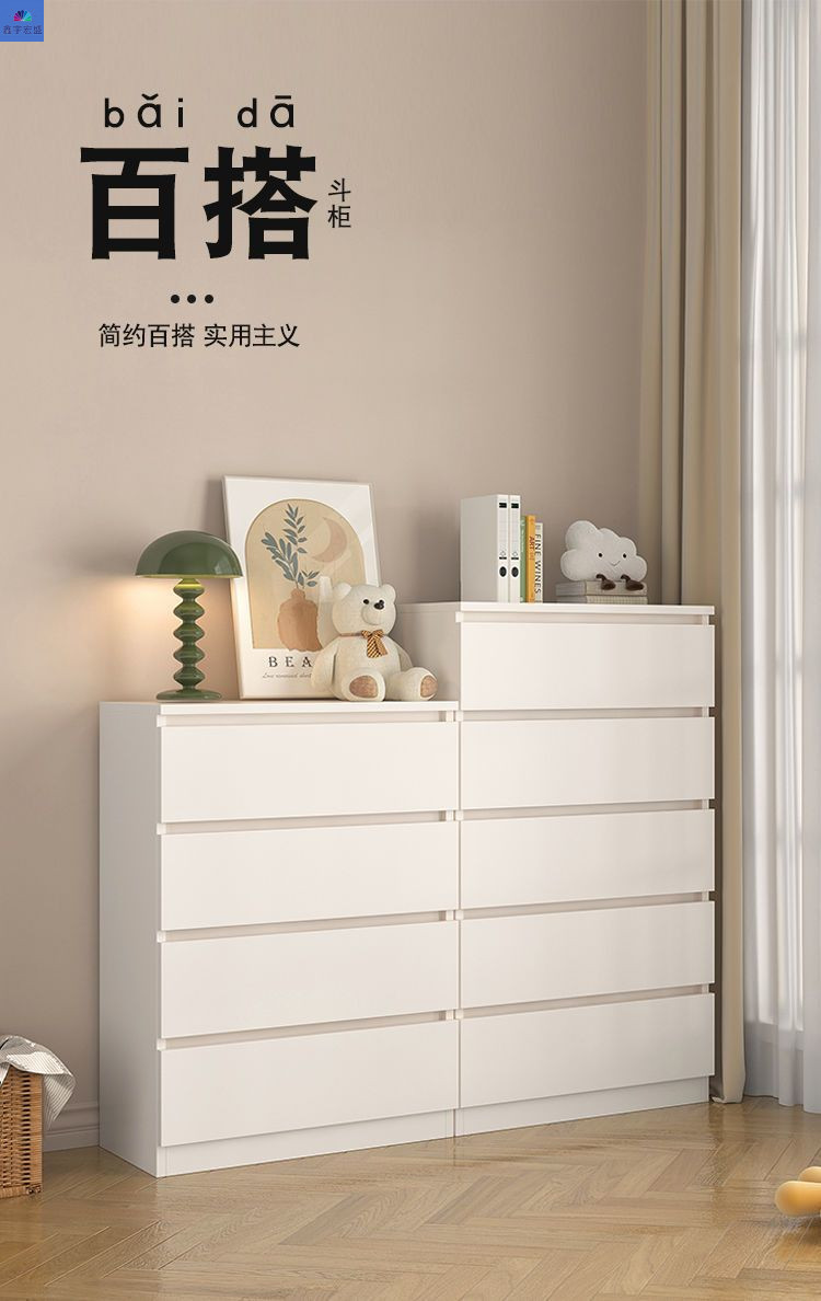 서랍 저장 캐비닛의 간단한 단단한 나무 버킷 캐비닛 가정용 저장 캐비닛 서랍 유형 저장 캐비닛 벽 크림 스타일 가슴