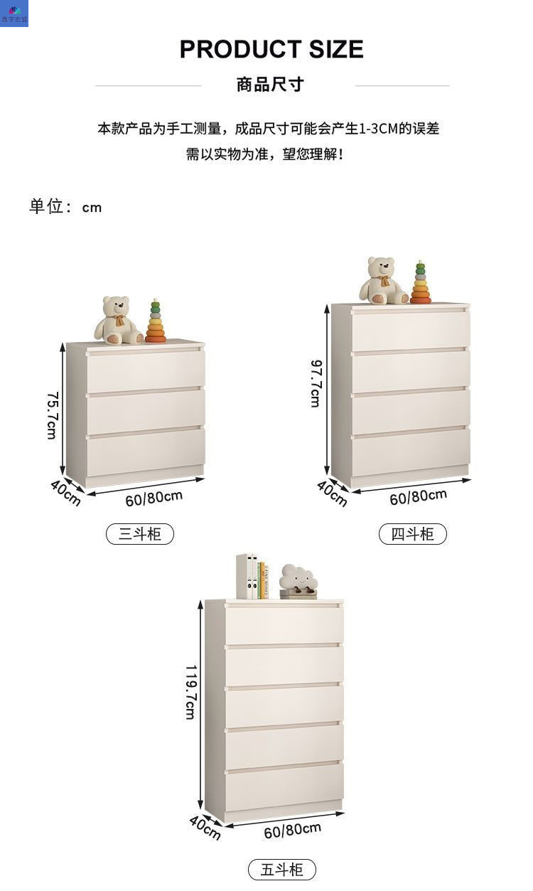 • 80cm 크림화이트 3단 서랍장 [원목 에코보드]