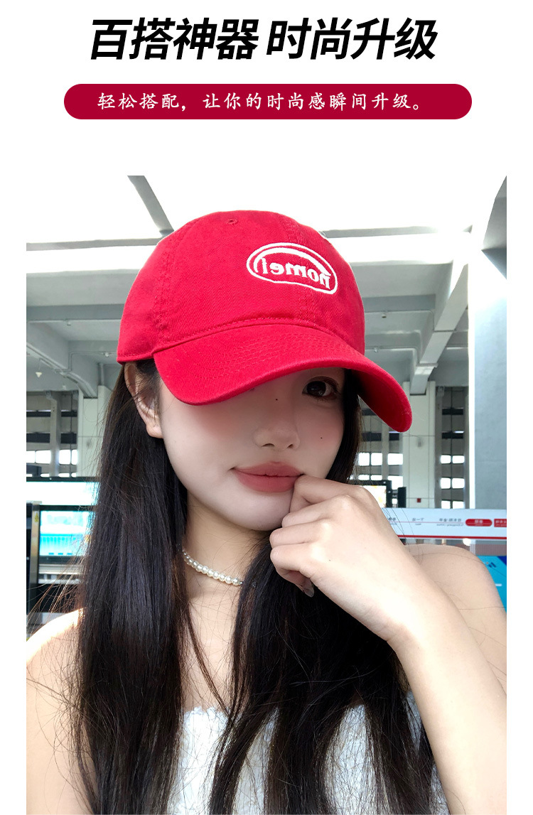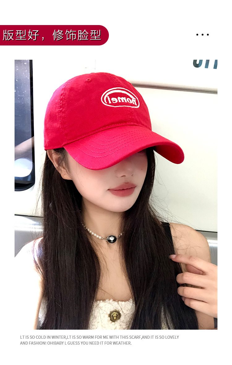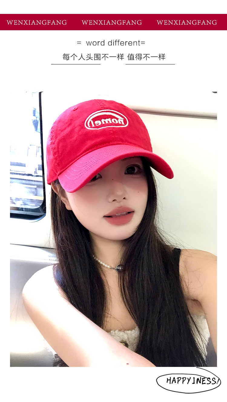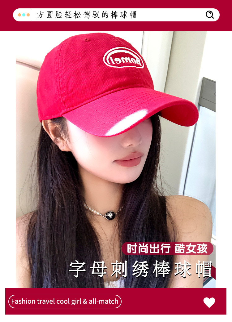 한국 스타일 문자 빨간 야구 모자 여자 봄 여름 얼굴 작은 올매치 모자 큰 브림 소프트 탑 캡스토어 가기