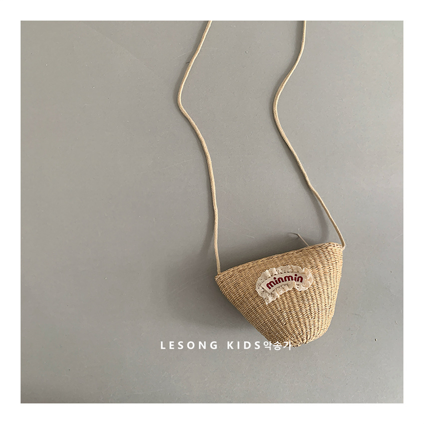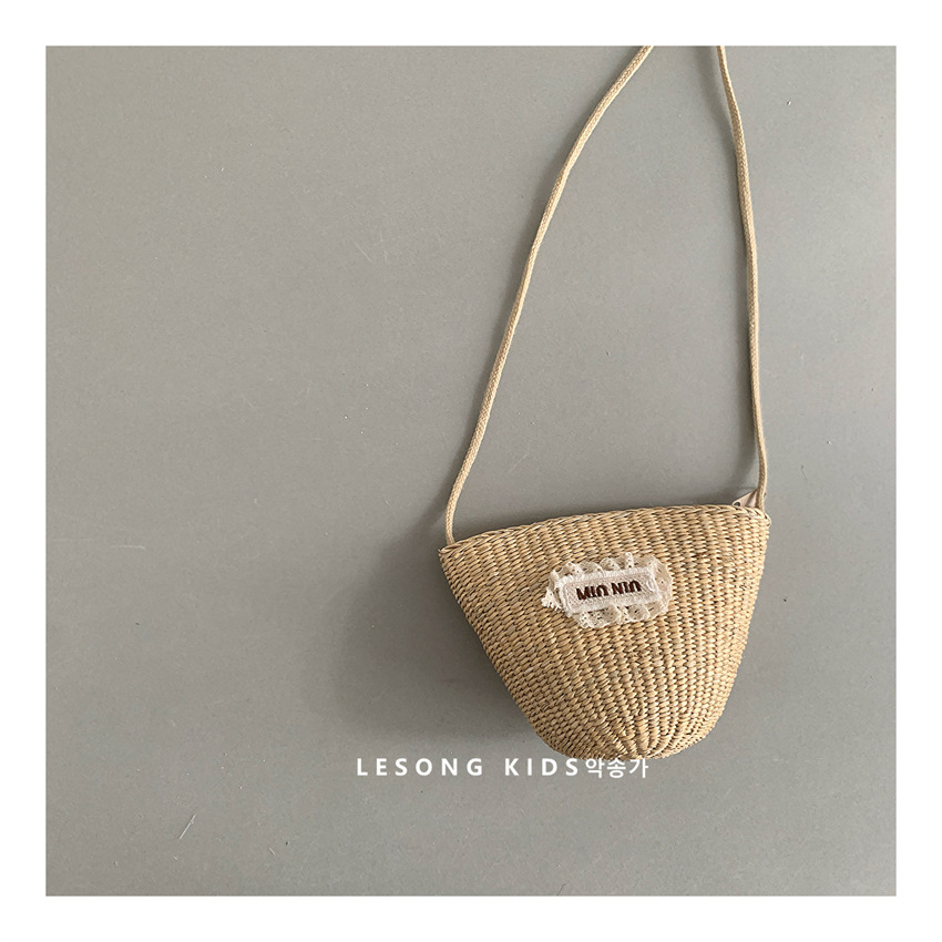 儿童春夏出游字母贴布斜跨草编小包