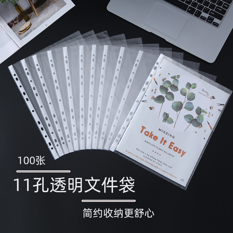 두꺼운 A4 투명 파일 가방 11 홀 루스 리프 삽입 가방 퀵 클립 삽입 정보 저장 가방 사무용품스토어 가기