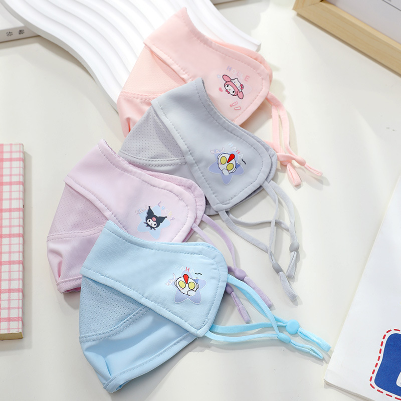 소년 소녀를위한 어린이 만화 얼음 실크 선 스크린 마스크 2025 새로운 여름 자외선 통기성 차양 마스크