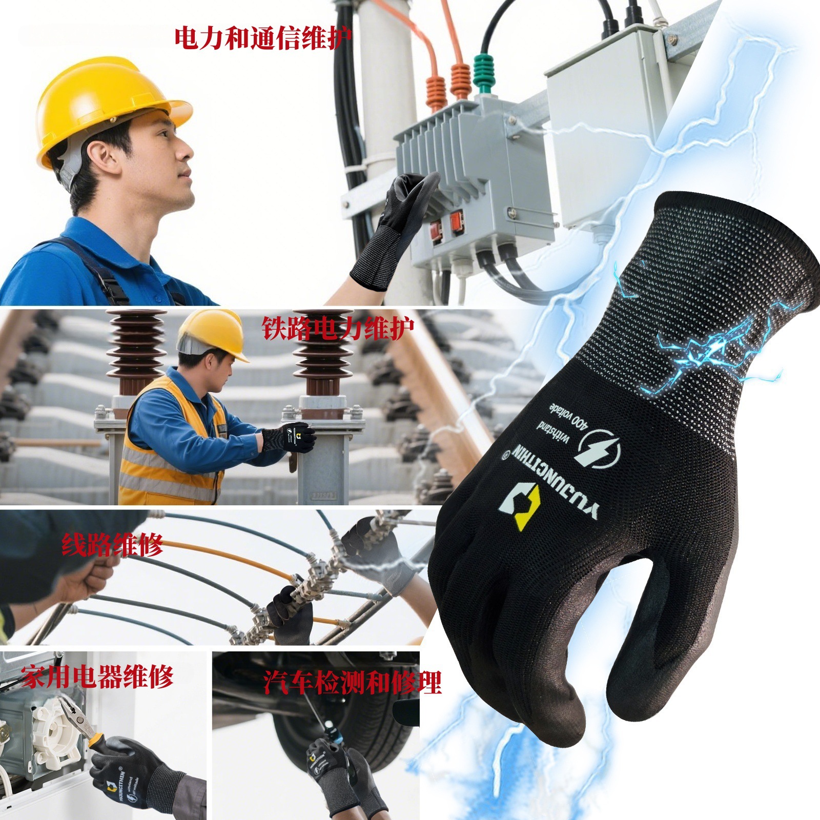 도매 400V 미끄럼 방지 내마모성 절연 장갑 500v 라이브 작업 충격 방지 스쿼시 터치 스크린 전기 장갑스토어 가기