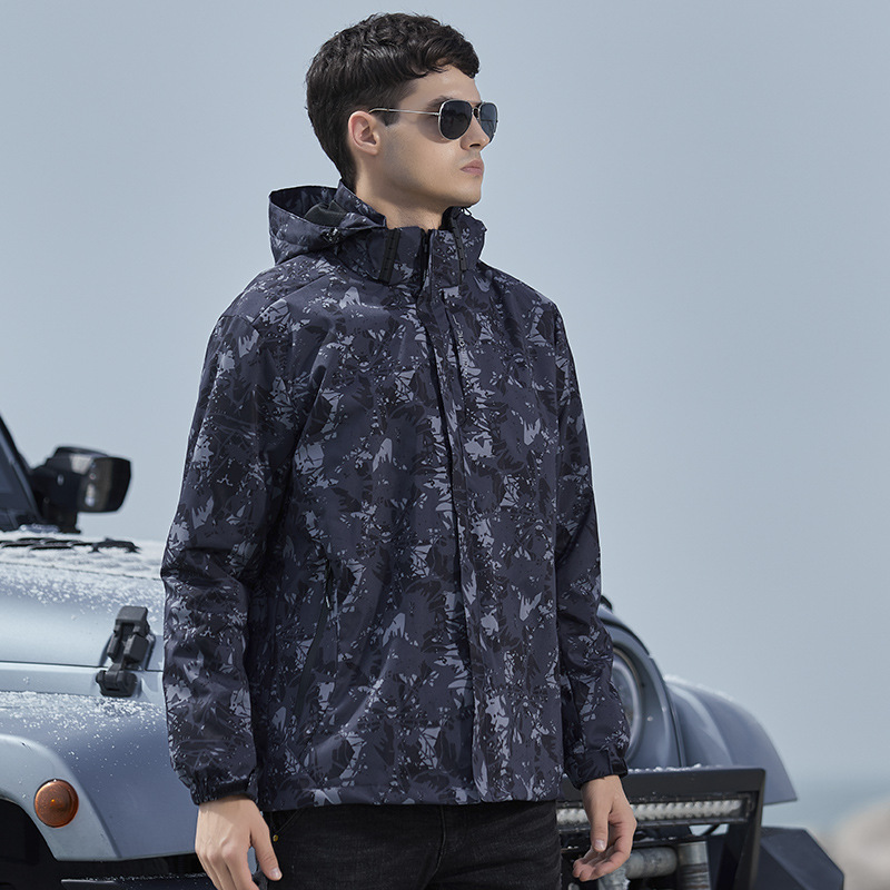 남성과 여성을 위한 봄과 가을 재킷 새로운 3-in-1 후드 재킷 얇은 단일 러쉬 3방지 작업복 야외 등산