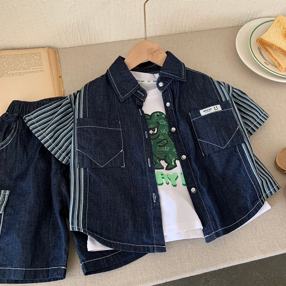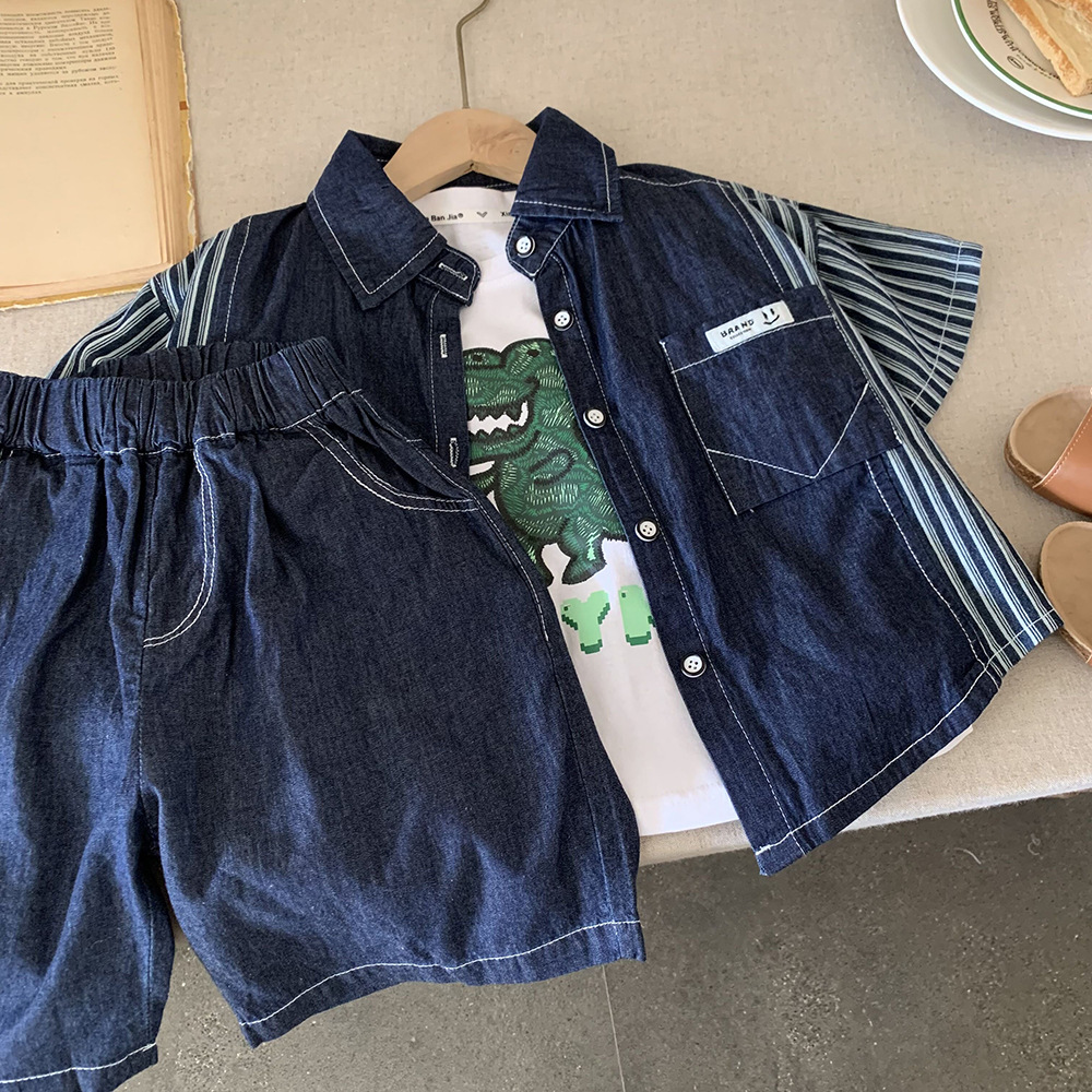 2025 년 여름 새 소년 클래식 세척 유행 데님 반바지 어린이 한국 아동복 바지 세트