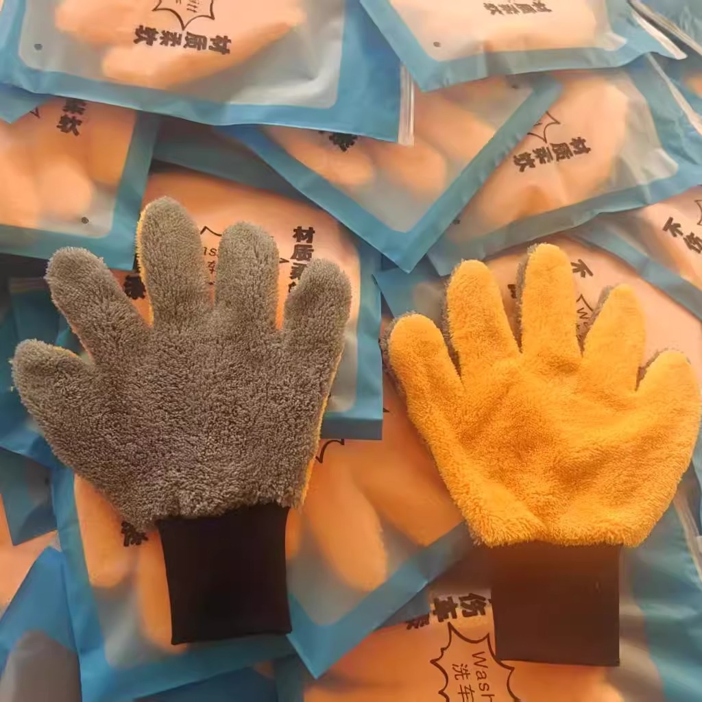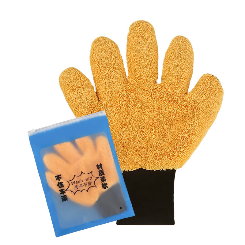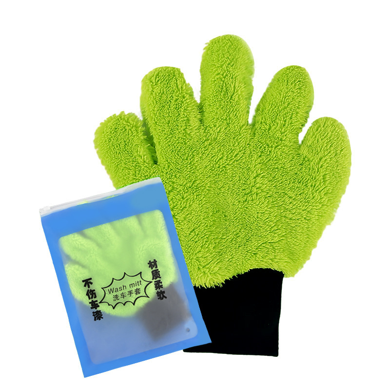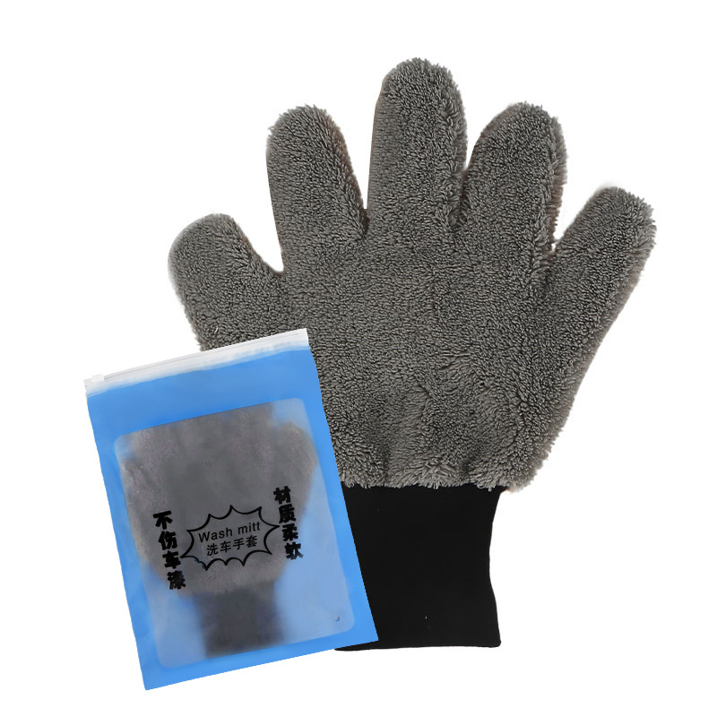 5 개의 손가락 세차용 장갑 양면 베어 포 세차용 장갑 두꺼운 산호 양털 세차용 장갑 마이크로 화이버 세차용스토어 가기