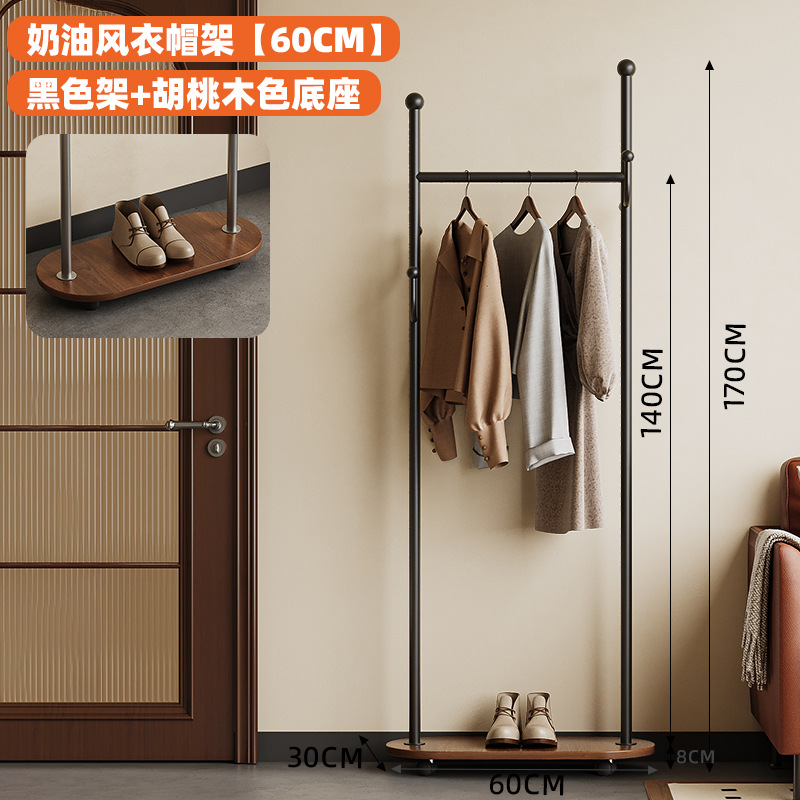 골동품 솔리드 우드 코트 랙 가정용 침실 작은 아파트 다기능 모바일 걸이 철 옷 걸이 보관