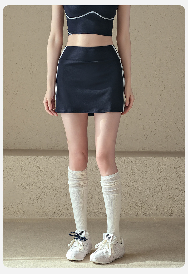 콘트라스트 컬러 요가 짧은 치마 여자 여름 뉴 배드민턴 테니스 스커트 안티 러닝 스포츠 피트니스 스커트스토어 가기