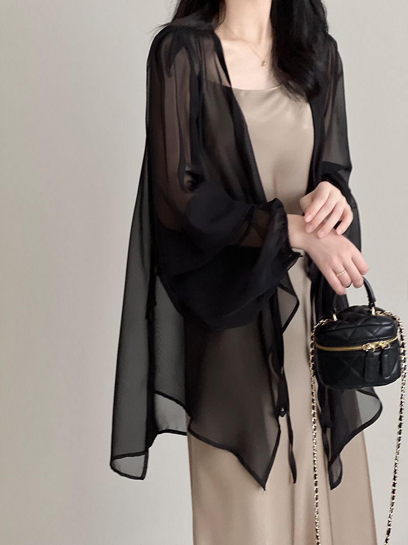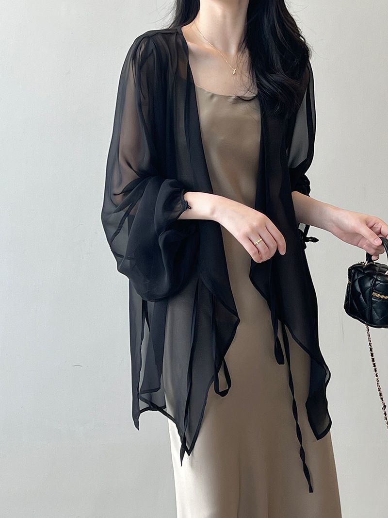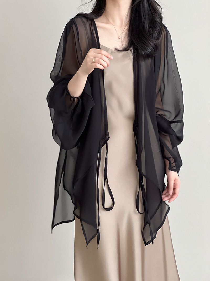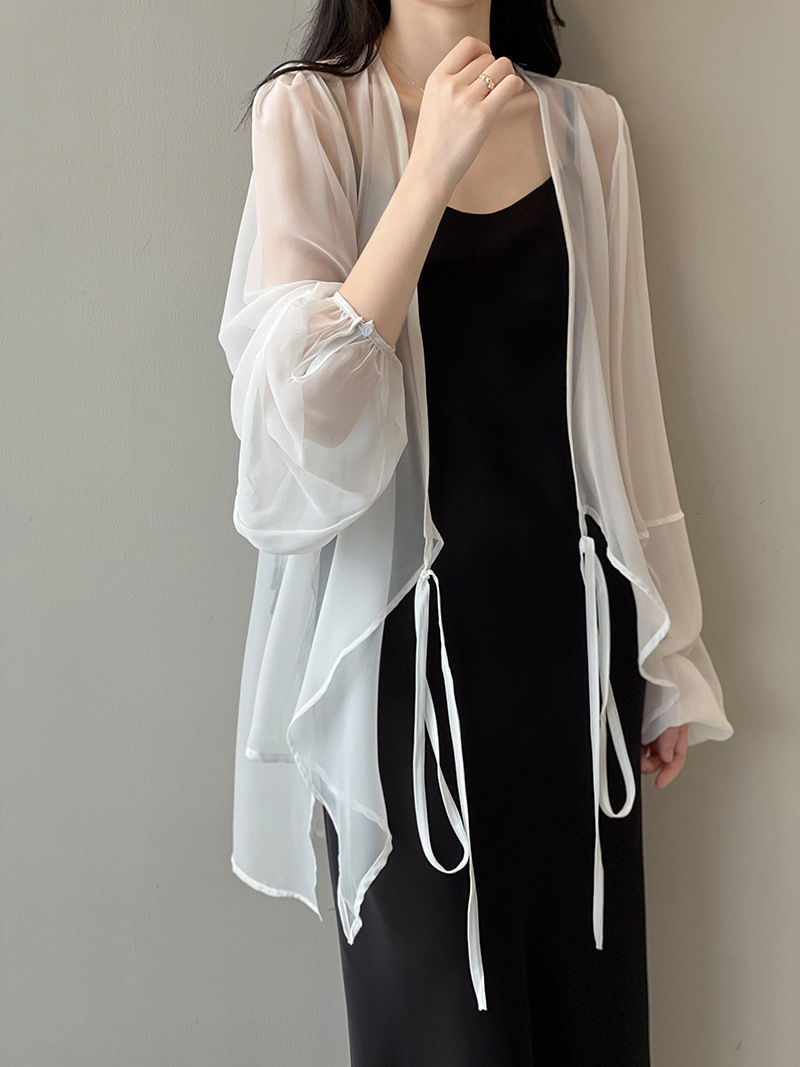 새로운 중국 스타일의 태양 보호 의류 카디건 아이스 실크 탑 맞춤형 하이 엔드 디자인 센스 니쉬 통기성 패션 아우터 착용 작은 블라우스스토어 가기