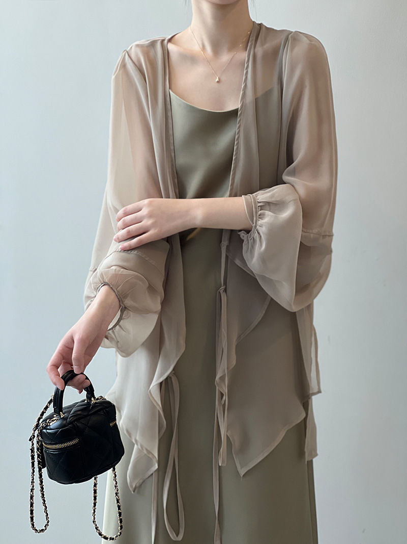 새로운 중국 스타일의 태양 보호 의류 카디건 아이스 실크 탑 맞춤형 하이 엔드 디자인 센스 니쉬 통기성 패션 아우터 착용 작은 블라우스