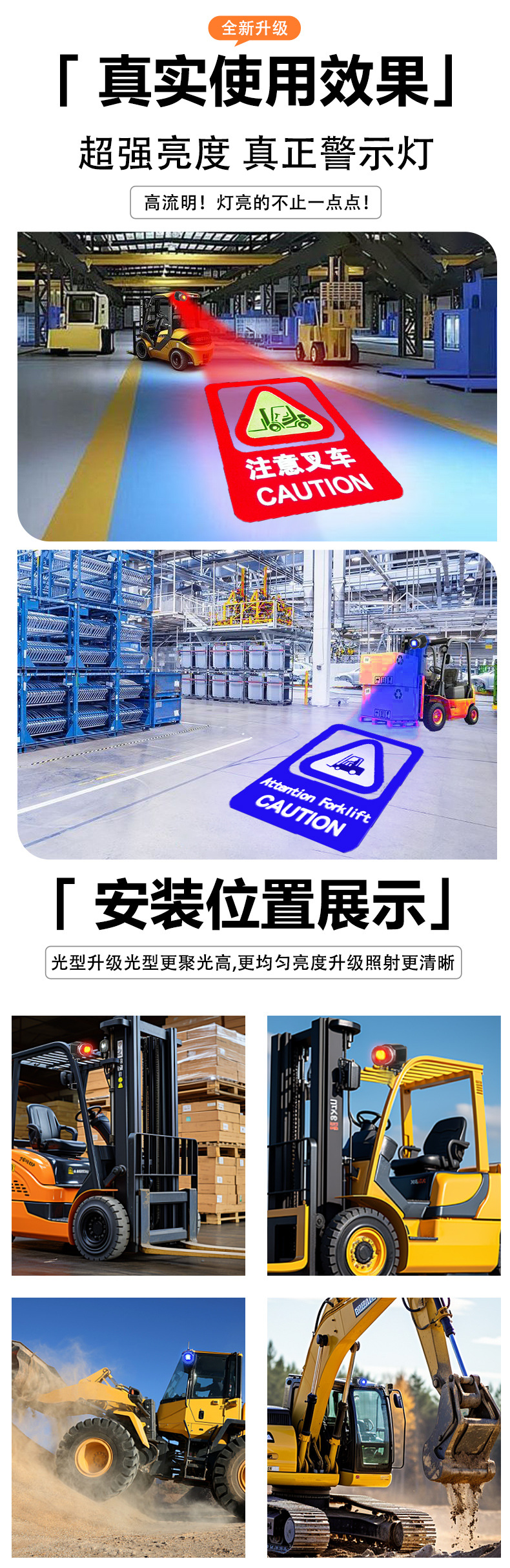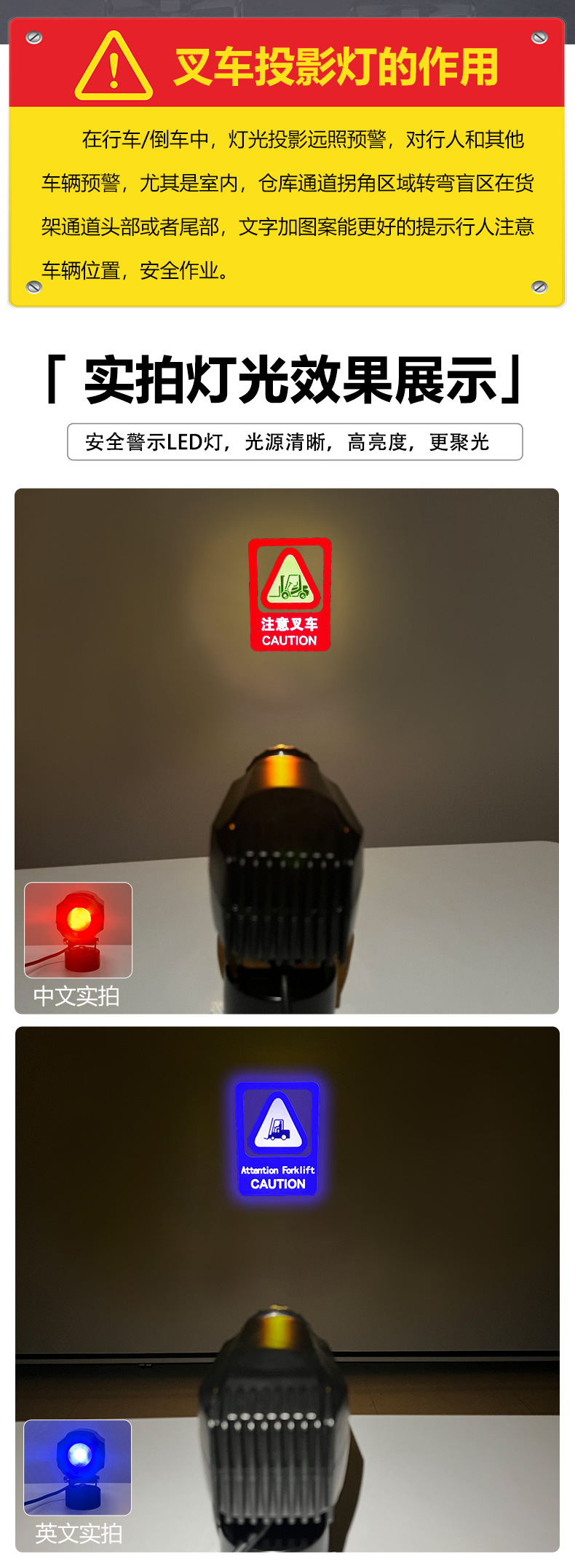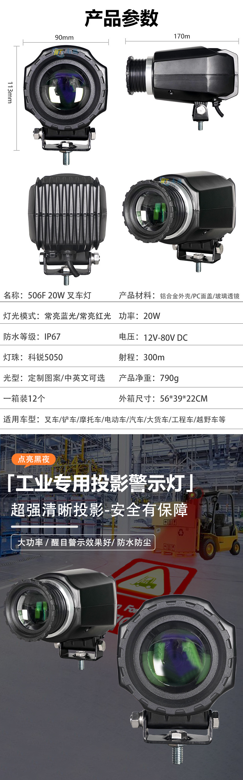 산업용 프로젝션 램프 지게차 안전 경고등 프롬프트 라인 지상 표시 패턴 스포트라이트 크레인 스포트라이트 빨간색과 파란색 빛