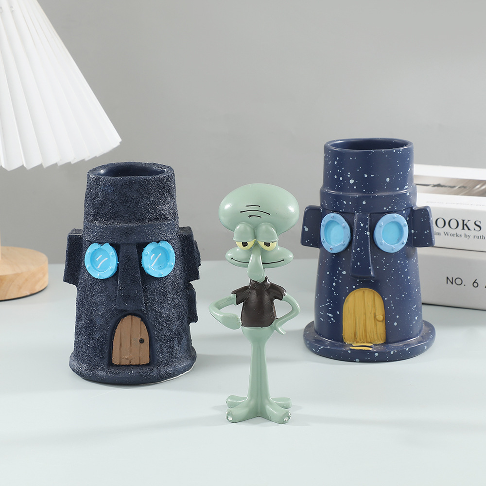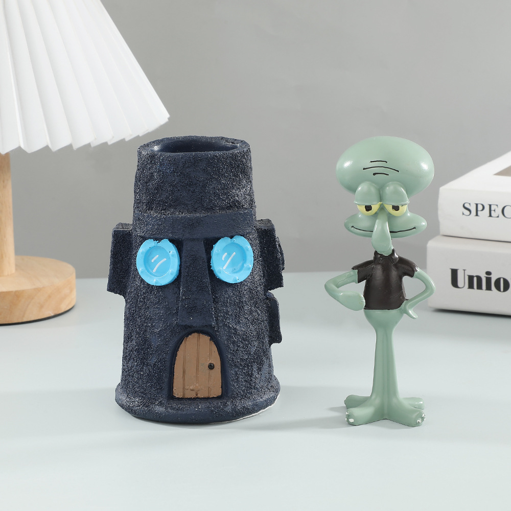 Squidward와 그의 집 펜 홀더 데스크탑 장식 장식품 학생 연필 문구 펜 홀더 보관함 수지 장식품스토어 가기
