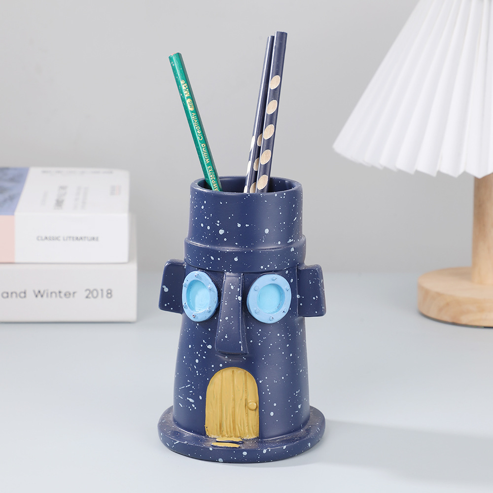 Squidward와 그의 집 펜 홀더 데스크탑 장식 장식품 학생 연필 문구 펜 홀더 보관함 수지 장식품