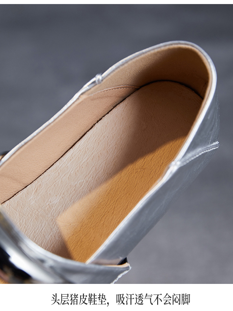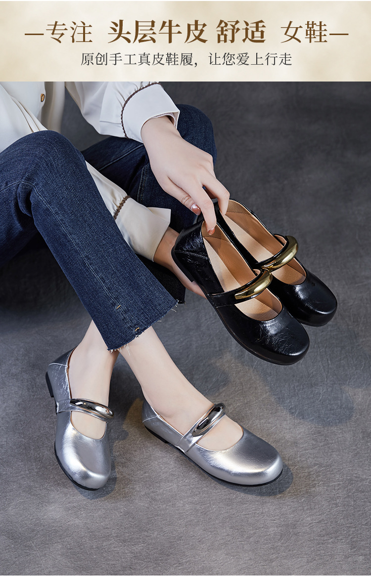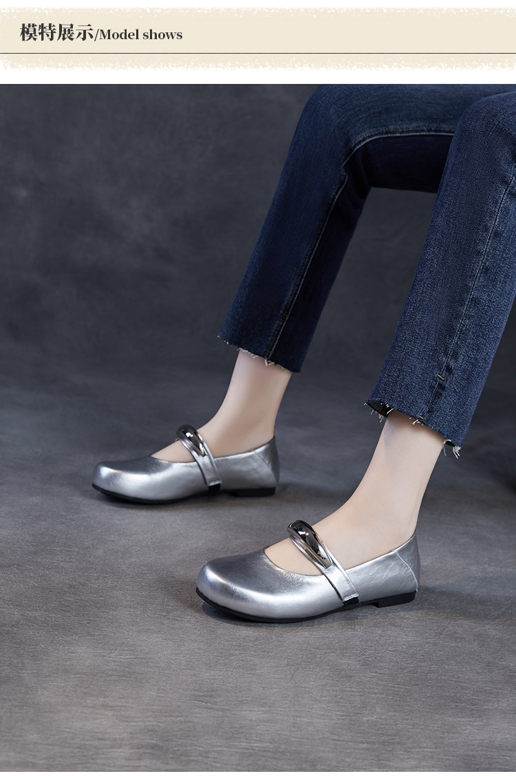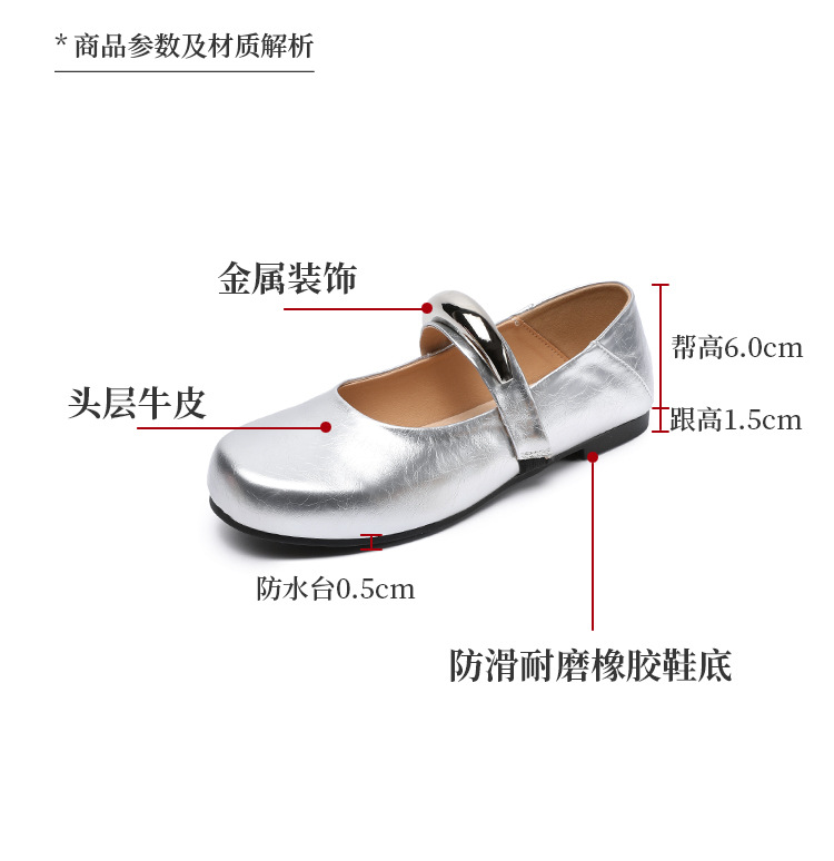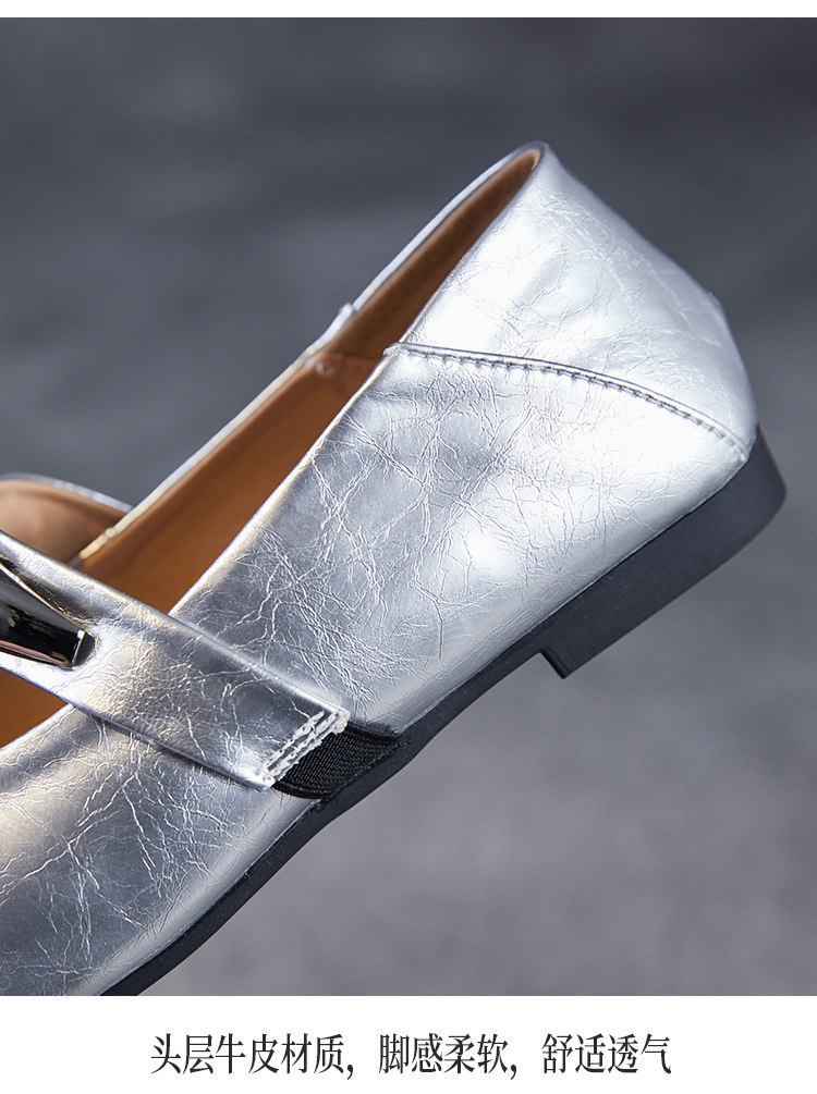 소 가죽 플랫 힐의 첫 번째 레이어 Mary Jane 신발 여성의 2025 새 봄과 여름 얕은 부드러운 바닥 실버 신발 여성 신발스토어 가기