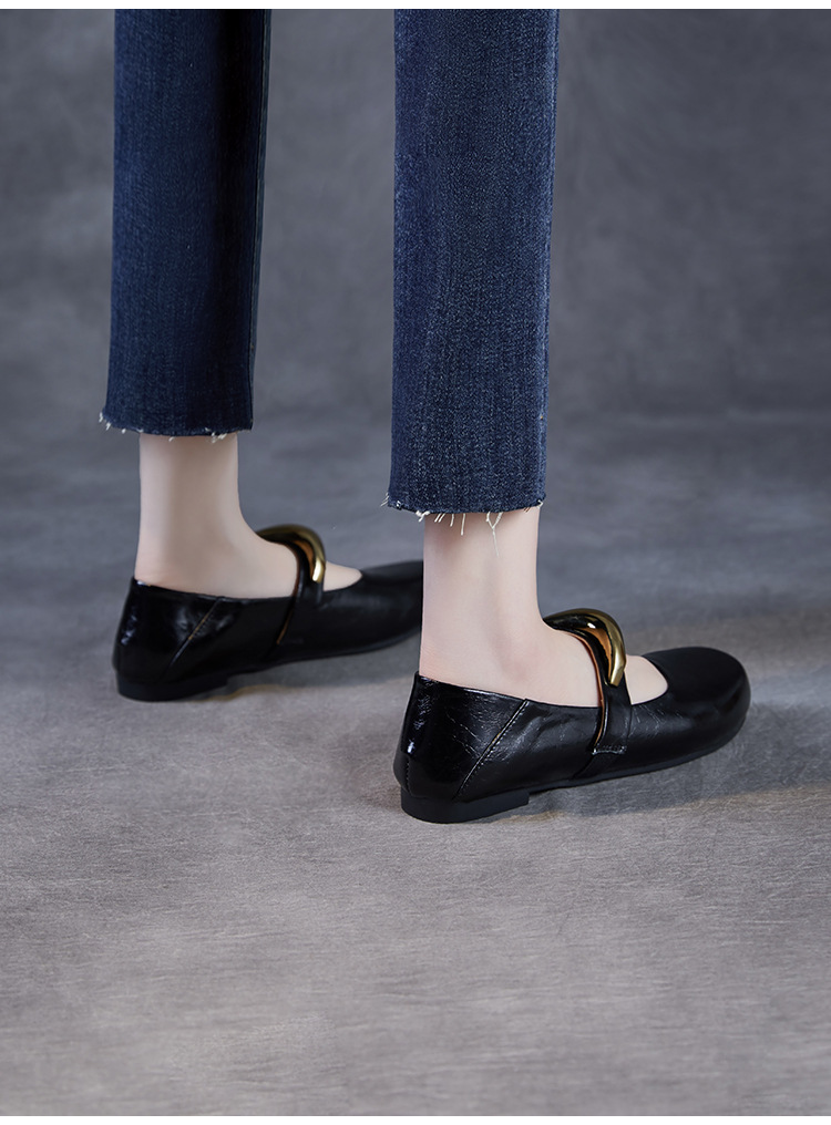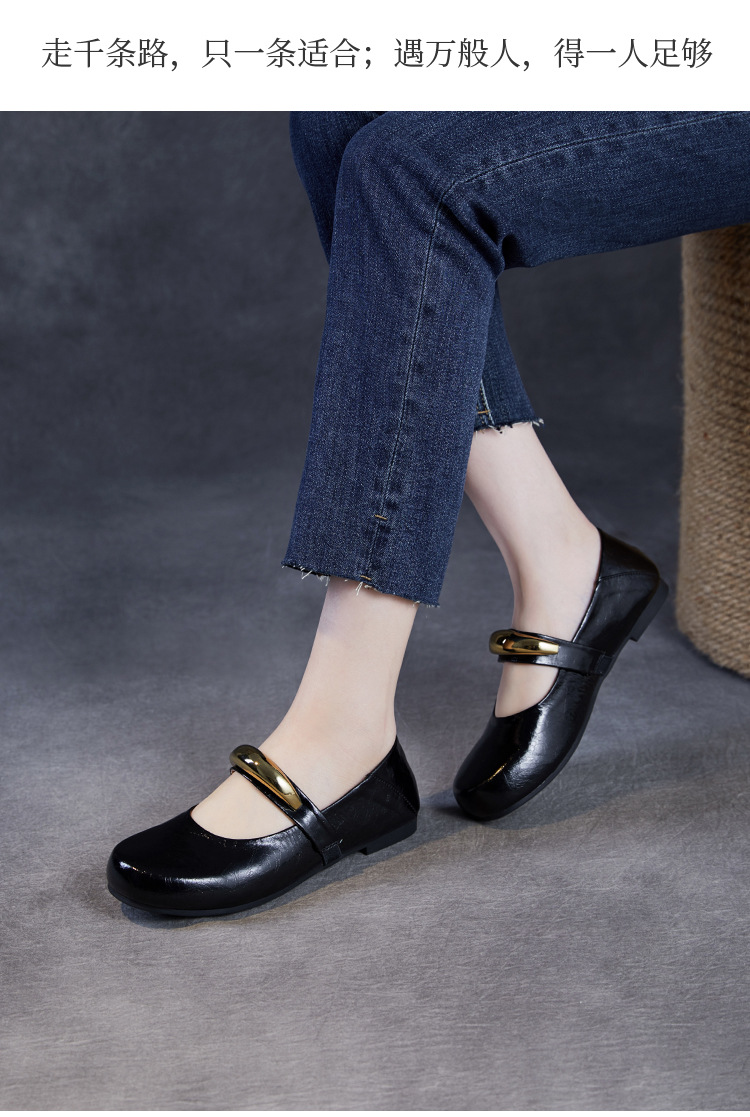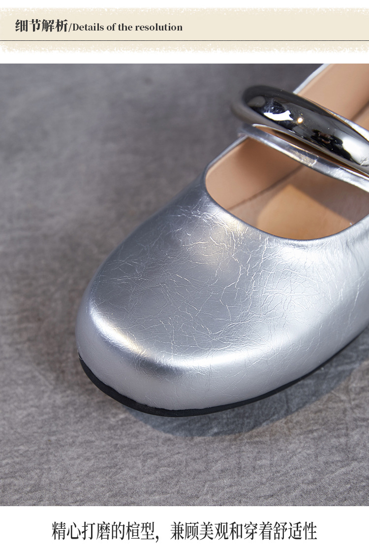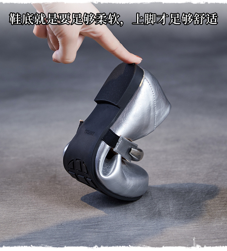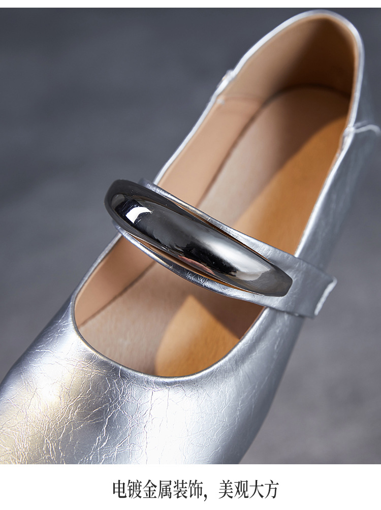 소 가죽 플랫 힐의 첫 번째 레이어 Mary Jane 신발 여성의 2025 새 봄과 여름 얕은 부드러운 바닥 실버 신발 여성 신발스토어 가기