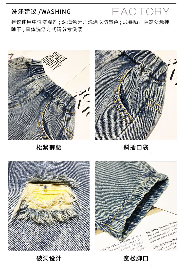 2025년 가을 남아용 데님 바지 새로운 스타일 아동용 트렌디하고 패셔너블한 찢어진 바지 아기의 멋진 루즈 팬츠 트렌디