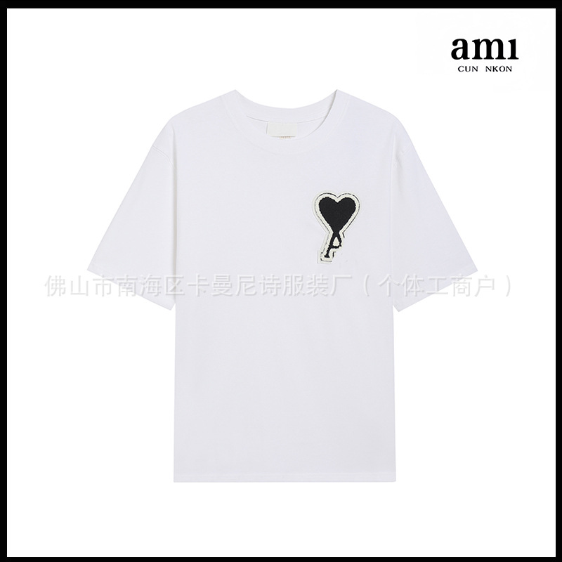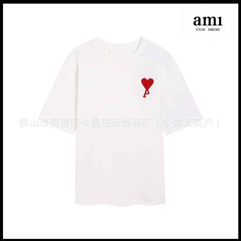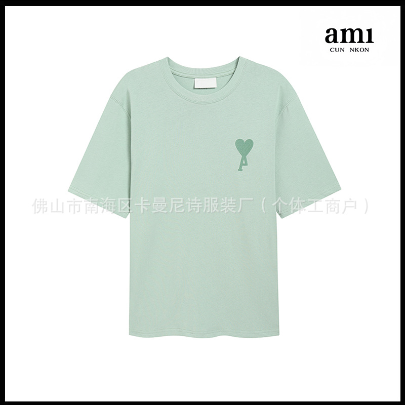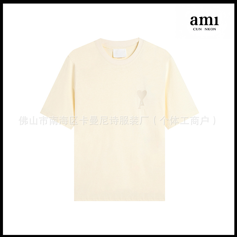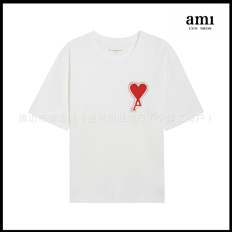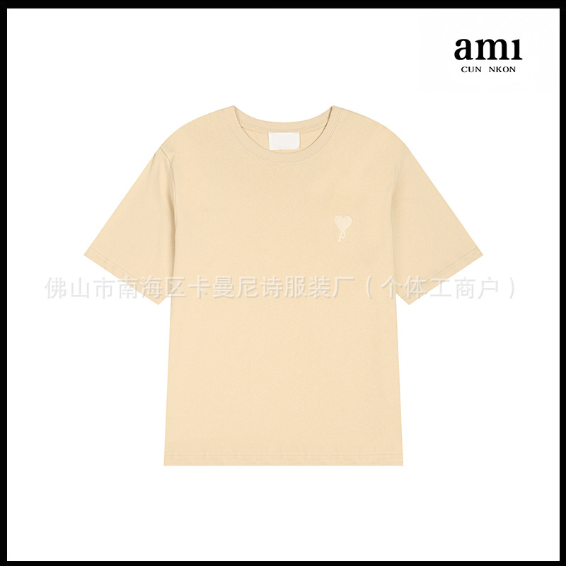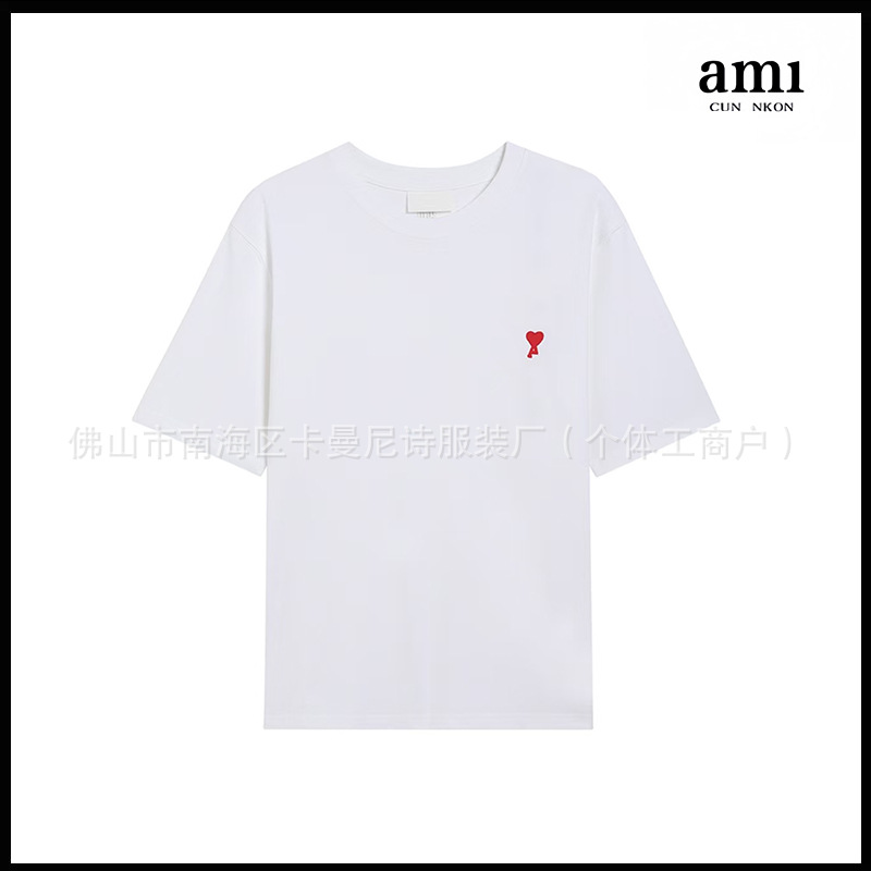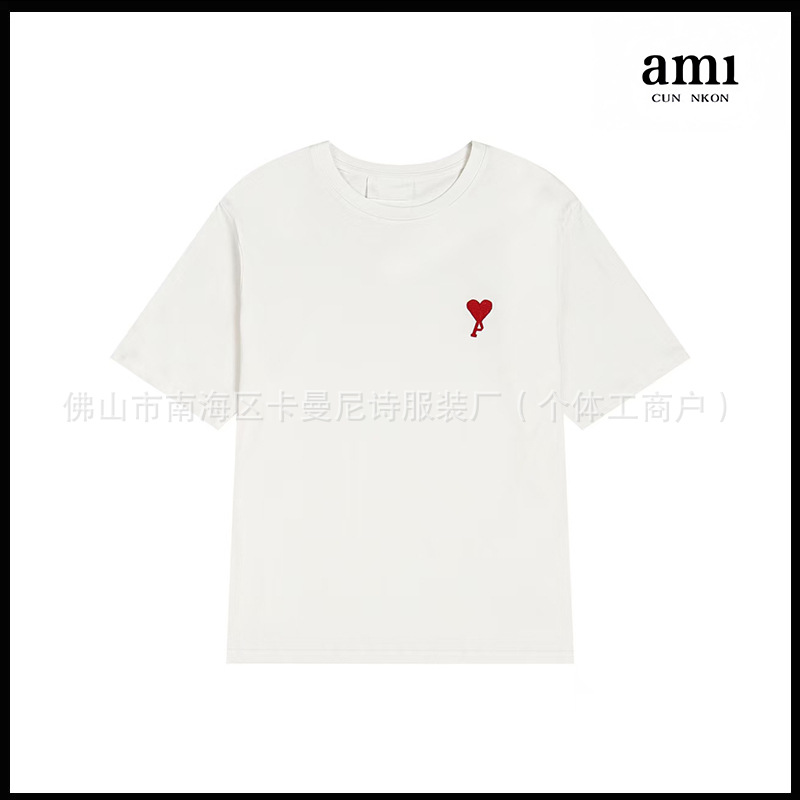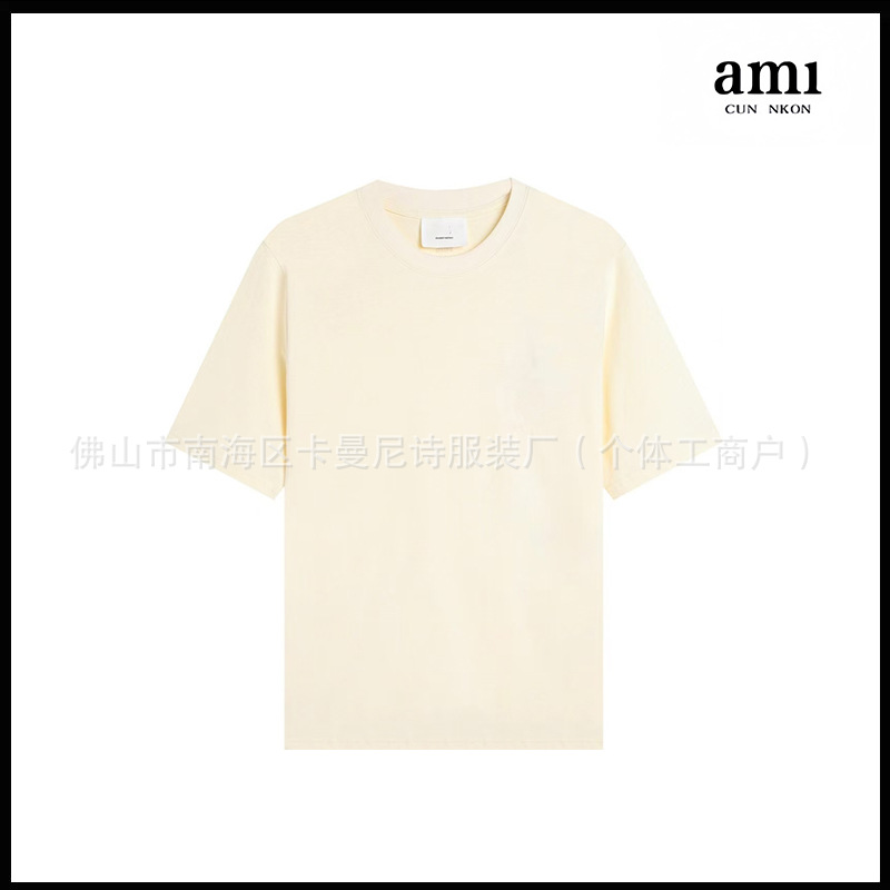 Ami kmns 남성과 여성의 순수 코튼 반팔 느슨한 캐주얼 라운드 넥 티셔츠 여름 트렌디 브랜드 크로스 보더 탑