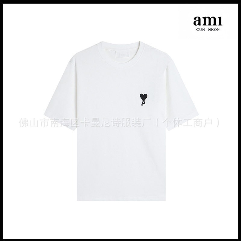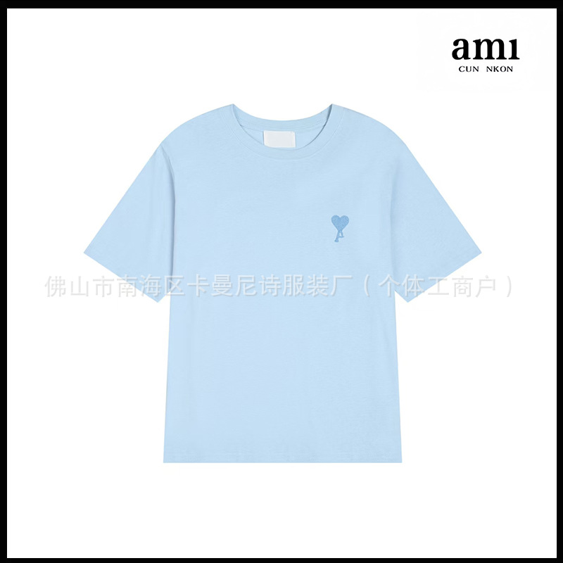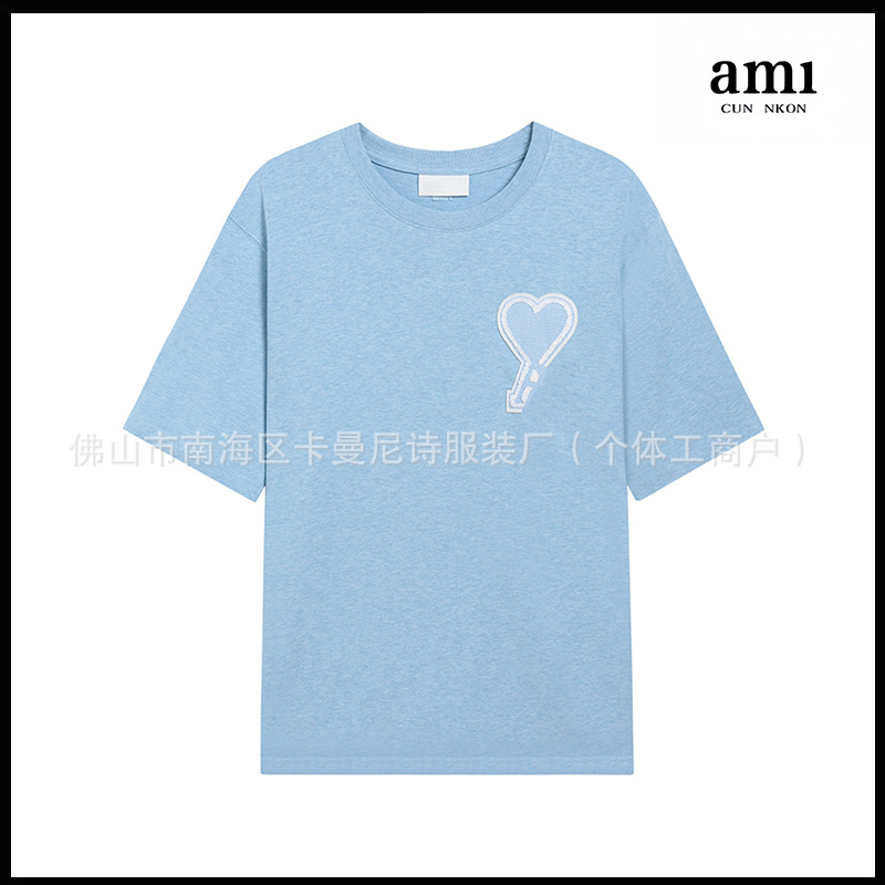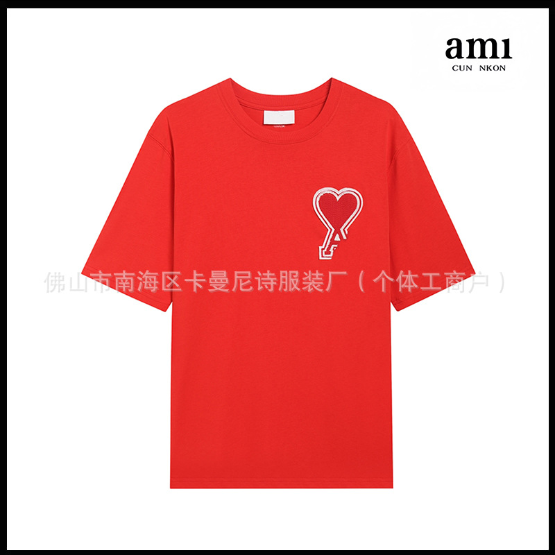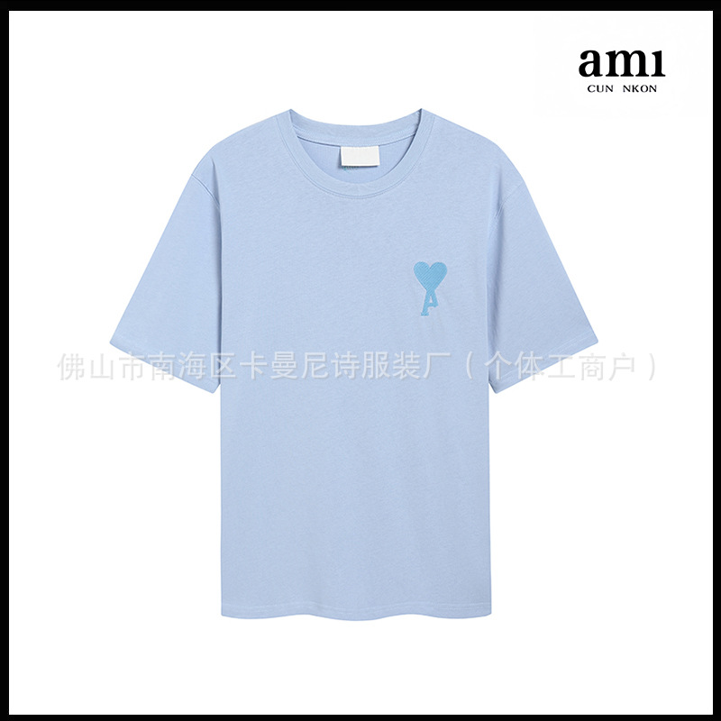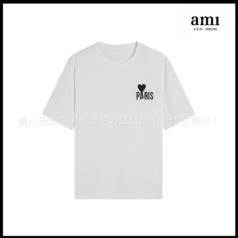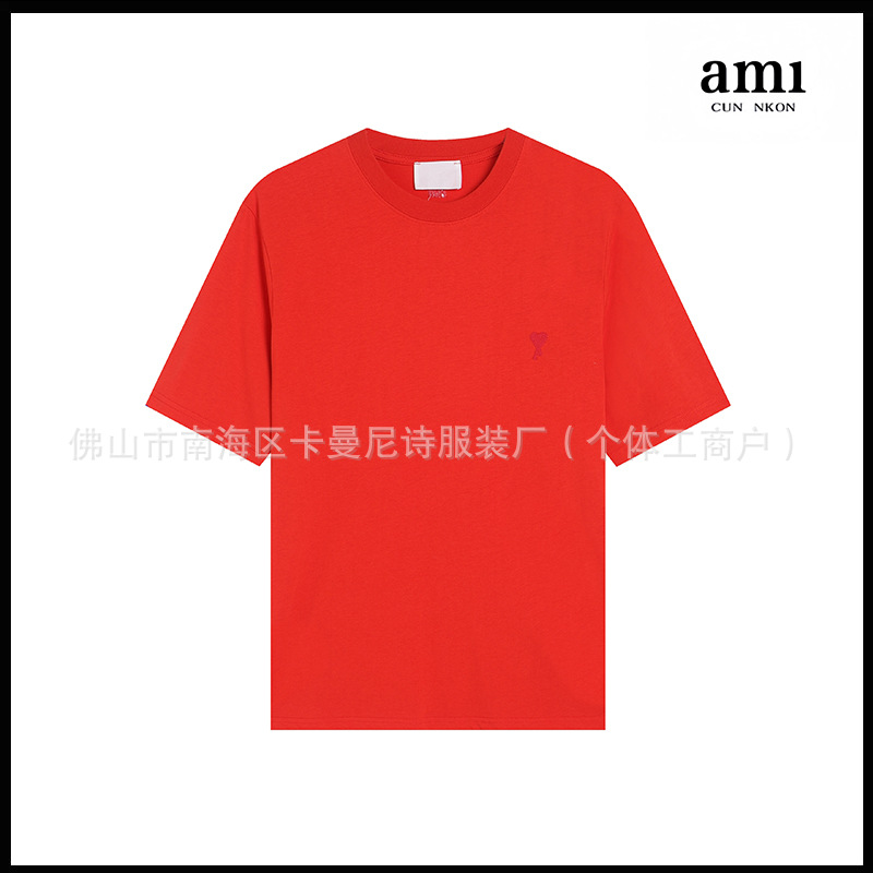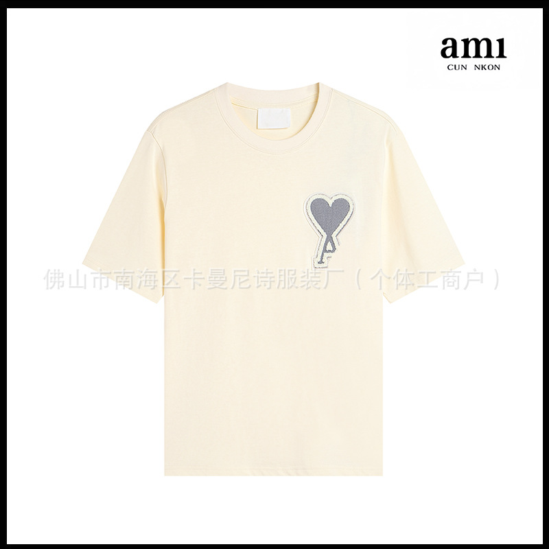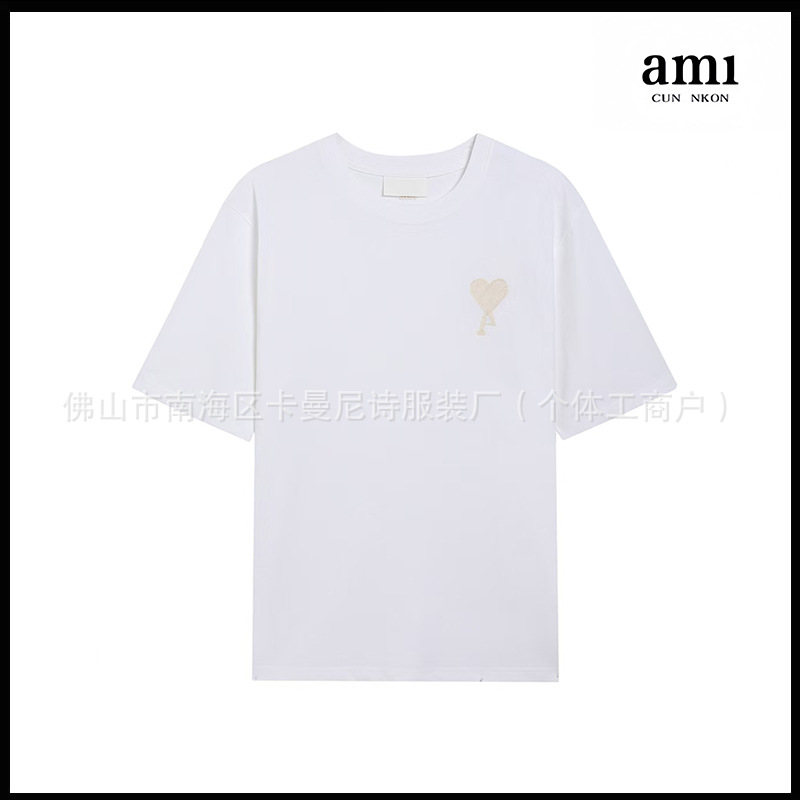 Ami kmns 남성과 여성의 순수 코튼 반팔 느슨한 캐주얼 라운드 넥 티셔츠 여름 트렌디 브랜드 크로스 보더 탑