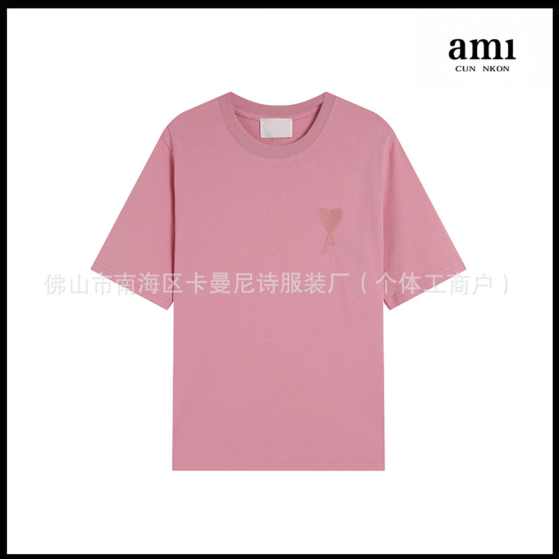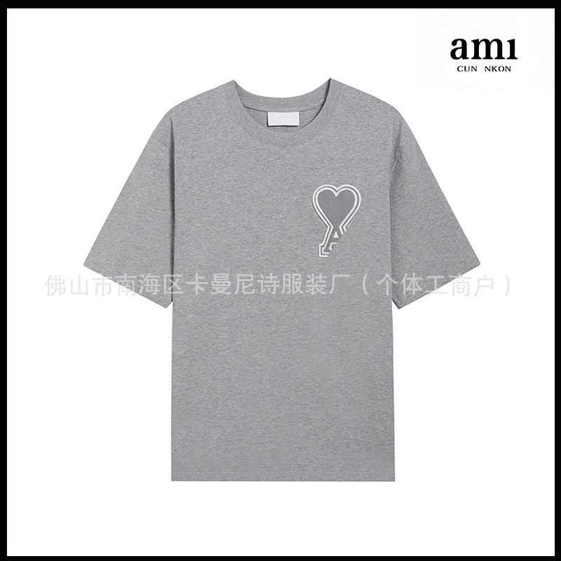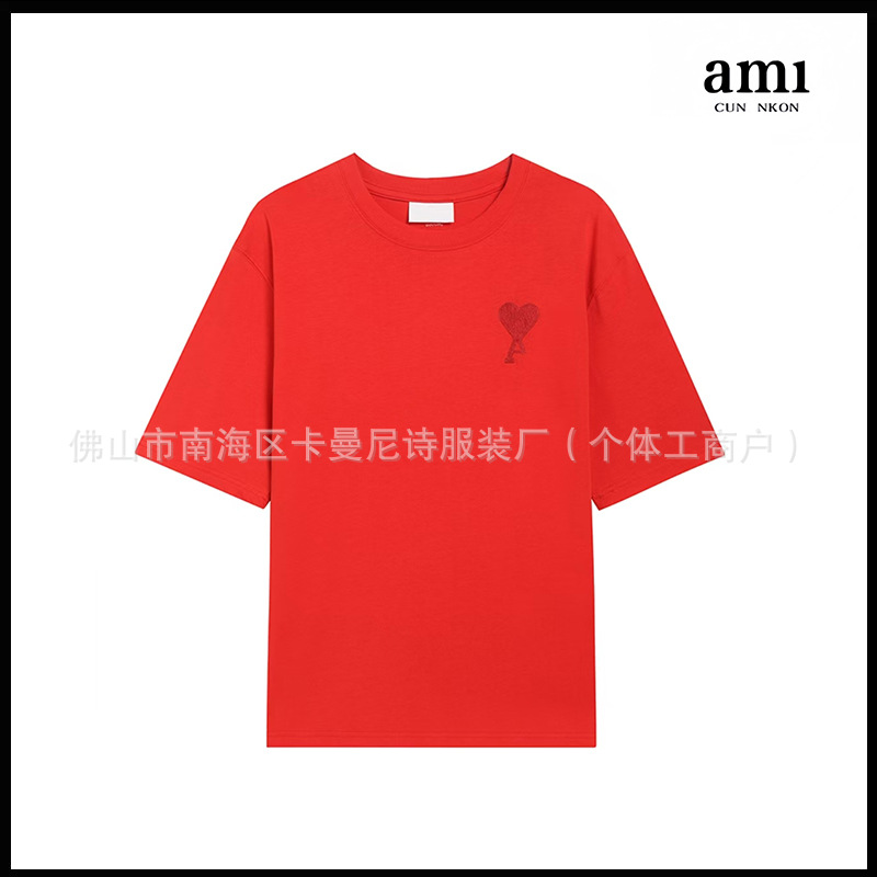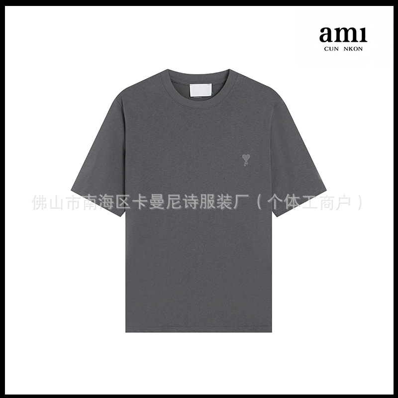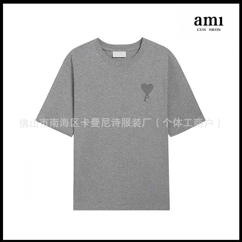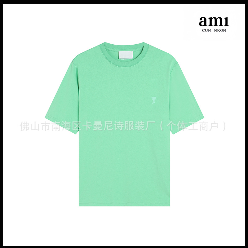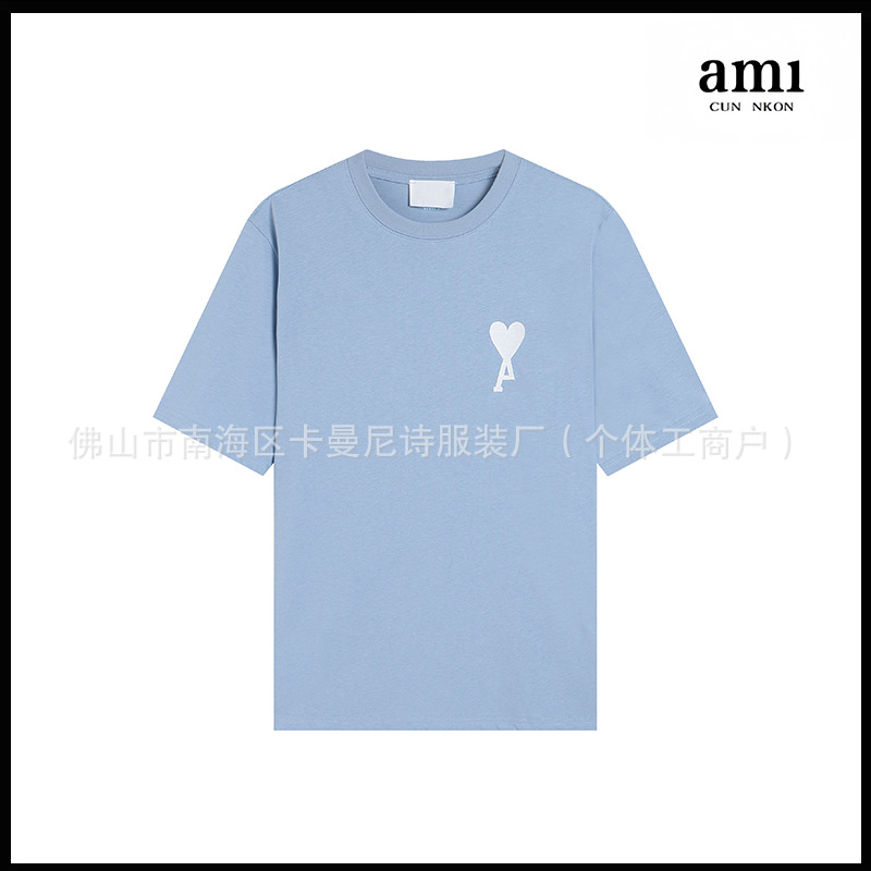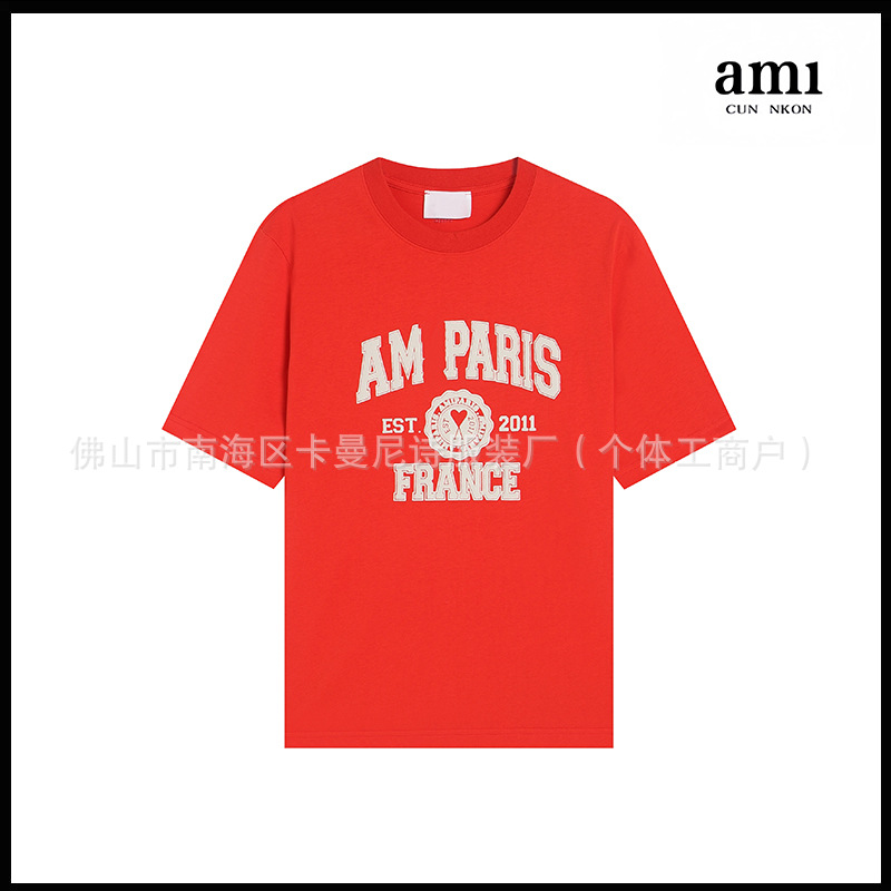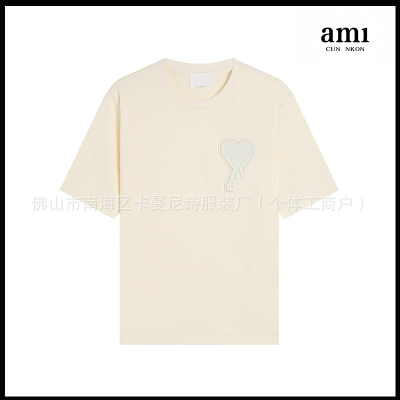 Ami kmns 남성과 여성의 순수 코튼 반팔 느슨한 캐주얼 라운드 넥 티셔츠 여름 트렌디 브랜드 크로스 보더 탑
