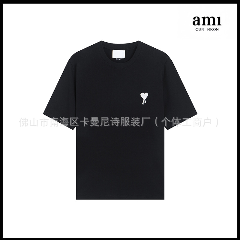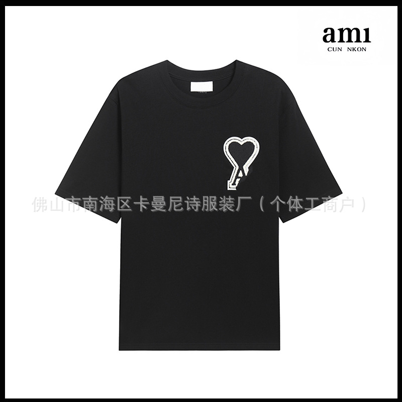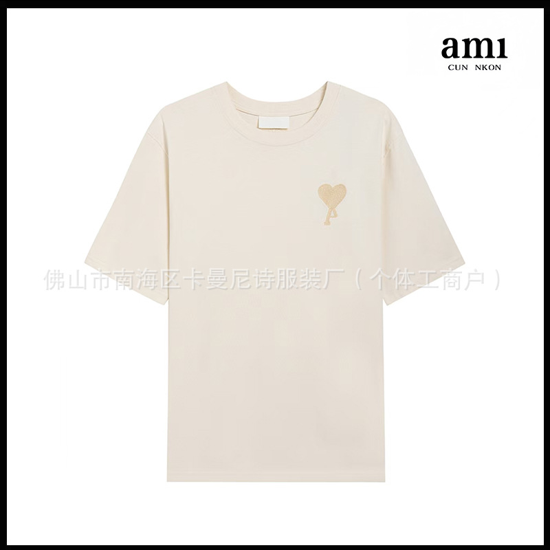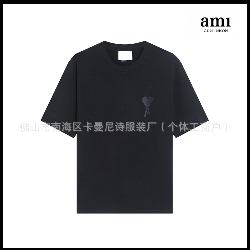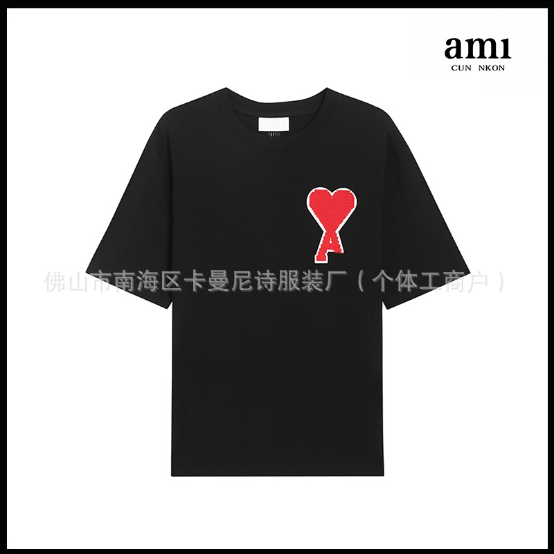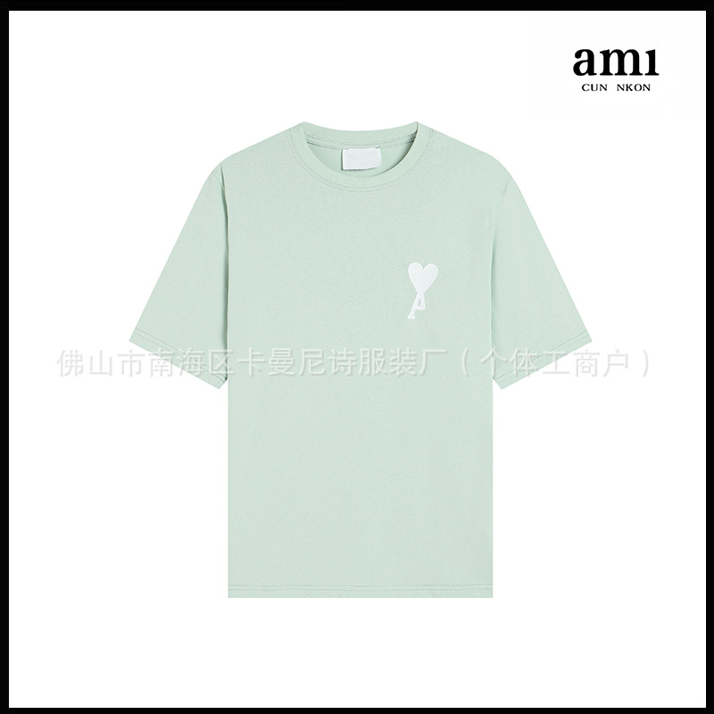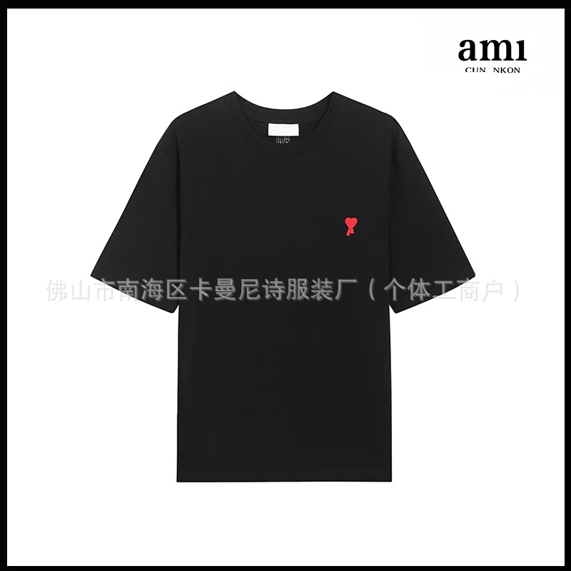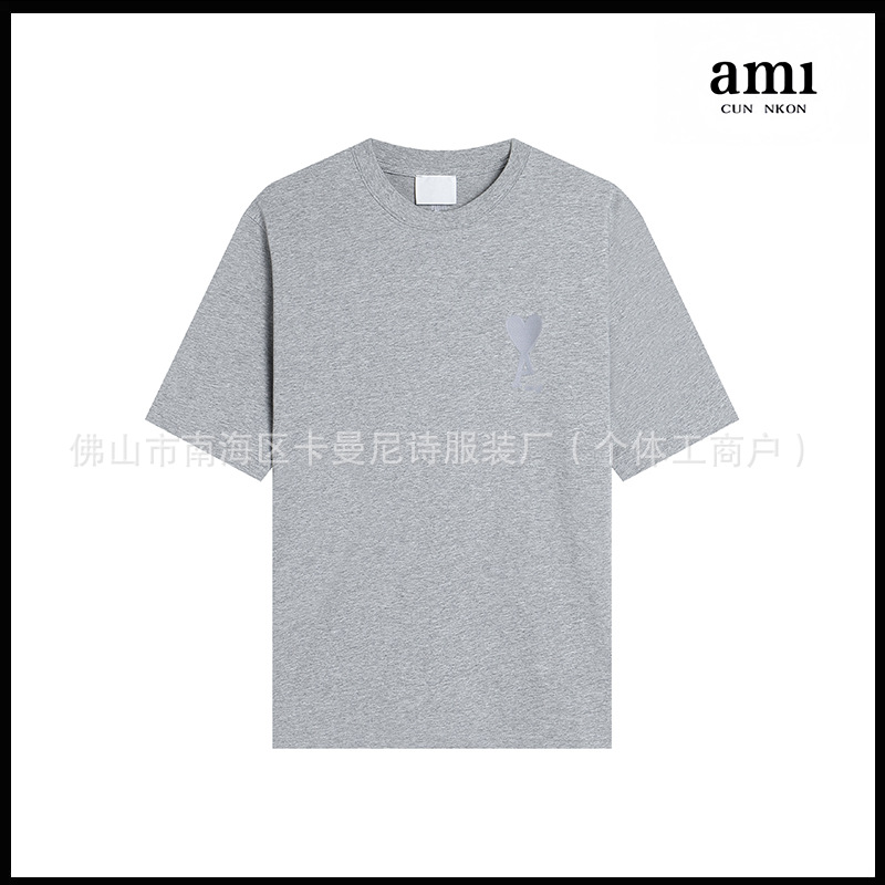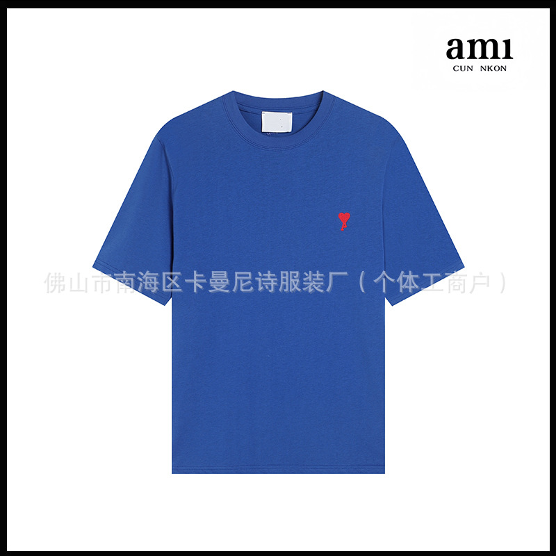 Ami kmns 남성과 여성의 순수 코튼 반팔 느슨한 캐주얼 라운드 넥 티셔츠 여름 트렌디 브랜드 크로스 보더 탑