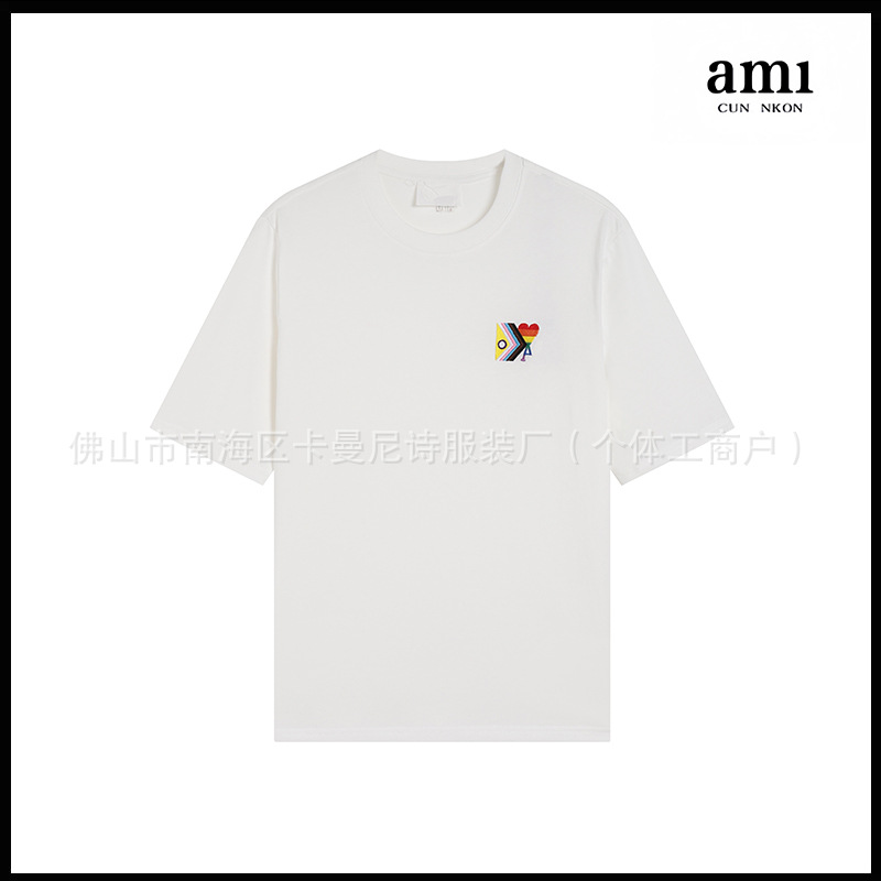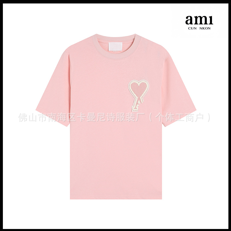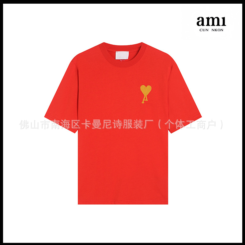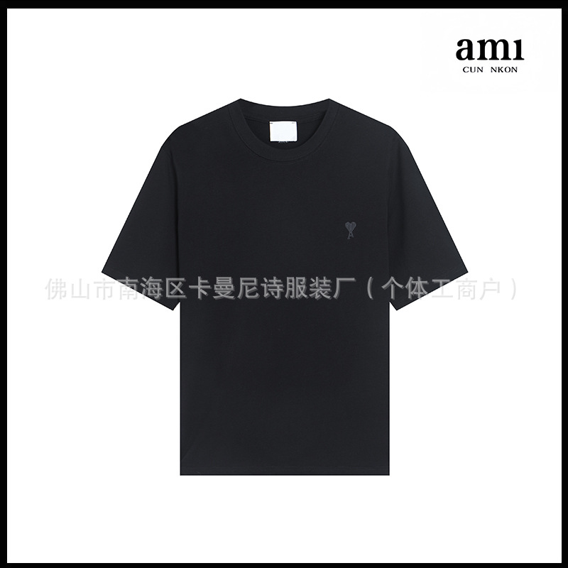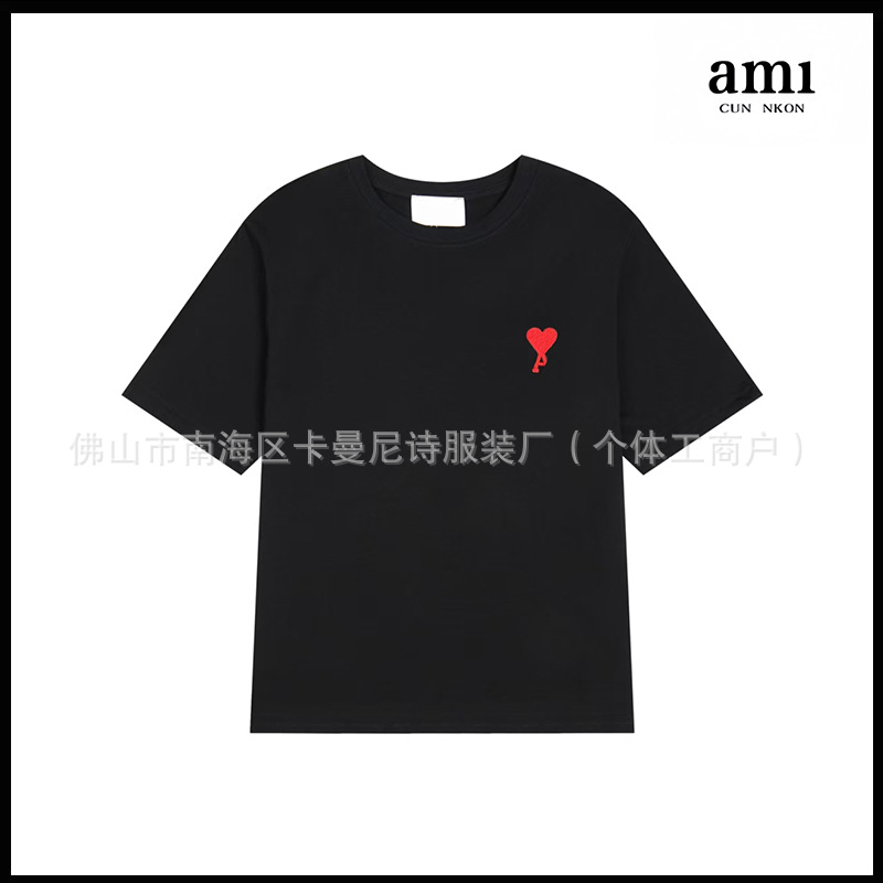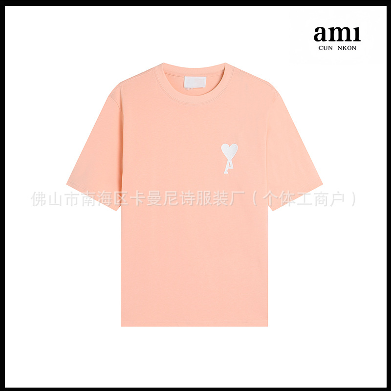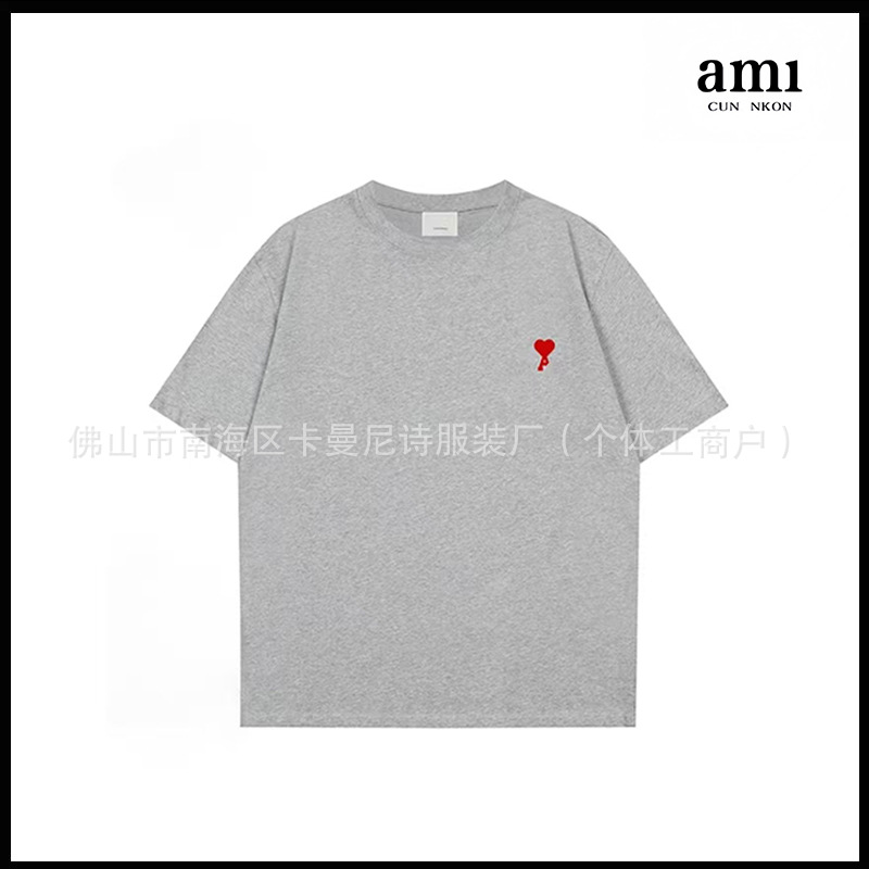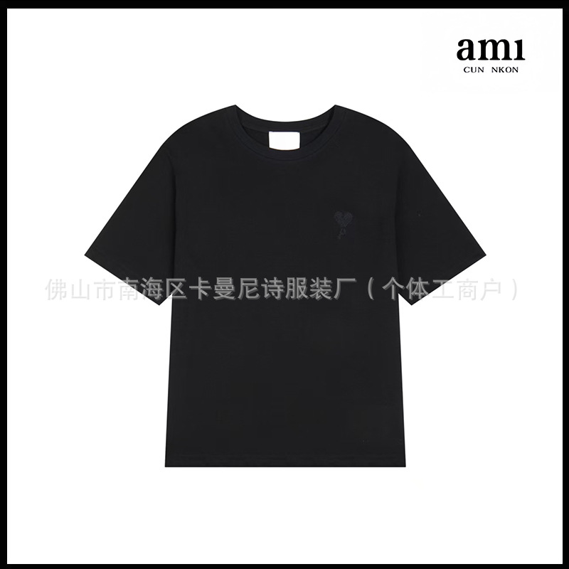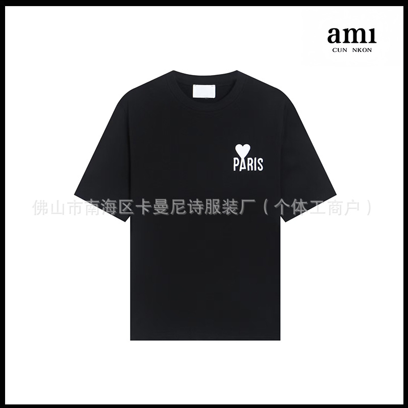 Ami kmns 남성과 여성의 순수 코튼 반팔 느슨한 캐주얼 라운드 넥 티셔츠 여름 트렌디 브랜드 크로스 보더 탑