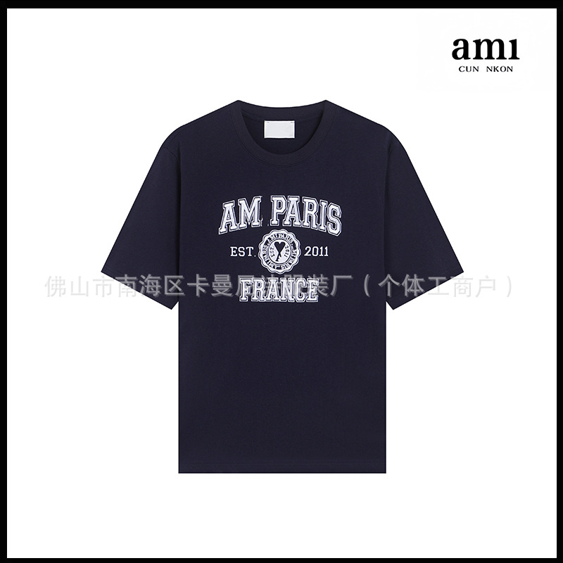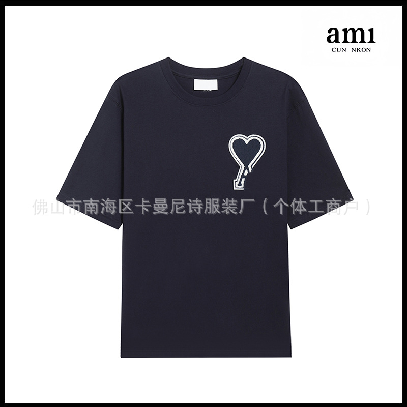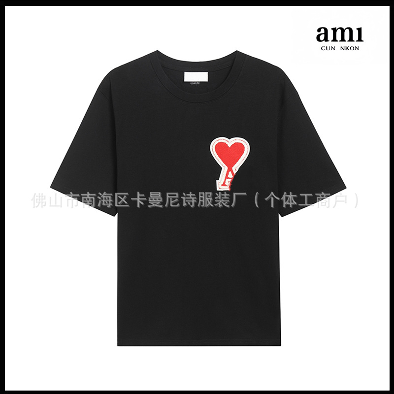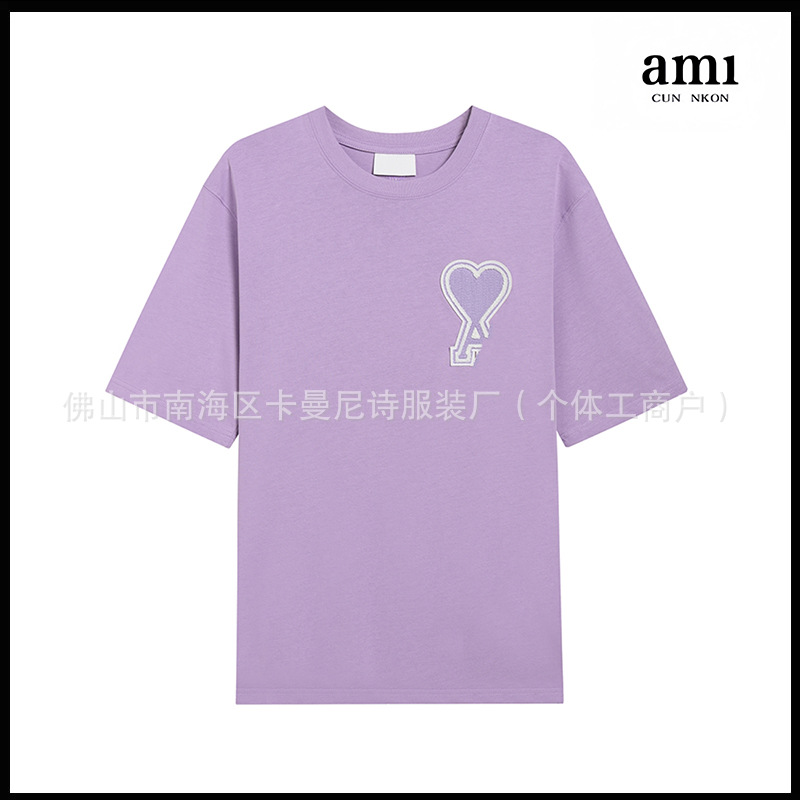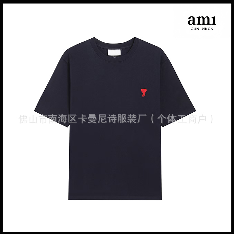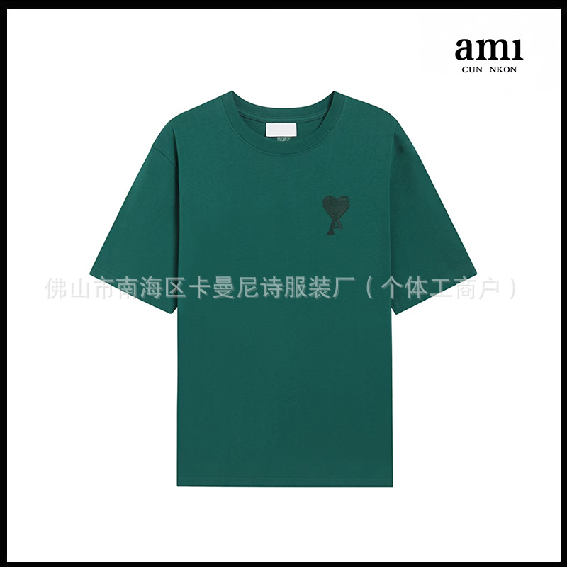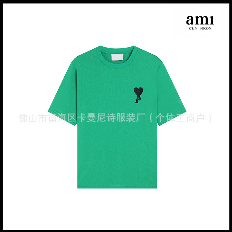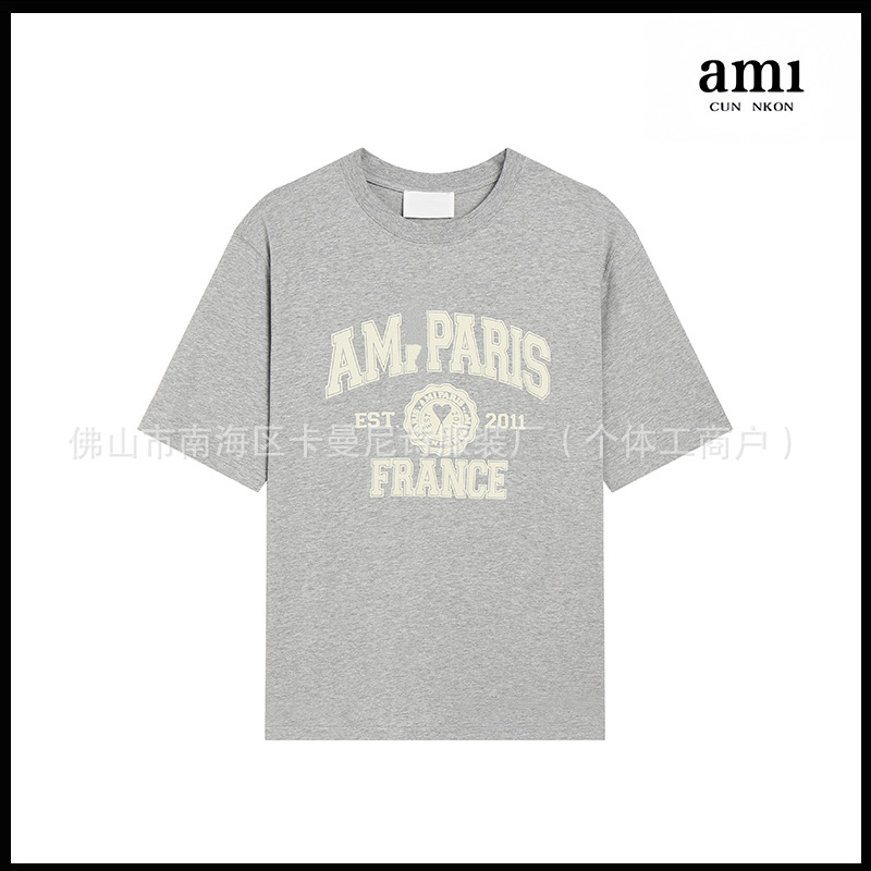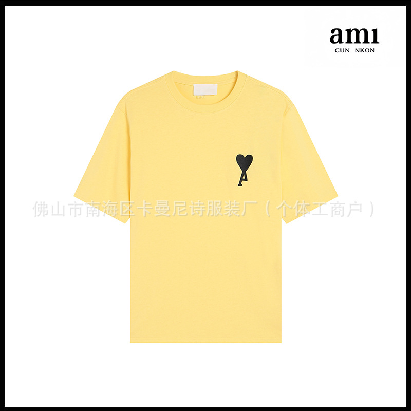 Ami kmns 남성과 여성의 순수 코튼 반팔 느슨한 캐주얼 라운드 넥 티셔츠 여름 트렌디 브랜드 크로스 보더 탑