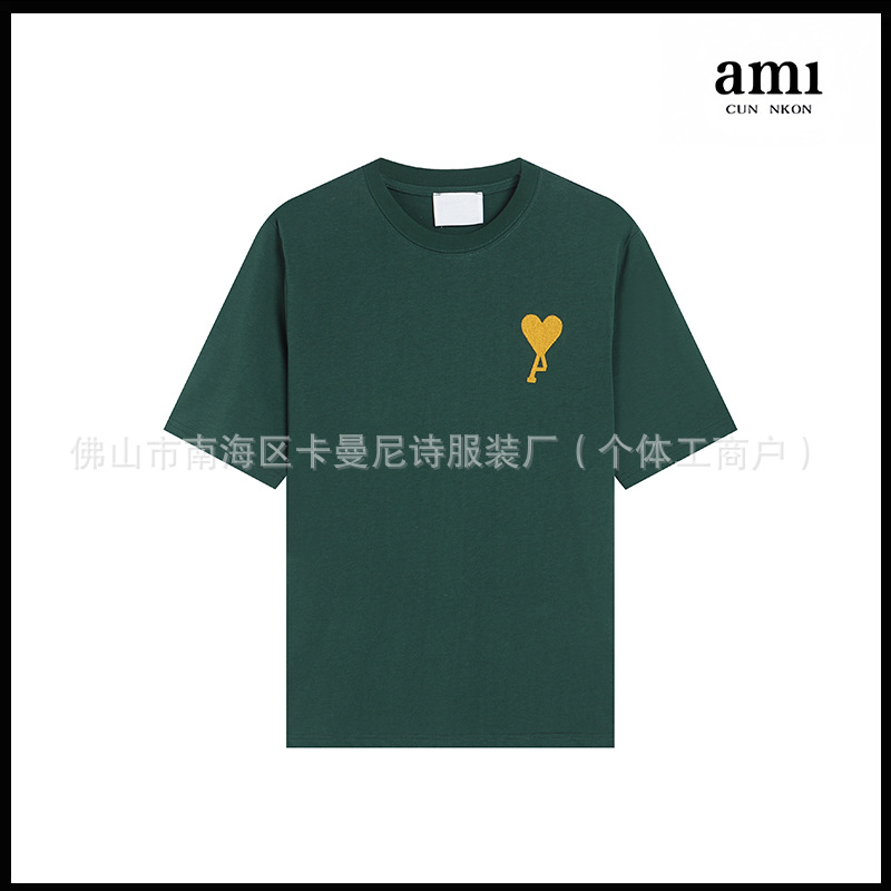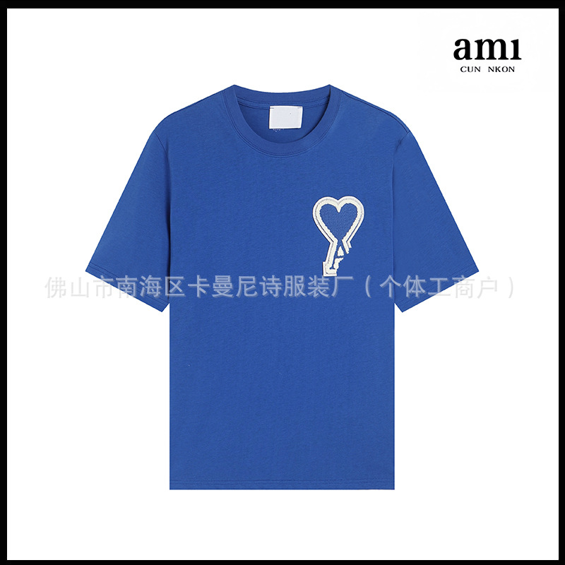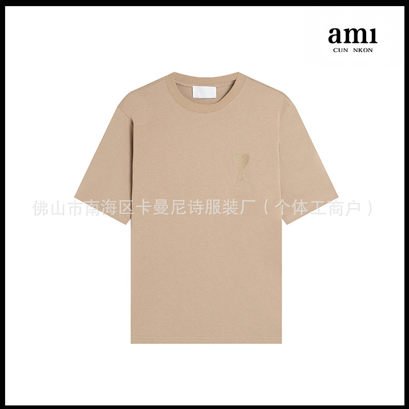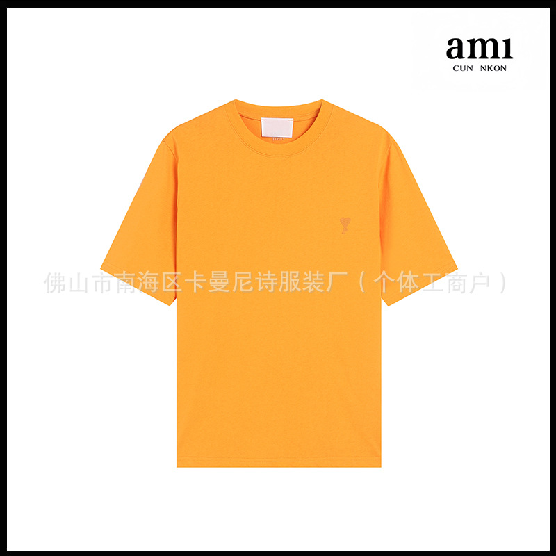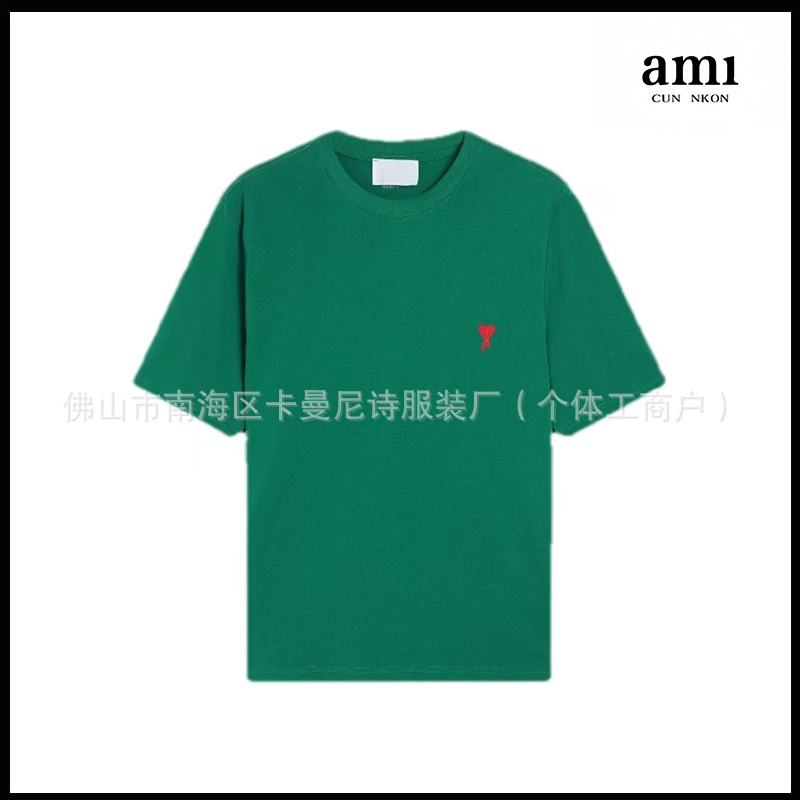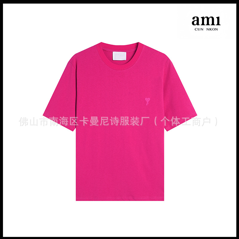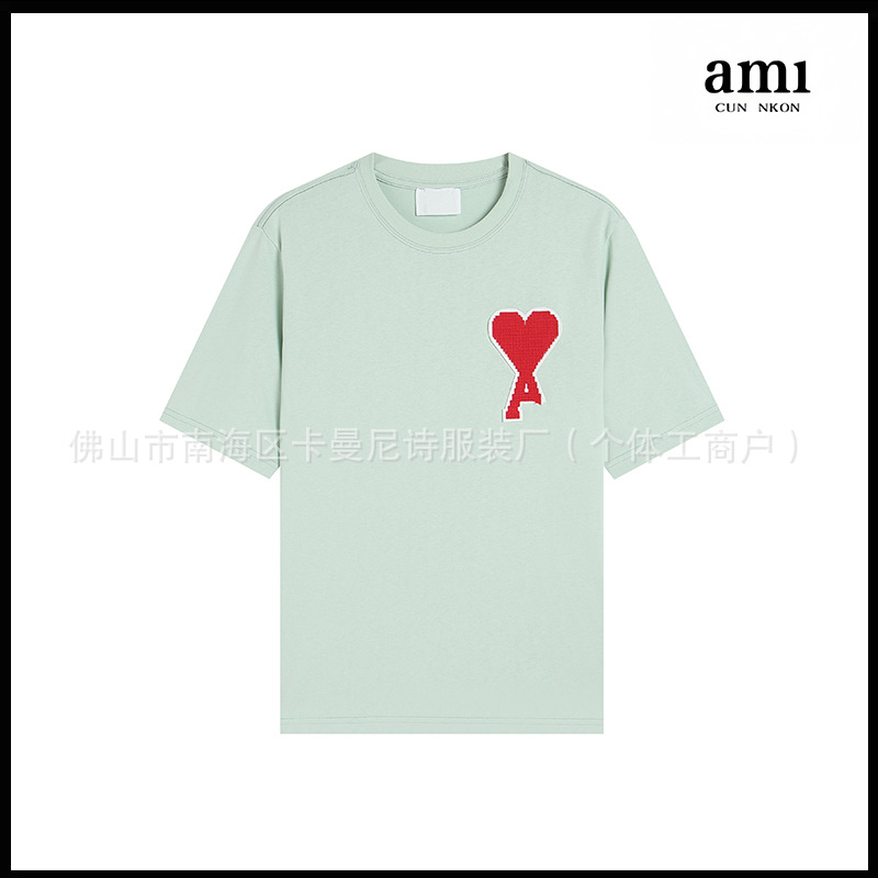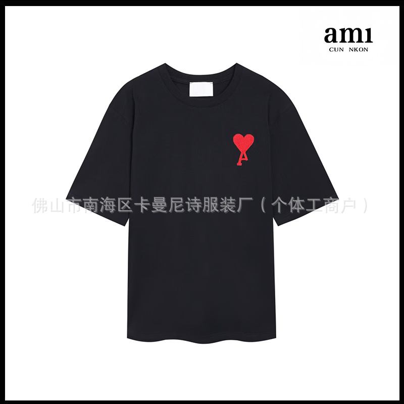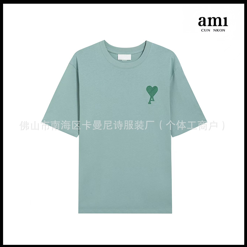 Ami kmns 남성과 여성의 순수 코튼 반팔 느슨한 캐주얼 라운드 넥 티셔츠 여름 트렌디 브랜드 크로스 보더 탑