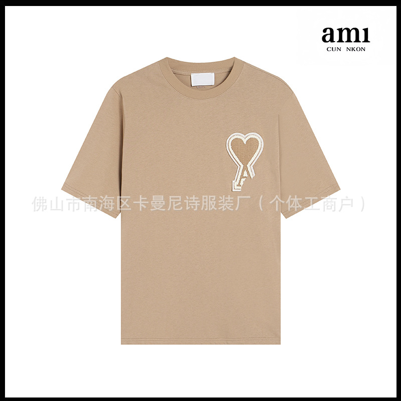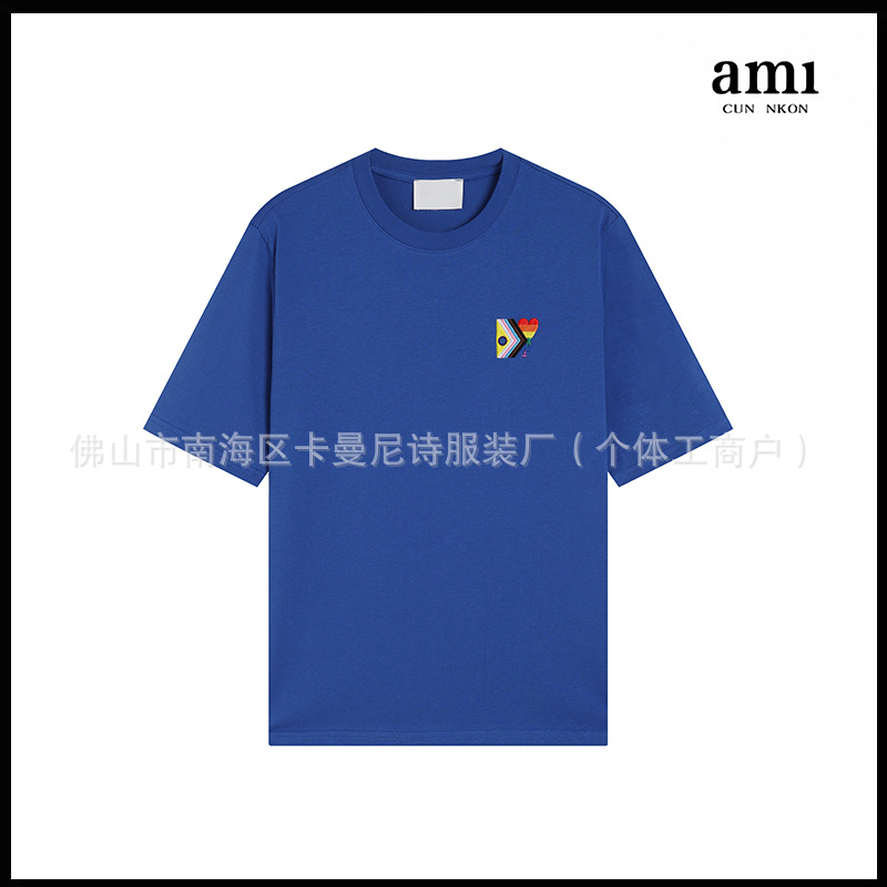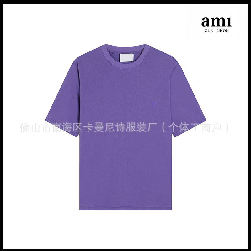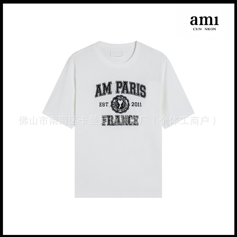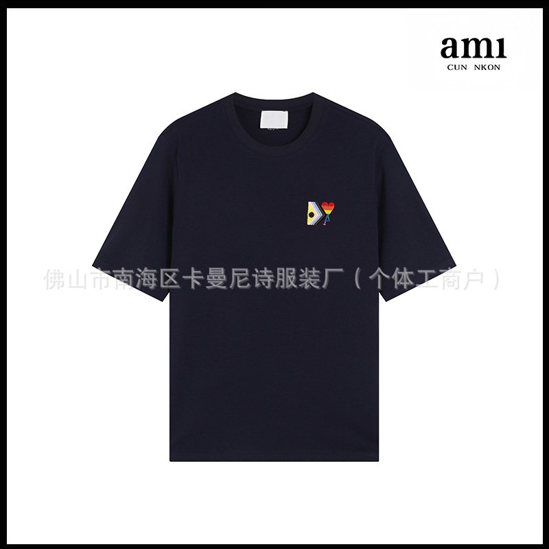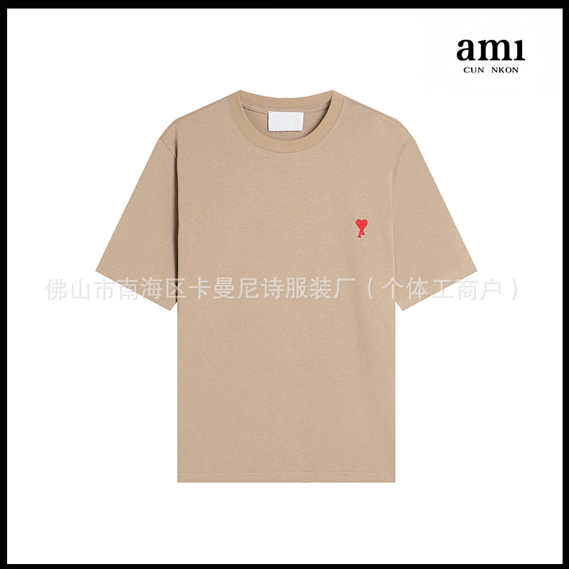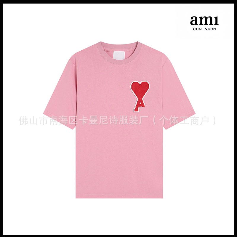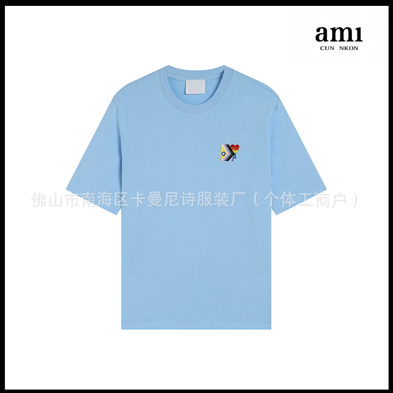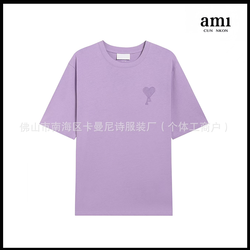 Ami kmns 남성과 여성의 순수 코튼 반팔 느슨한 캐주얼 라운드 넥 티셔츠 여름 트렌디 브랜드 크로스 보더 탑