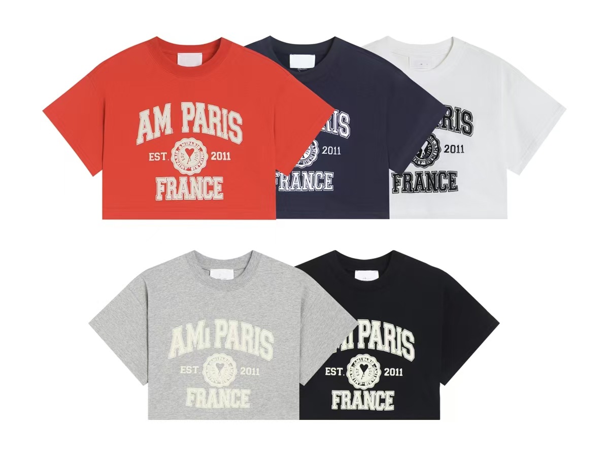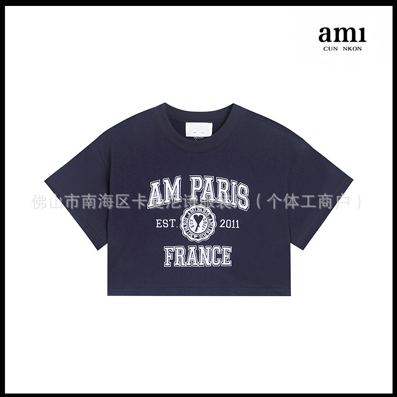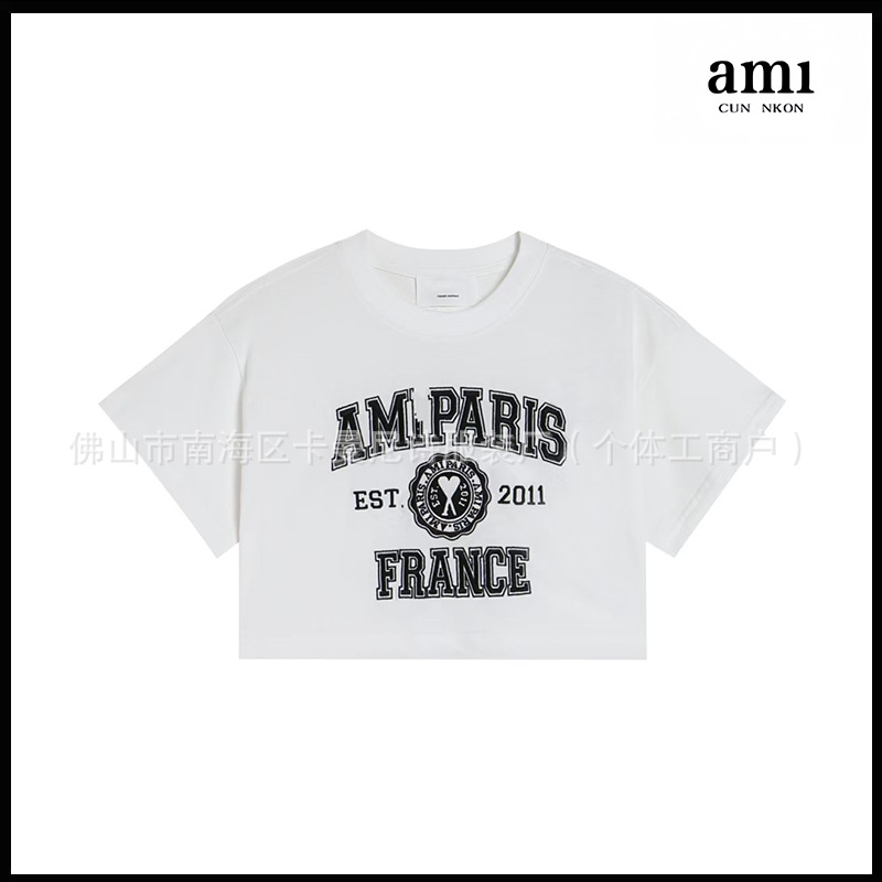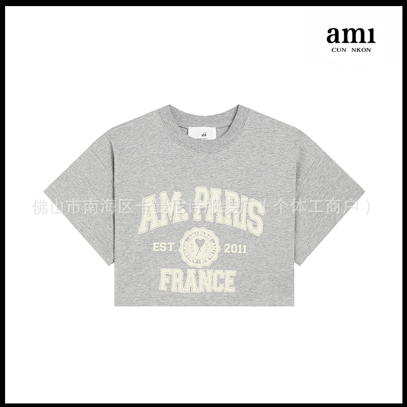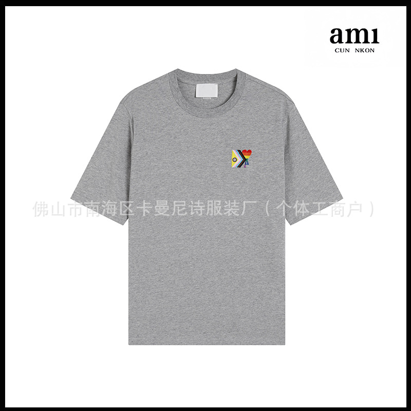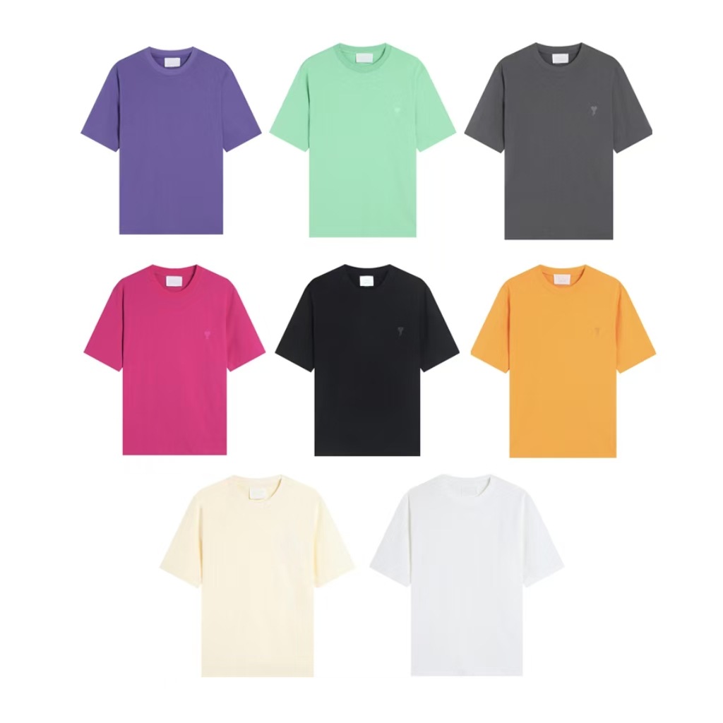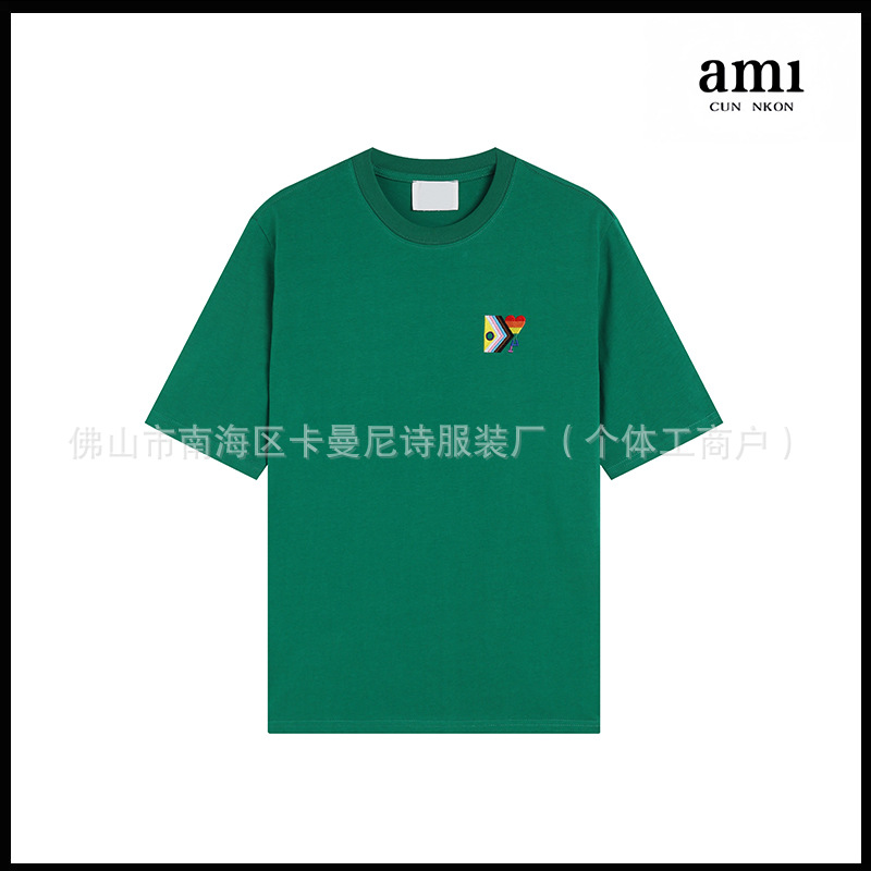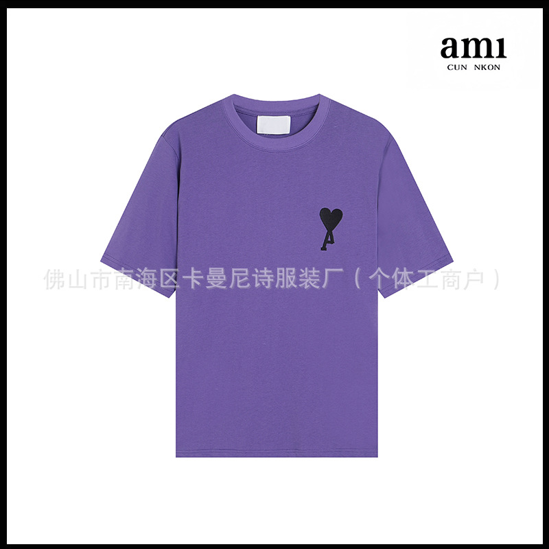 Ami kmns 남성과 여성의 순수 코튼 반팔 느슨한 캐주얼 라운드 넥 티셔츠 여름 트렌디 브랜드 크로스 보더 탑
