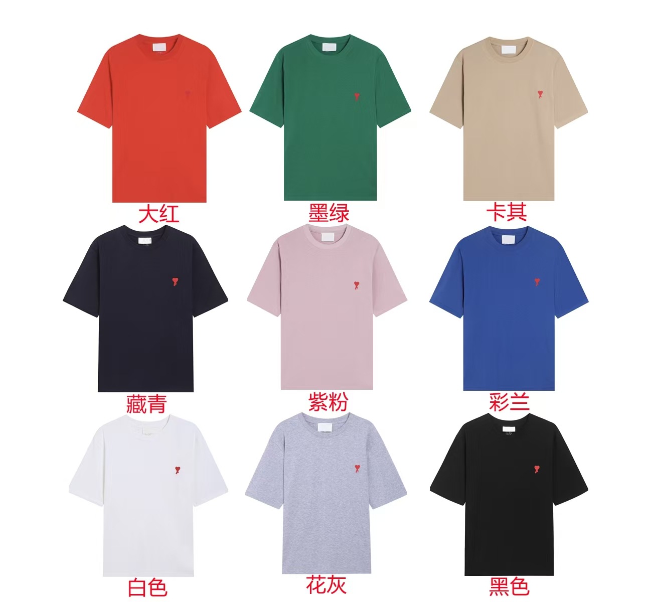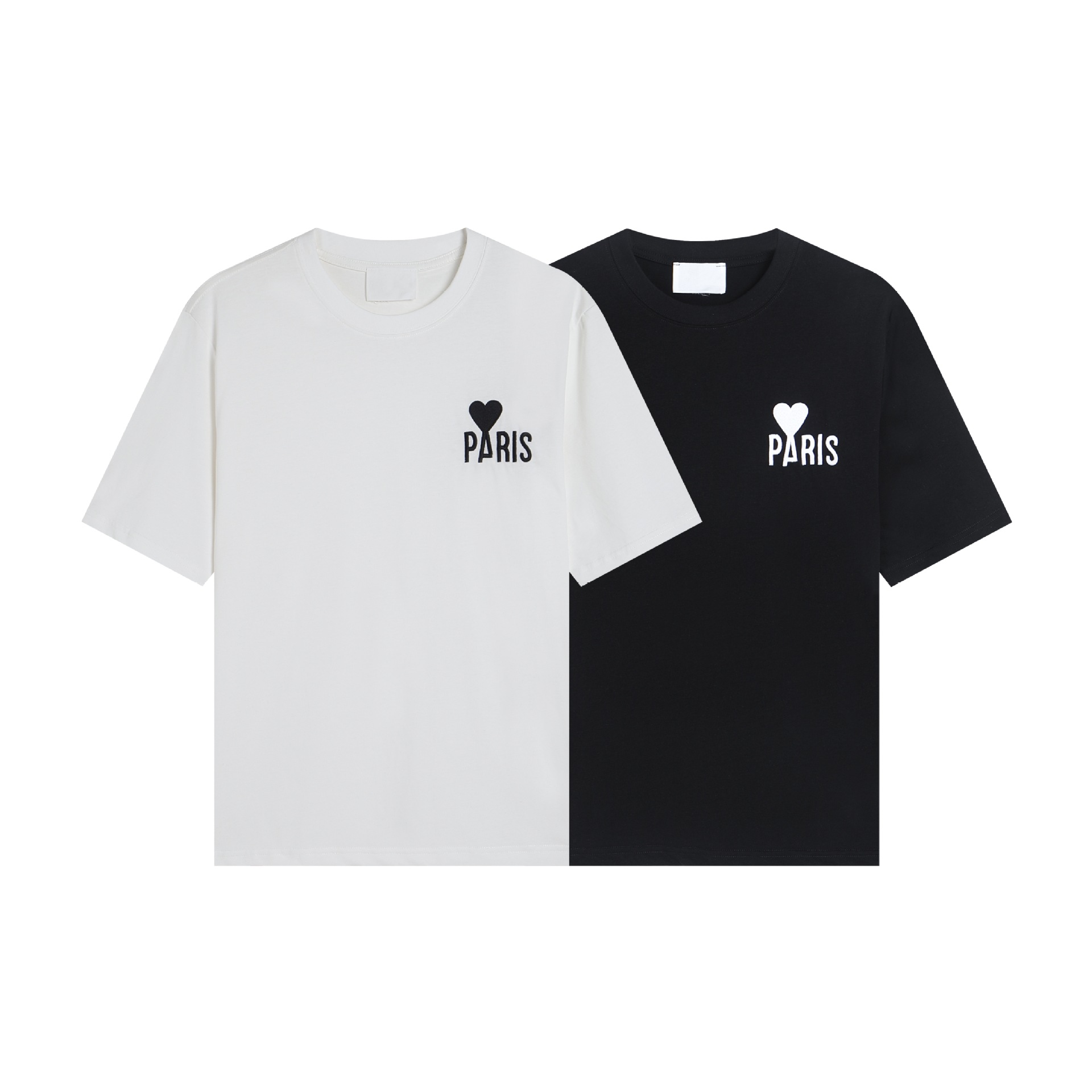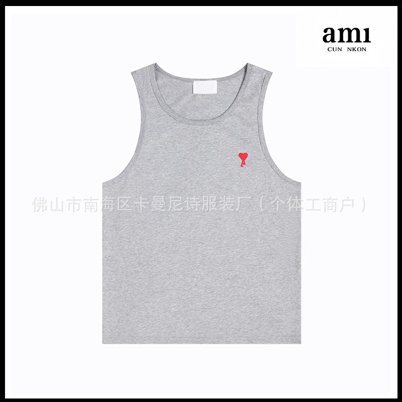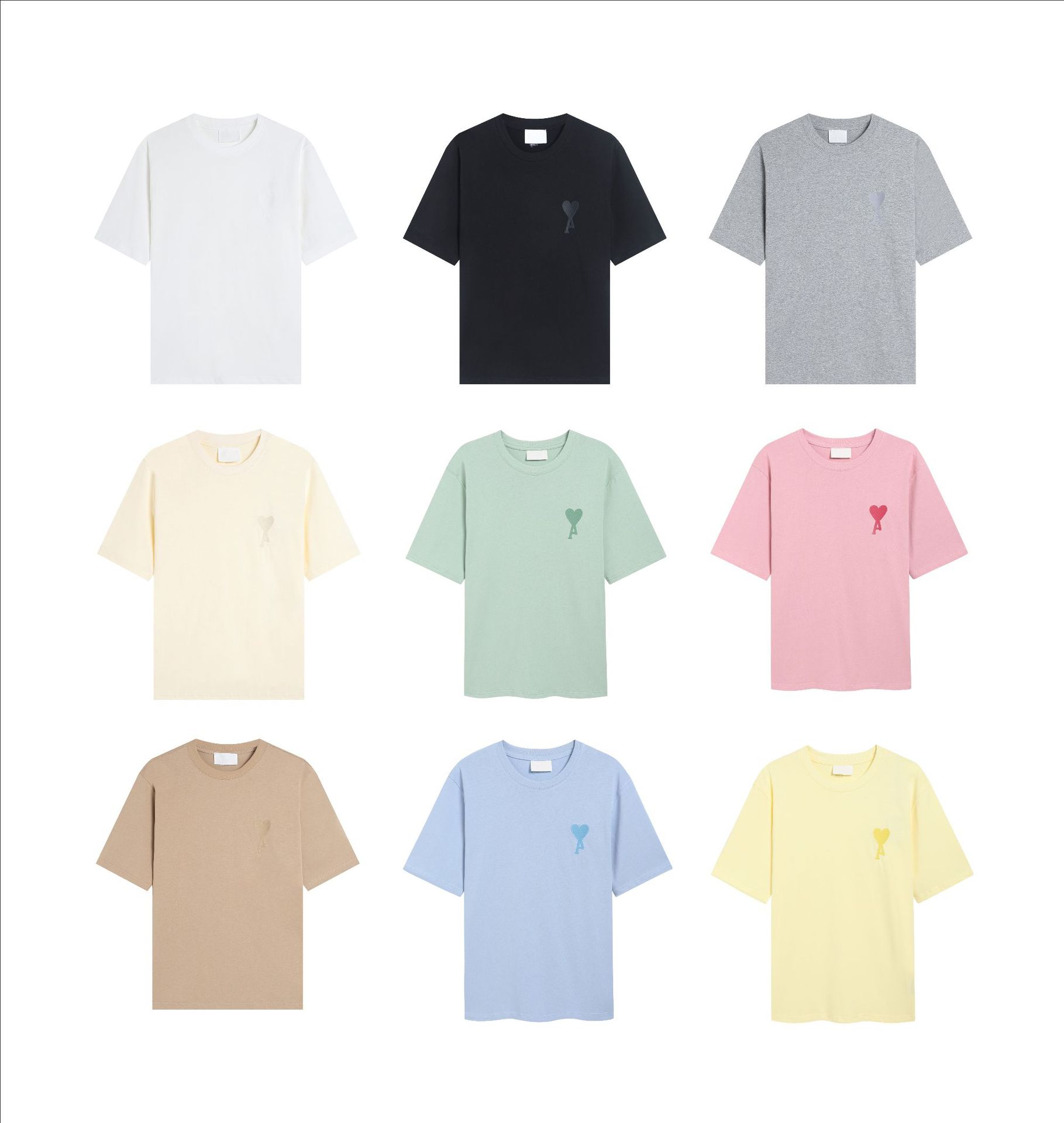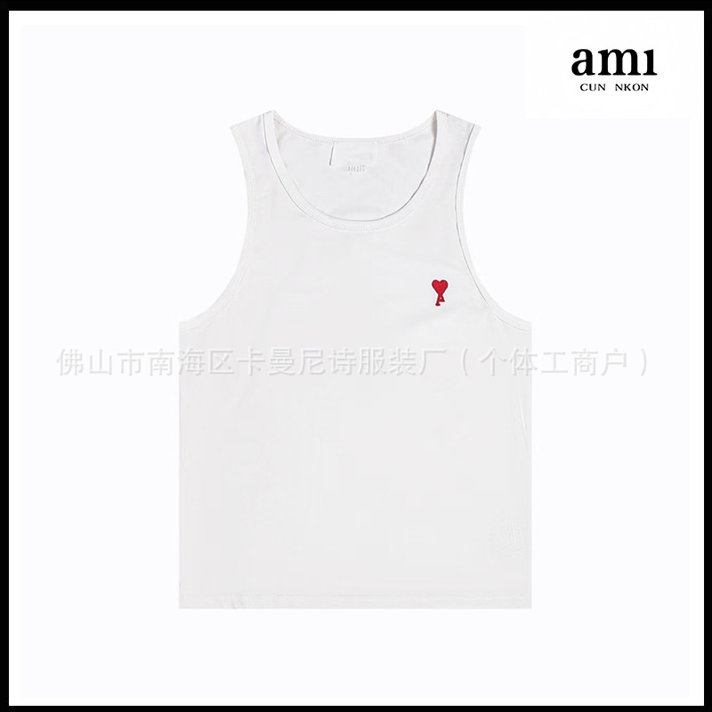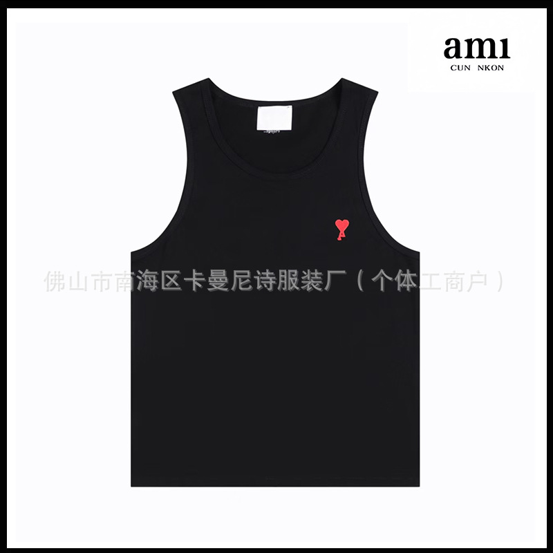 Ami kmns 남성과 여성의 순수 코튼 반팔 느슨한 캐주얼 라운드 넥 티셔츠 여름 트렌디 브랜드 크로스 보더 탑
