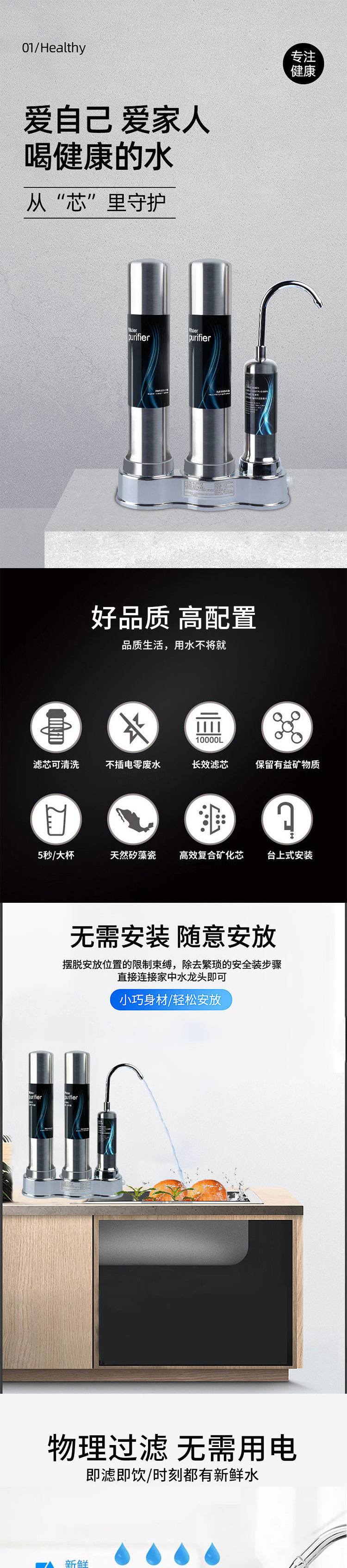 정수기 가정용 직접 마시는 데스크탑 필터 세라믹 필터 요소 스테인레스 스틸 수돗물 정수기스토어 가기