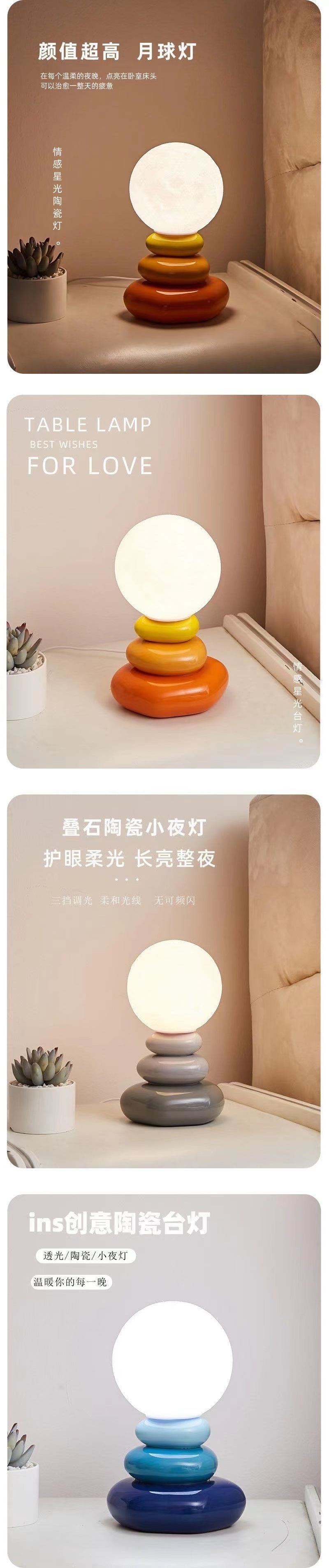 • 쌓인 돌 테이블 램프 - B 오렌지 모델