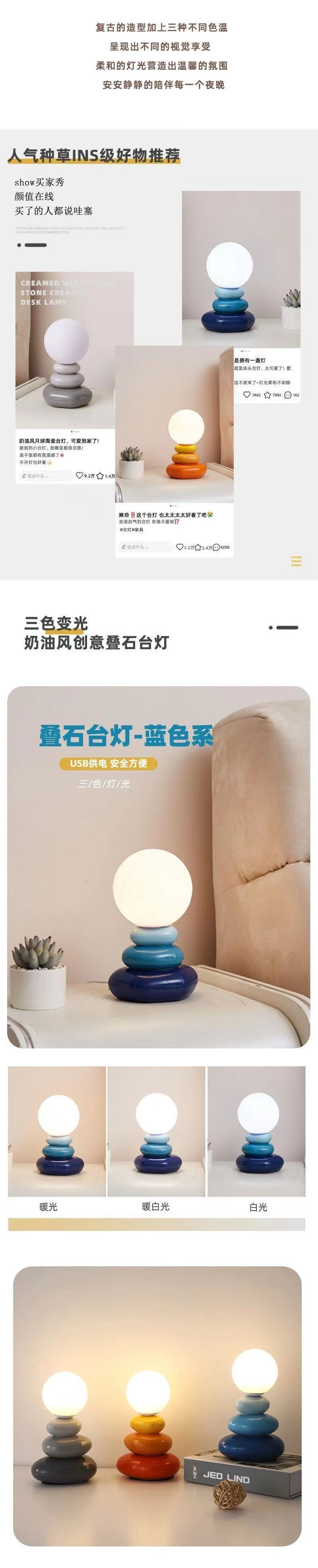 • 쌓인 돌 테이블 램프 - 파란색 모델