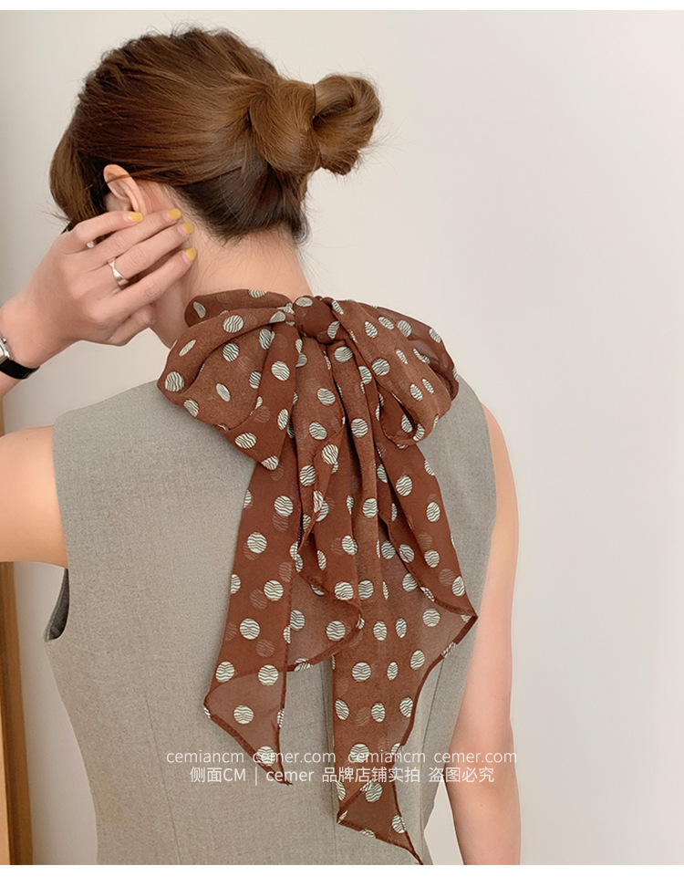 하이 버전 프랑스 다크 브라운 긴 설문 조사 점 스카프 여성의 봄과 여름 모든 경기 목 얇은 우아한 액세서리 실크 스카프 리본