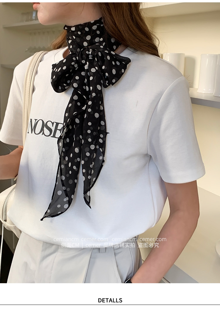 하이 버전 프랑스 다크 브라운 긴 설문 조사 점 스카프 여성의 봄과 여름 모든 경기 목 얇은 우아한 액세서리 실크 스카프 리본스토어 가기