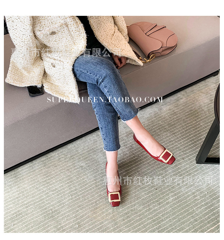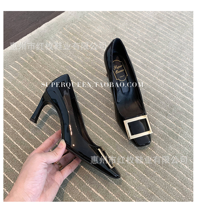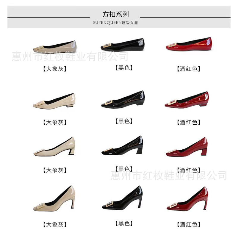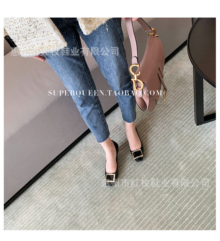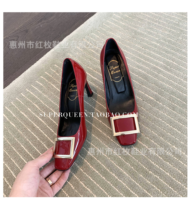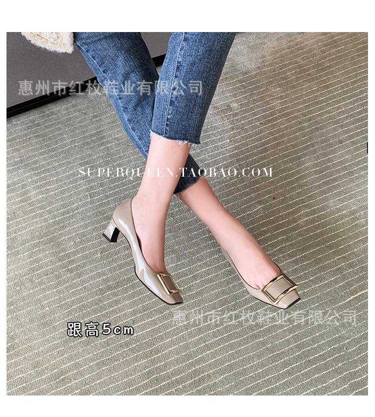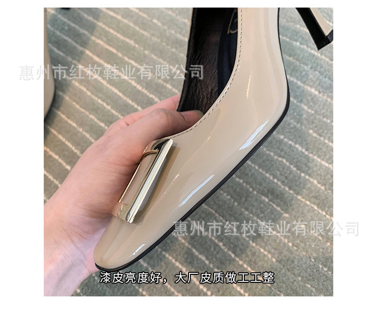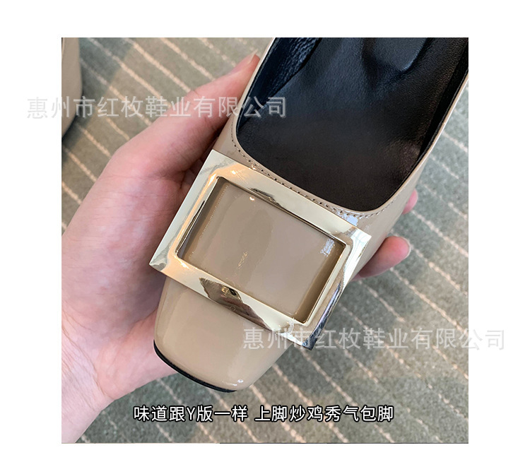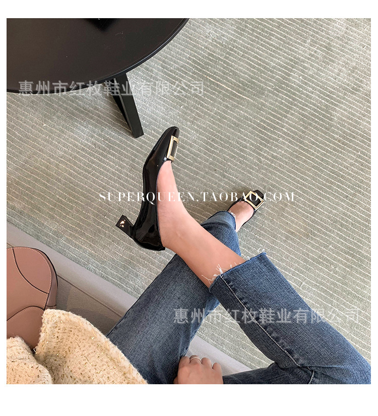 고급형~사각 버클 RV 여성용 신발 신상품 페이턴트 가죽 신발 두꺼운 굽 중간 굽 사각코 금속 장식 같은 스타일 얕은 입구 천연 가죽스토어 가기