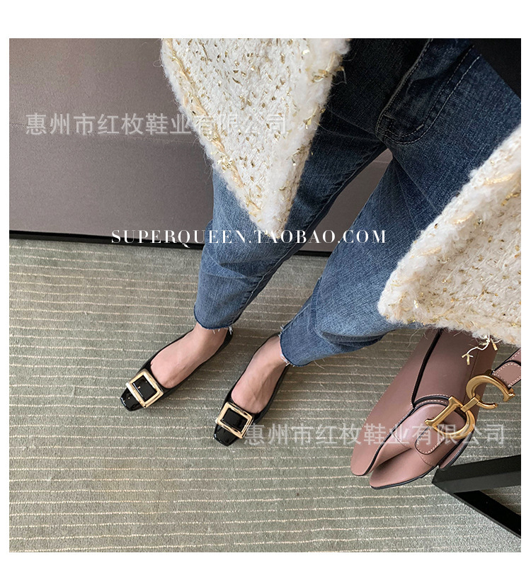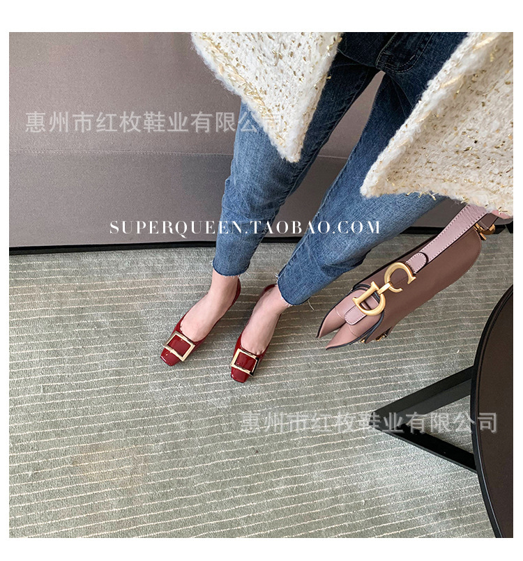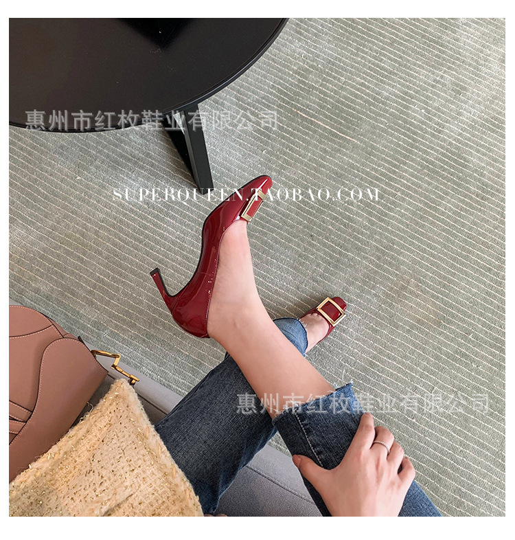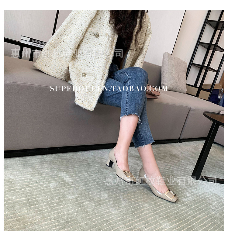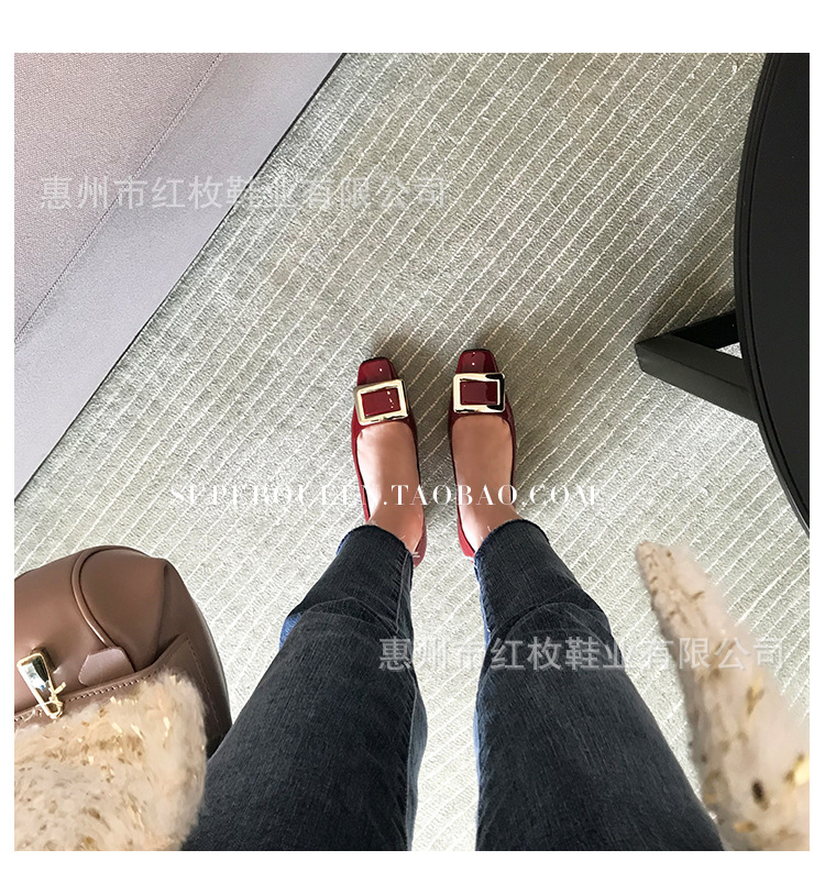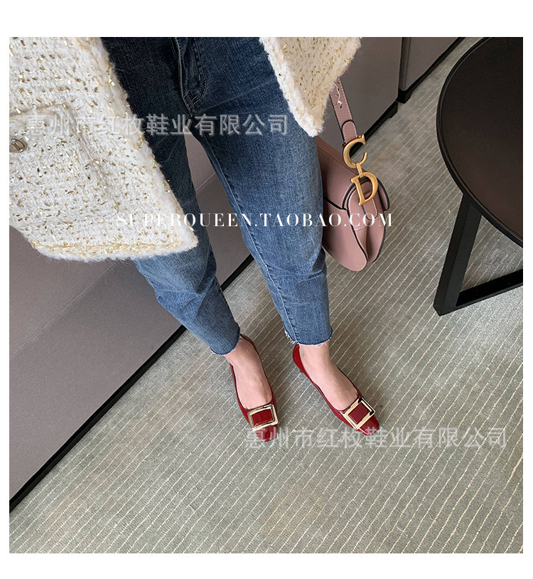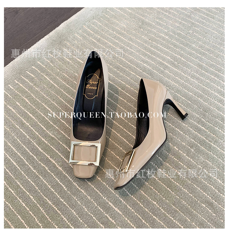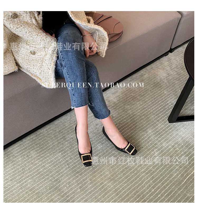 고급형~사각 버클 RV 여성용 신발 신상품 페이턴트 가죽 신발 두꺼운 굽 중간 굽 사각코 금속 장식 같은 스타일 얕은 입구 천연 가죽스토어 가기