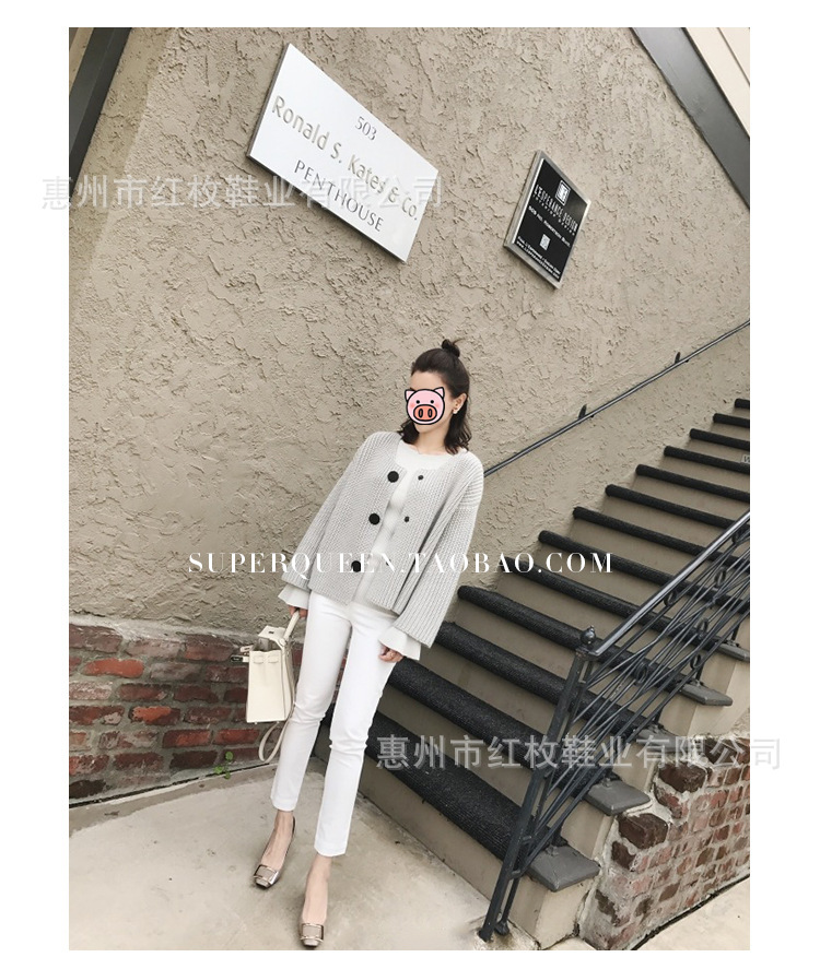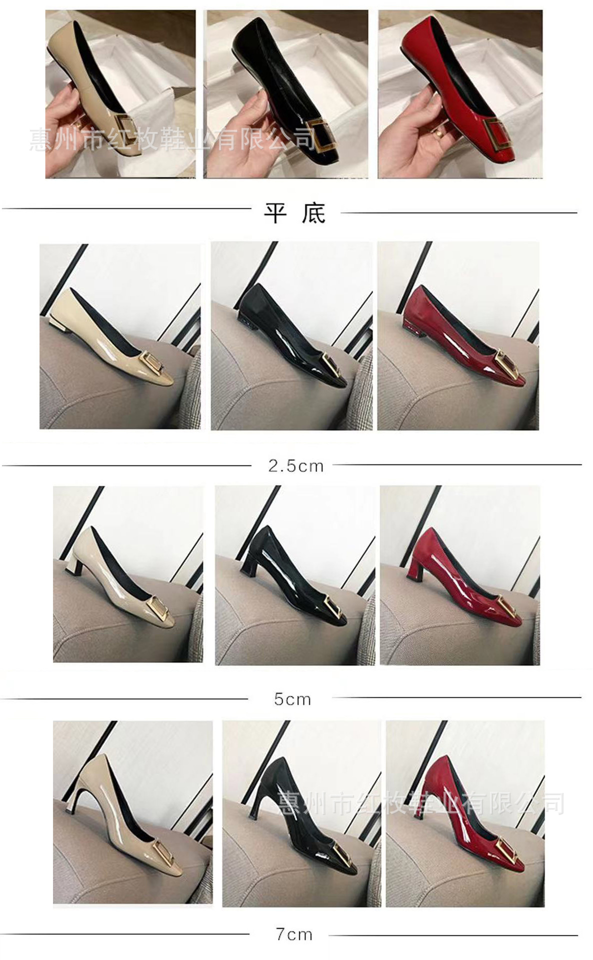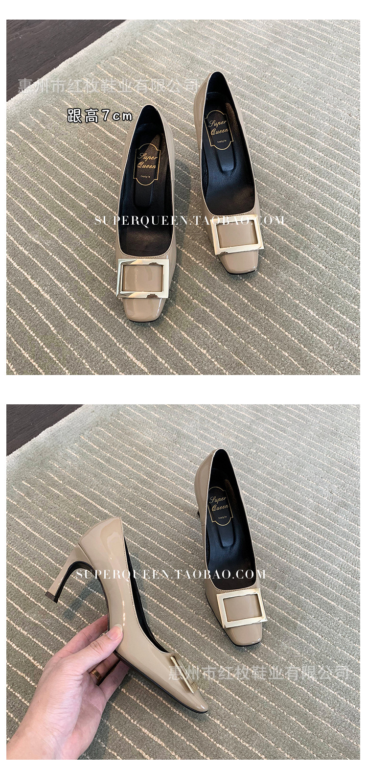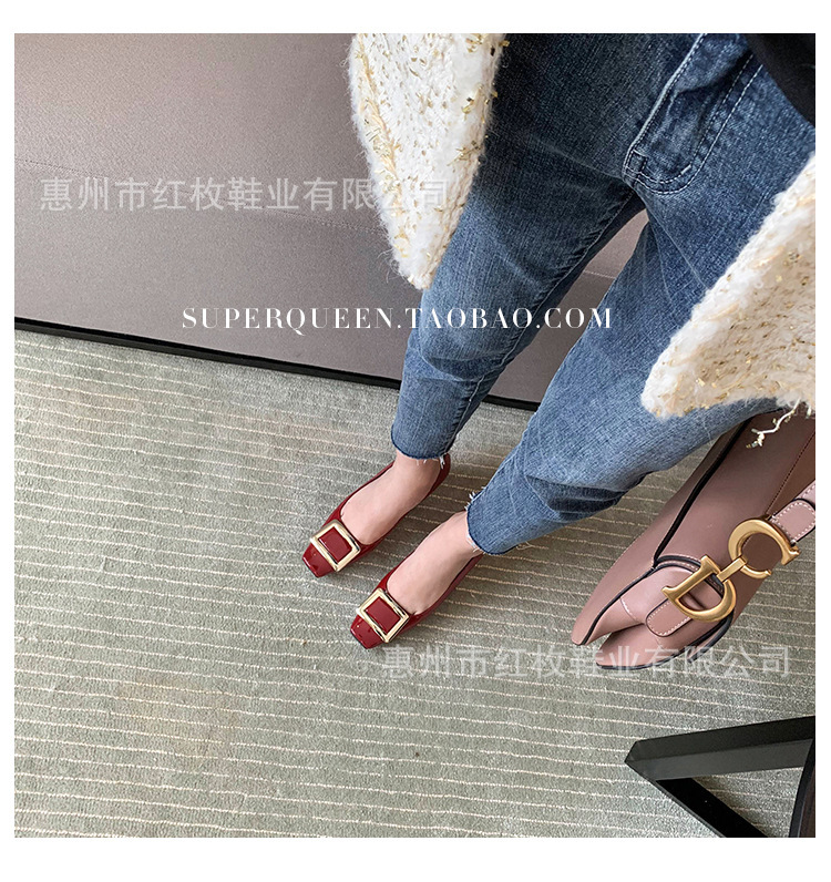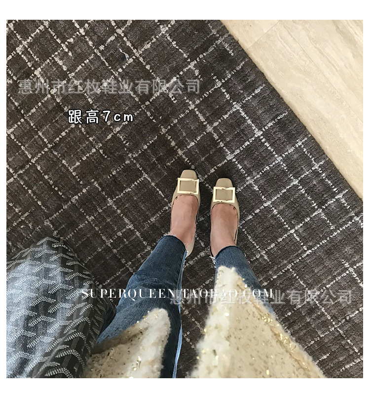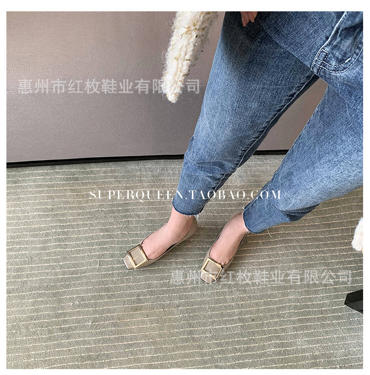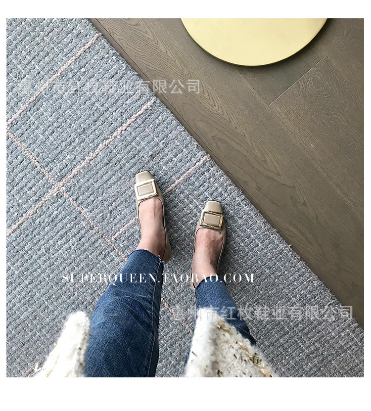 고급형~사각 버클 RV 여성용 신발 신상품 페이턴트 가죽 신발 두꺼운 굽 중간 굽 사각코 금속 장식 같은 스타일 얕은 입구 천연 가죽스토어 가기