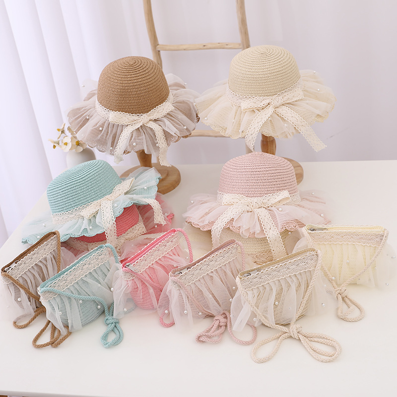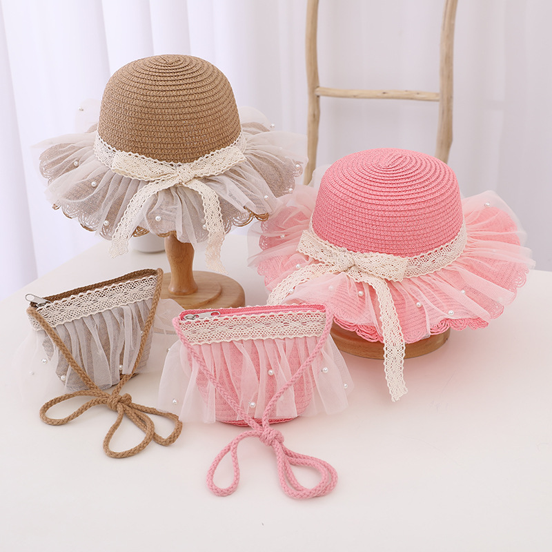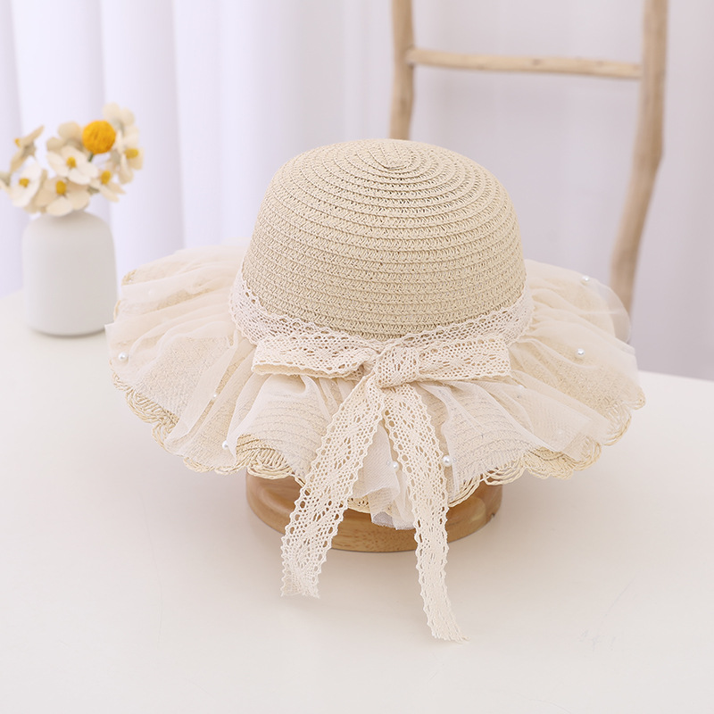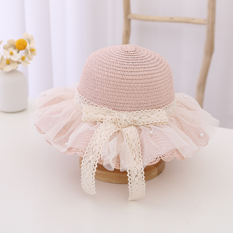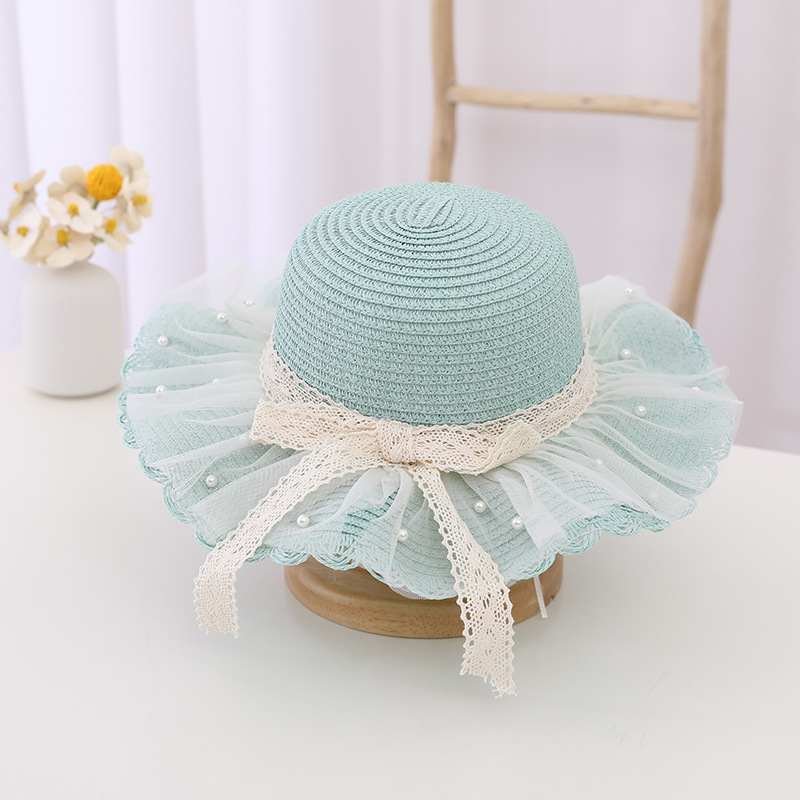 어린이 밀짚모자 여름 아동 레이스 리본 자외선 차단 모자 공주 접이식 챙넓은 비치 모자 여자아이용스토어 가기