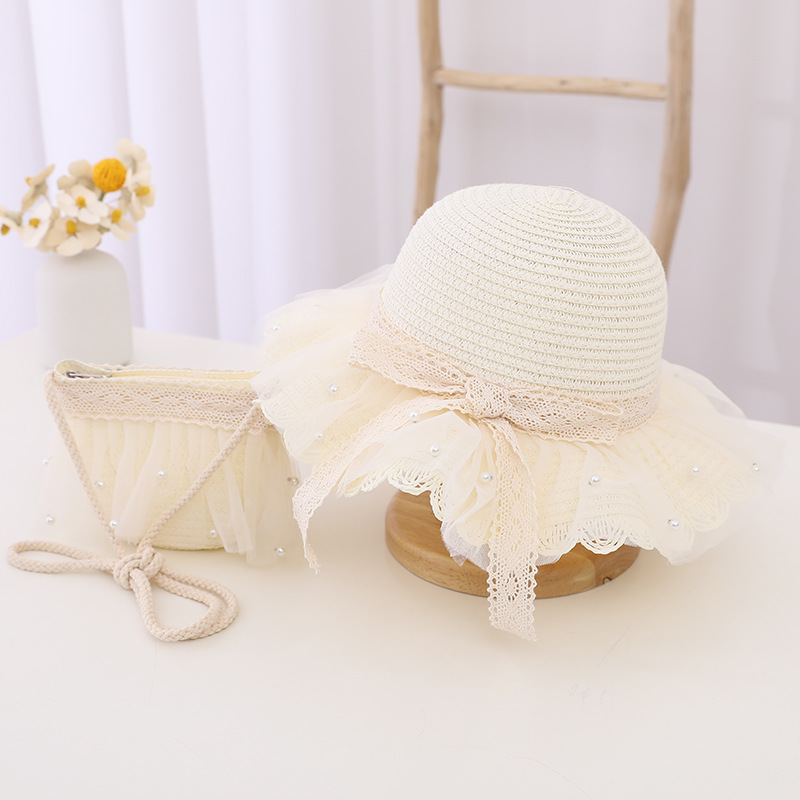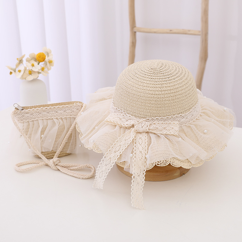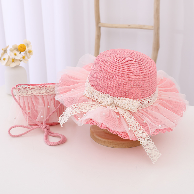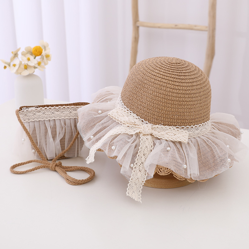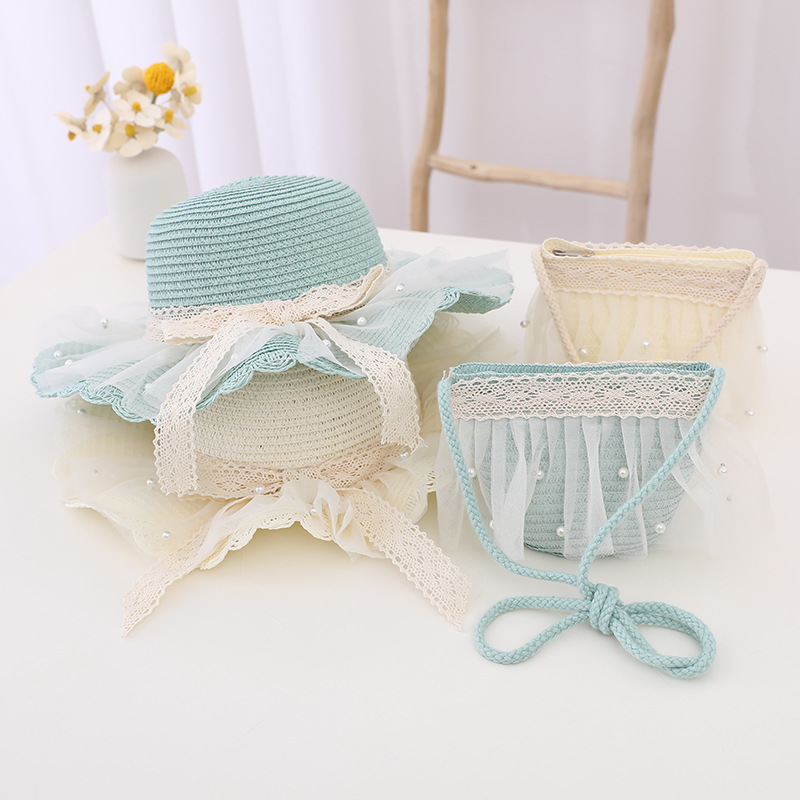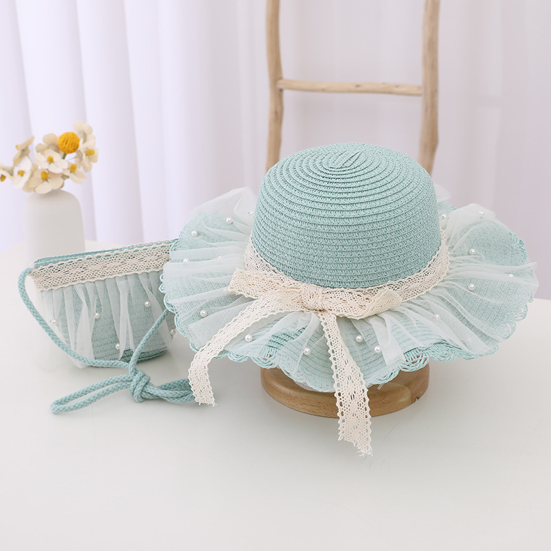 어린이 밀짚모자 여름 아동 레이스 리본 자외선 차단 모자 공주 접이식 챙넓은 비치 모자 여자아이용스토어 가기