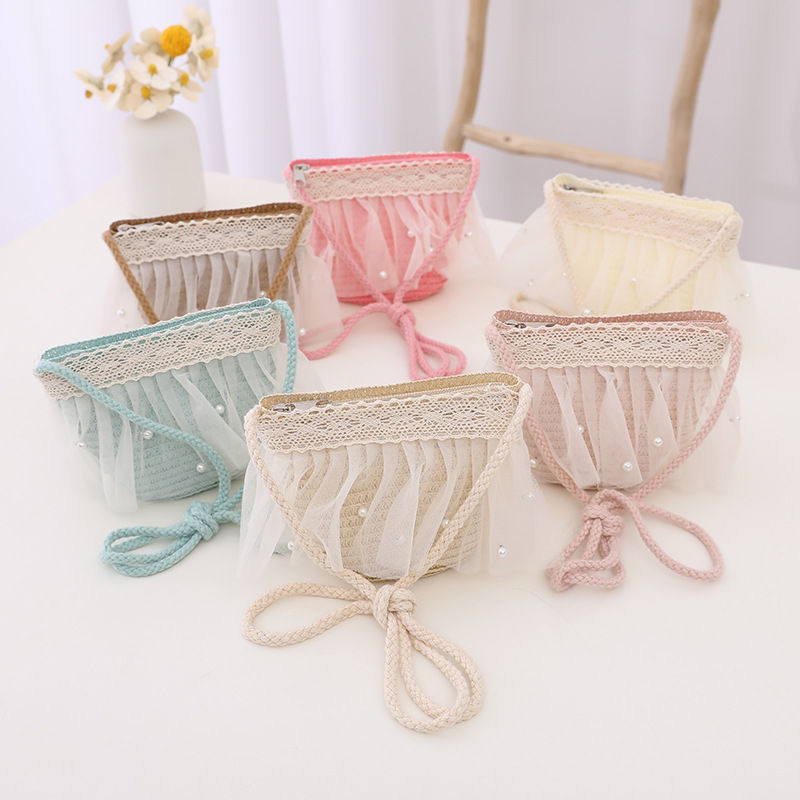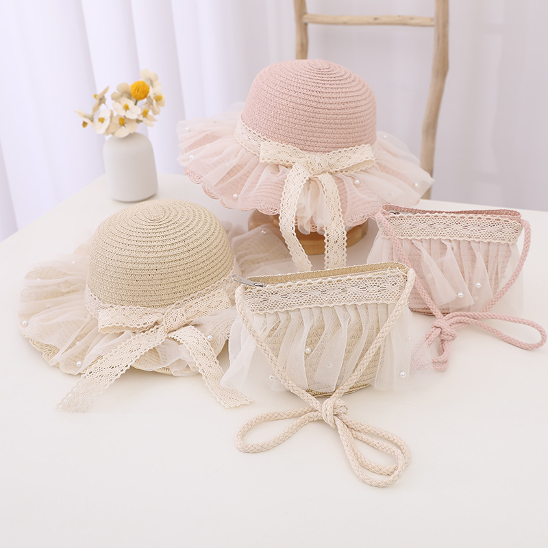 어린이 밀짚모자 여름 아동 레이스 리본 자외선 차단 모자 공주 접이식 챙넓은 비치 모자 여자아이용
