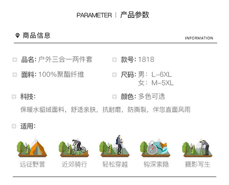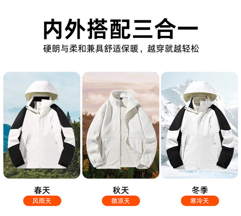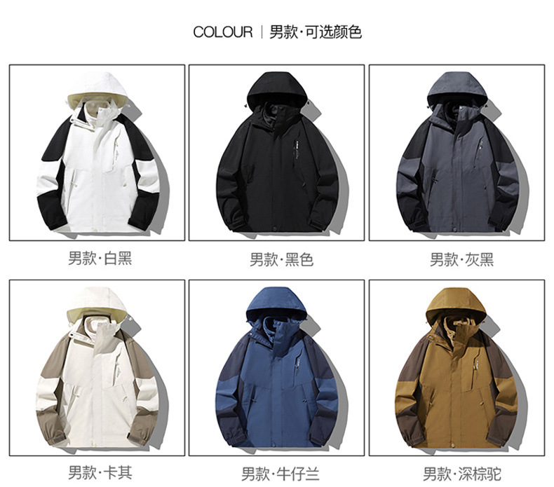 새로운 스타일의 재킷 봄과 가을 3-in-One 탈착식 후드 재킷 야외 하이킹 방풍 및 방수 작업복스토어 가기