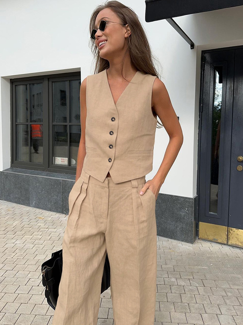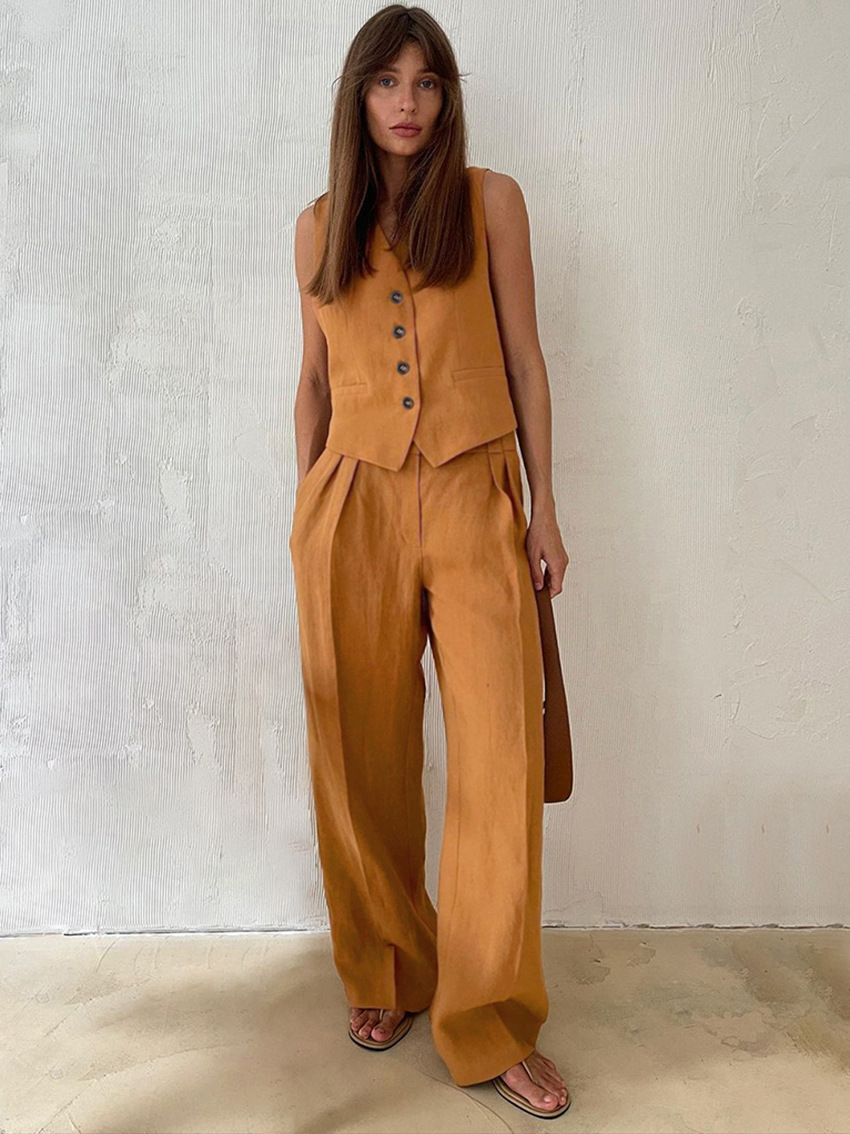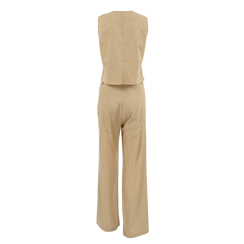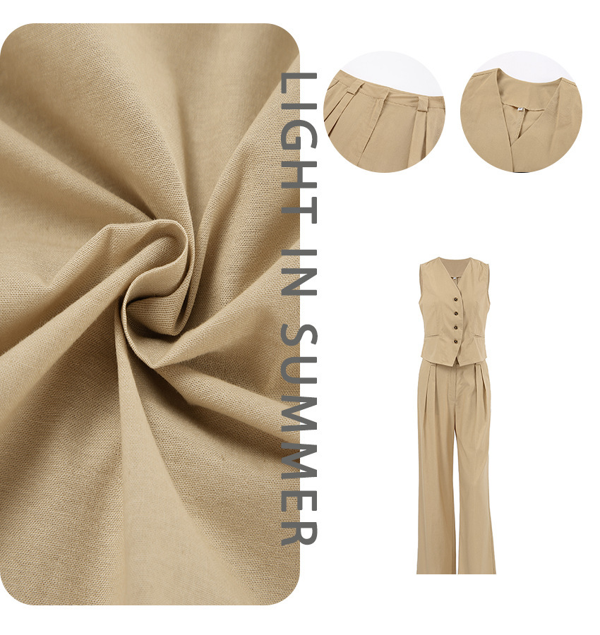 패셔너블하고 다재다능한 슬림핏 조끼와 바지 투피스 세트 2024 크로스보더 신작 슈트 스타일 니치 플리츠 하이웨이스트 슈트