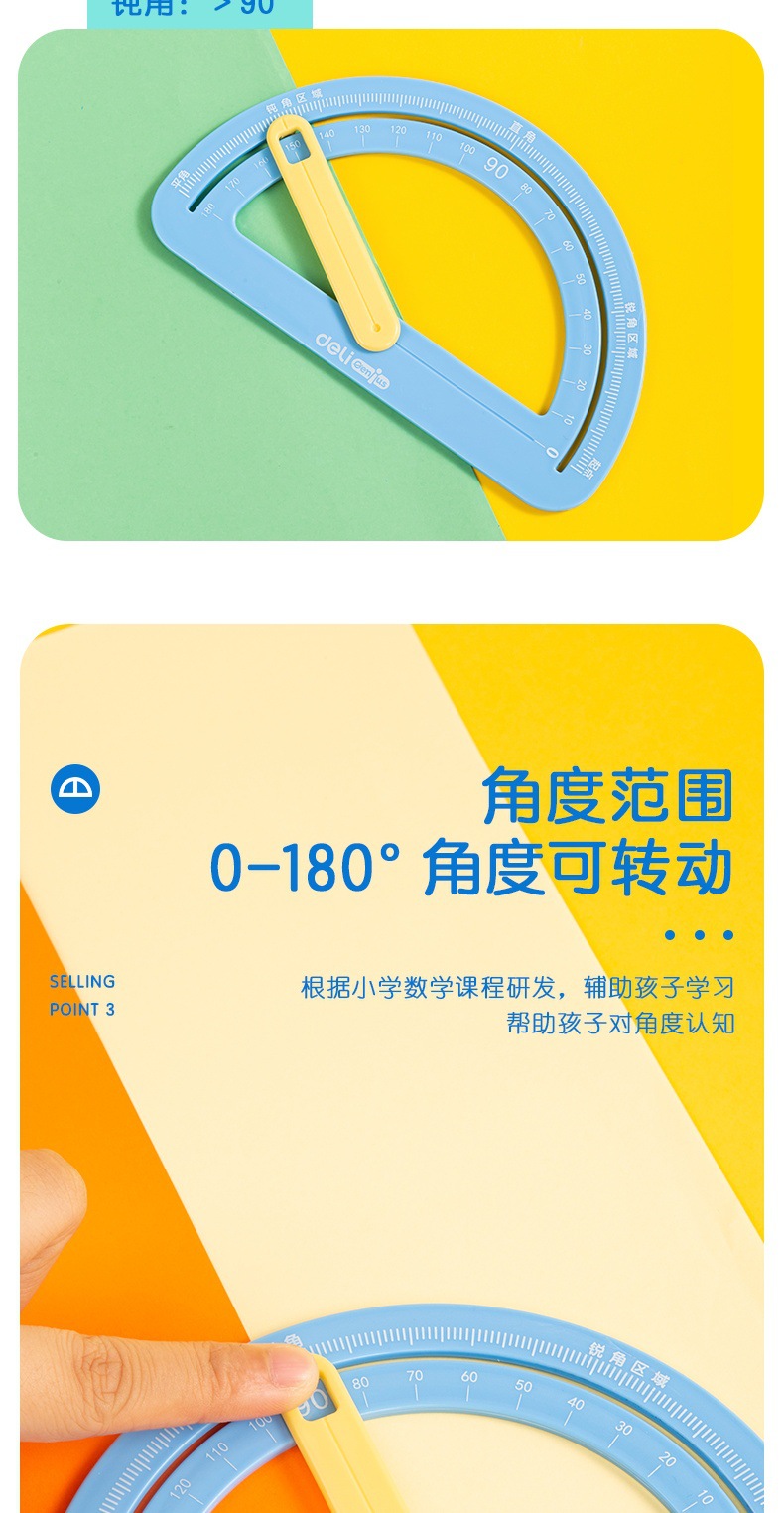 델리 YX531 학습도구 360 ° 초등학생을 위한 활동 각도기 다기능 자 세트 1, 2, 4학년스토어 가기