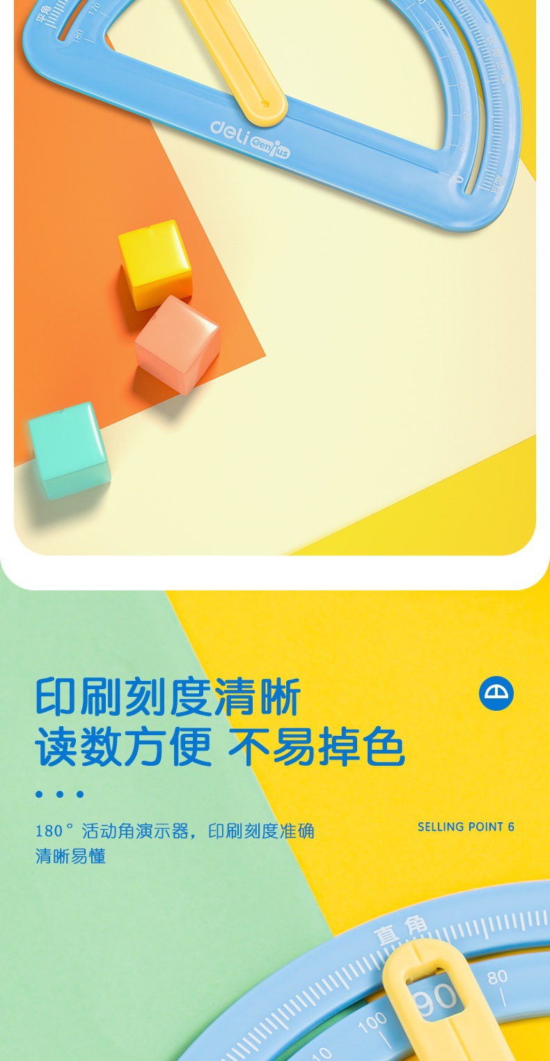 델리 YX531 학습도구 360 ° 초등학생을 위한 활동 각도기 다기능 자 세트 1, 2, 4학년