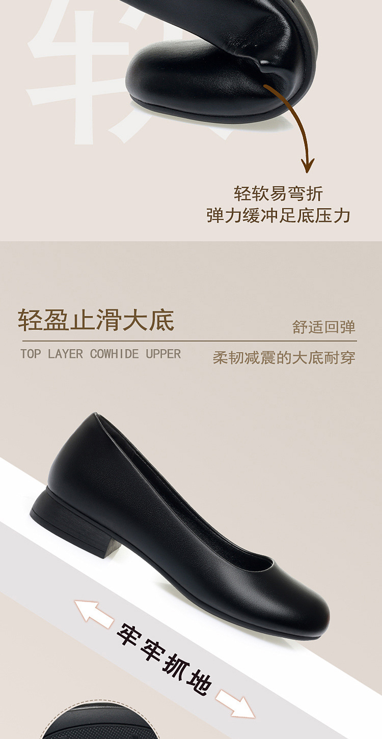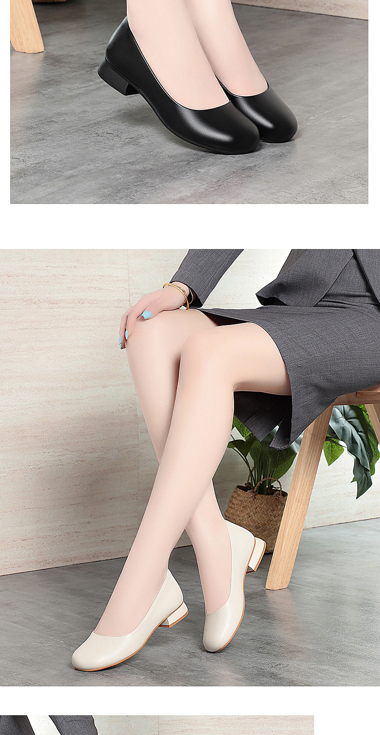 스튜어디스 로우 힐 작업 신발 여성 블랙 원피스 신발 라운드 헤드 작업 신발 부드러운 바닥 부드러운 가죽 신발 여성 신발스토어 가기