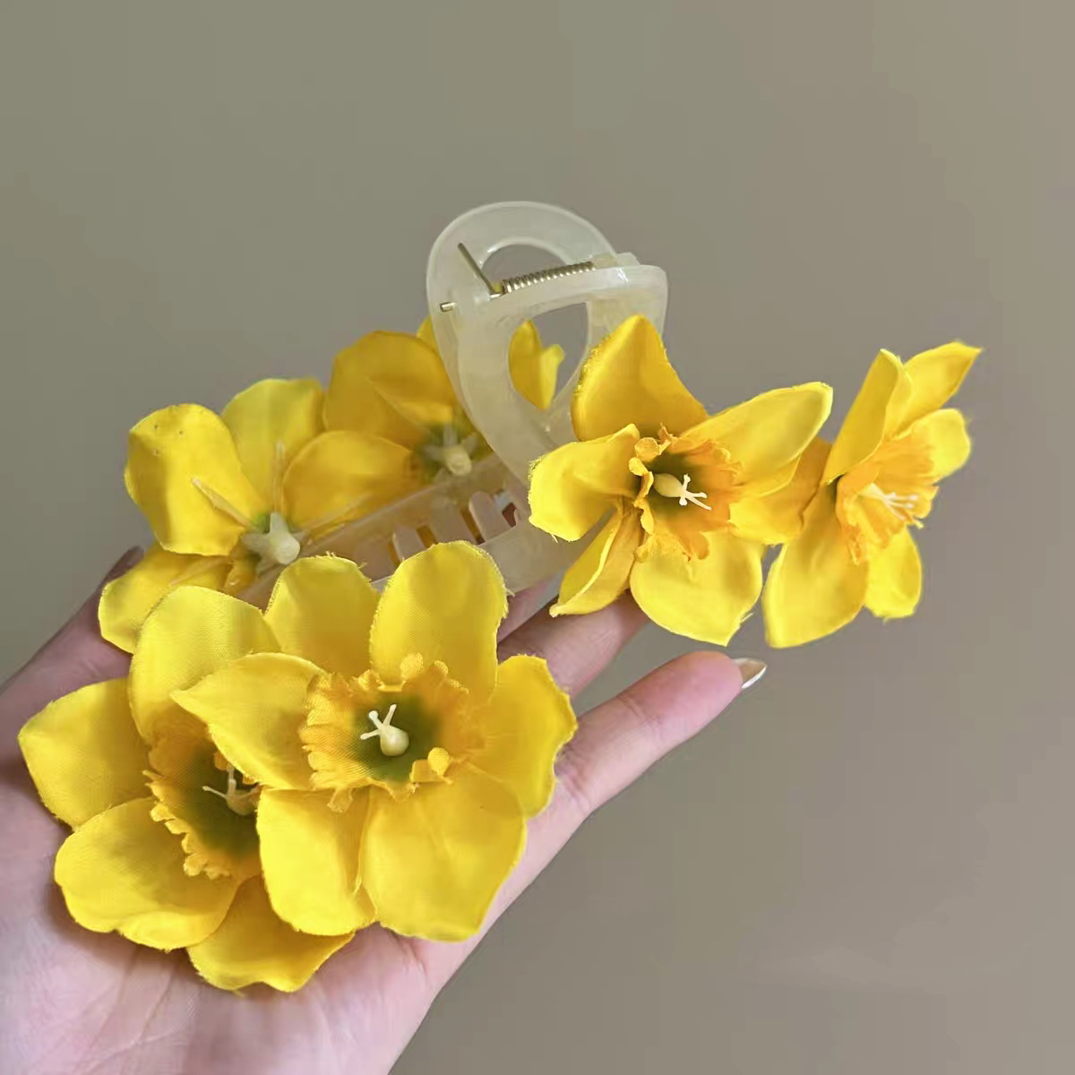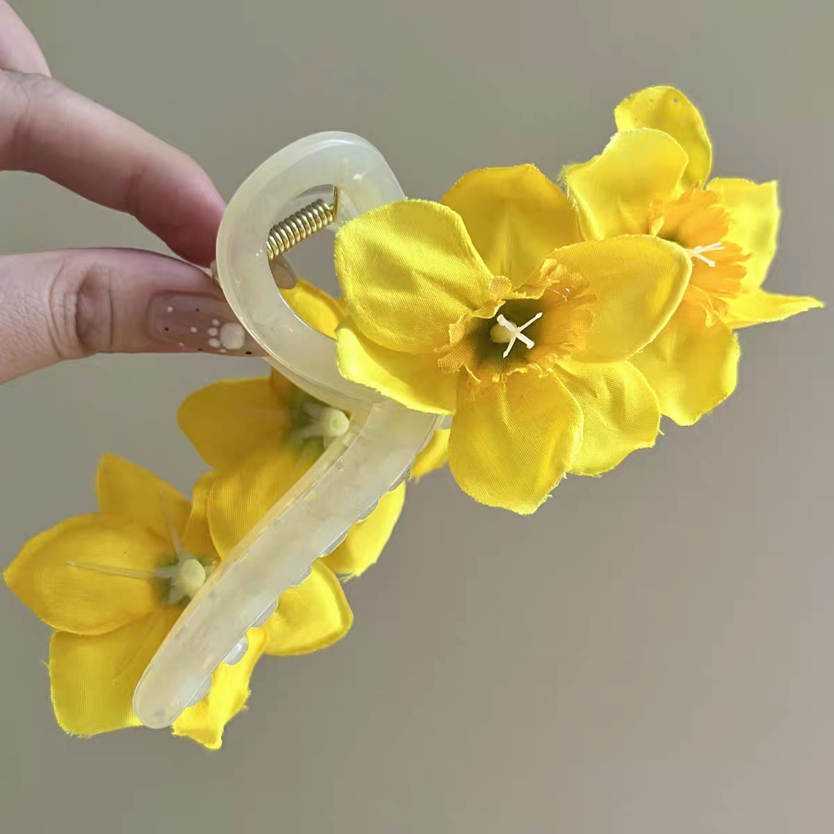 모리 스타일 노란 꽃 잡아 클립 뒤로 머리 머리 클립 달콤한 신선한 조각 머리 마무리 Bangs 사이드 클립 타이드