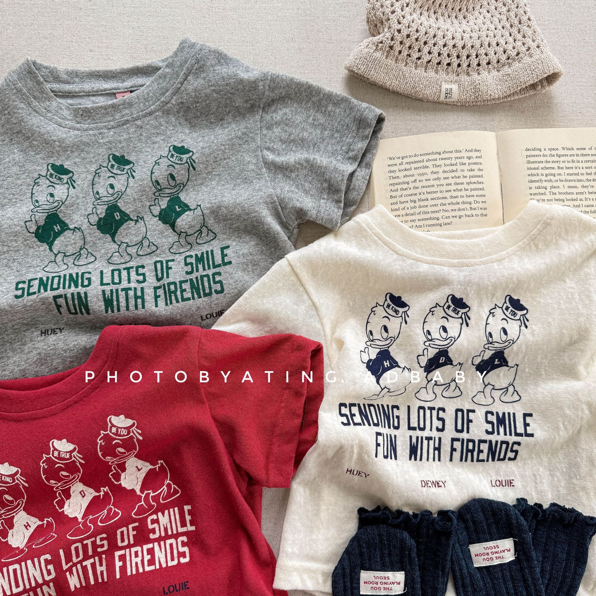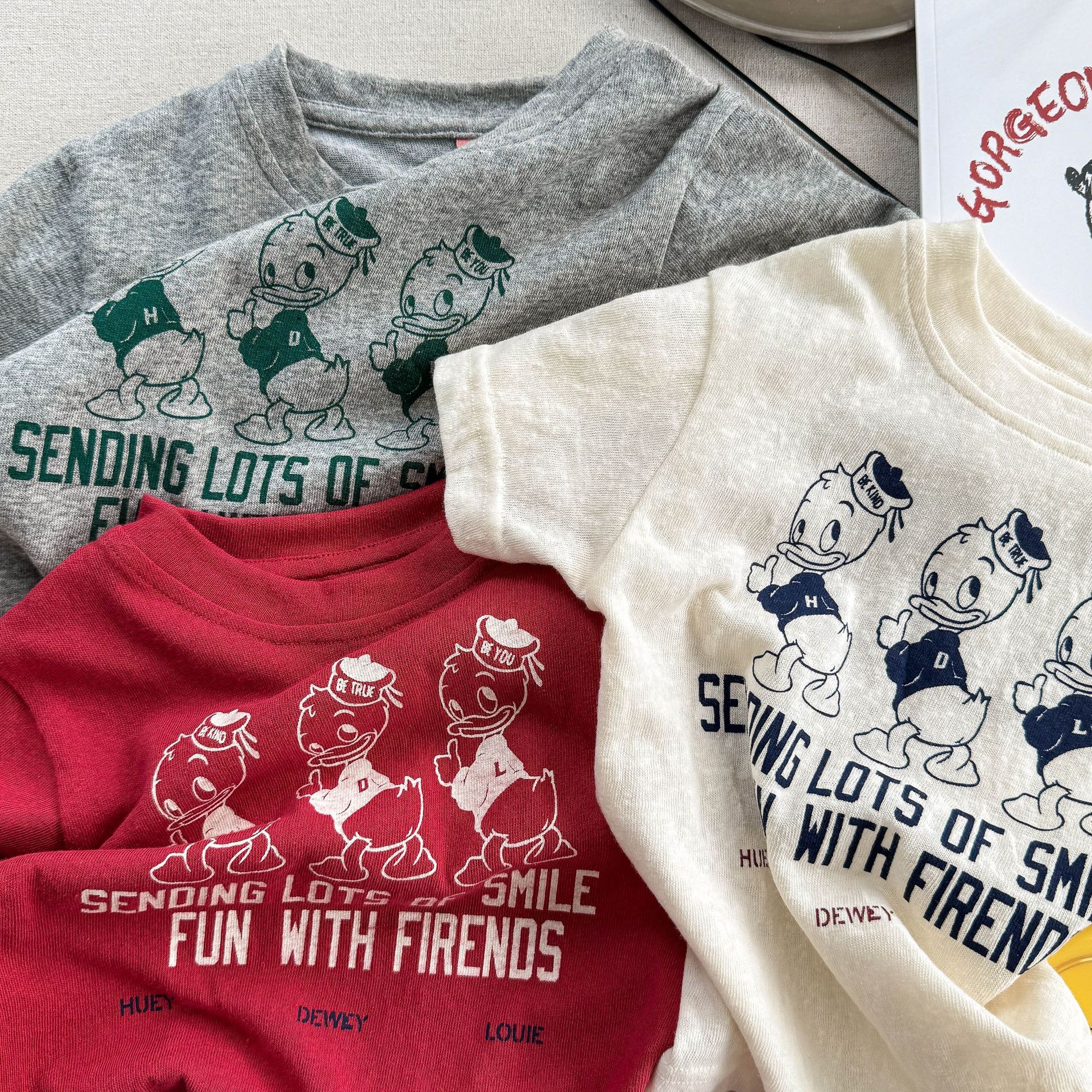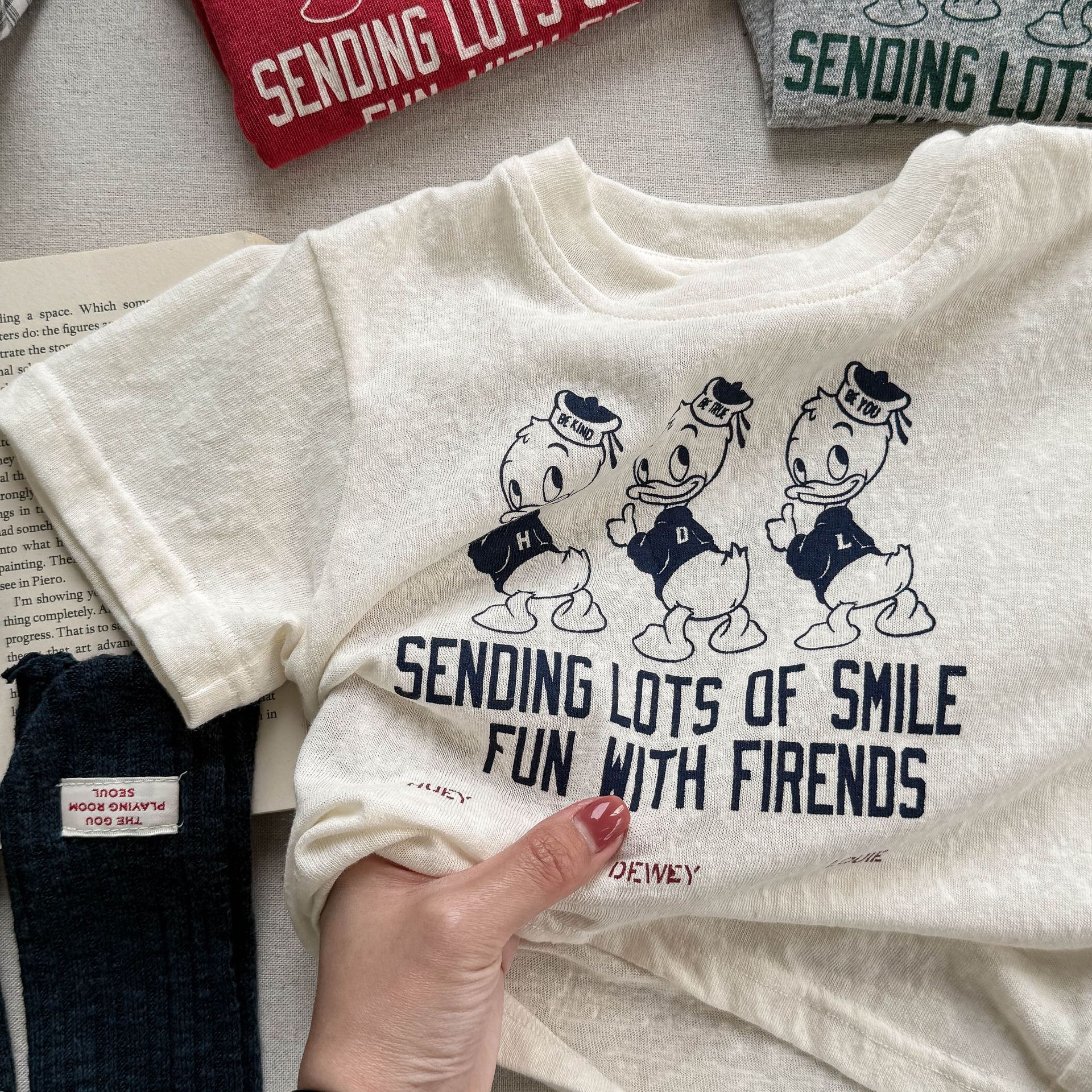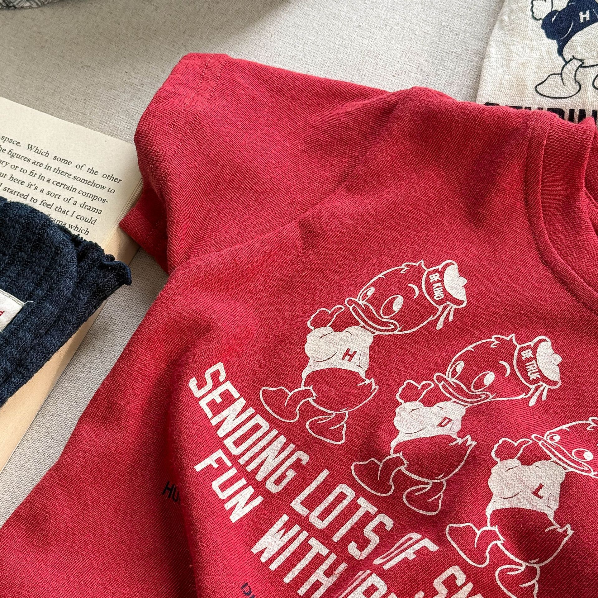 2025 아동복 여름 어린이 한국식 리액티브 프린팅 소녀 반팔 티셔츠 소년용 여름 속옷 6215