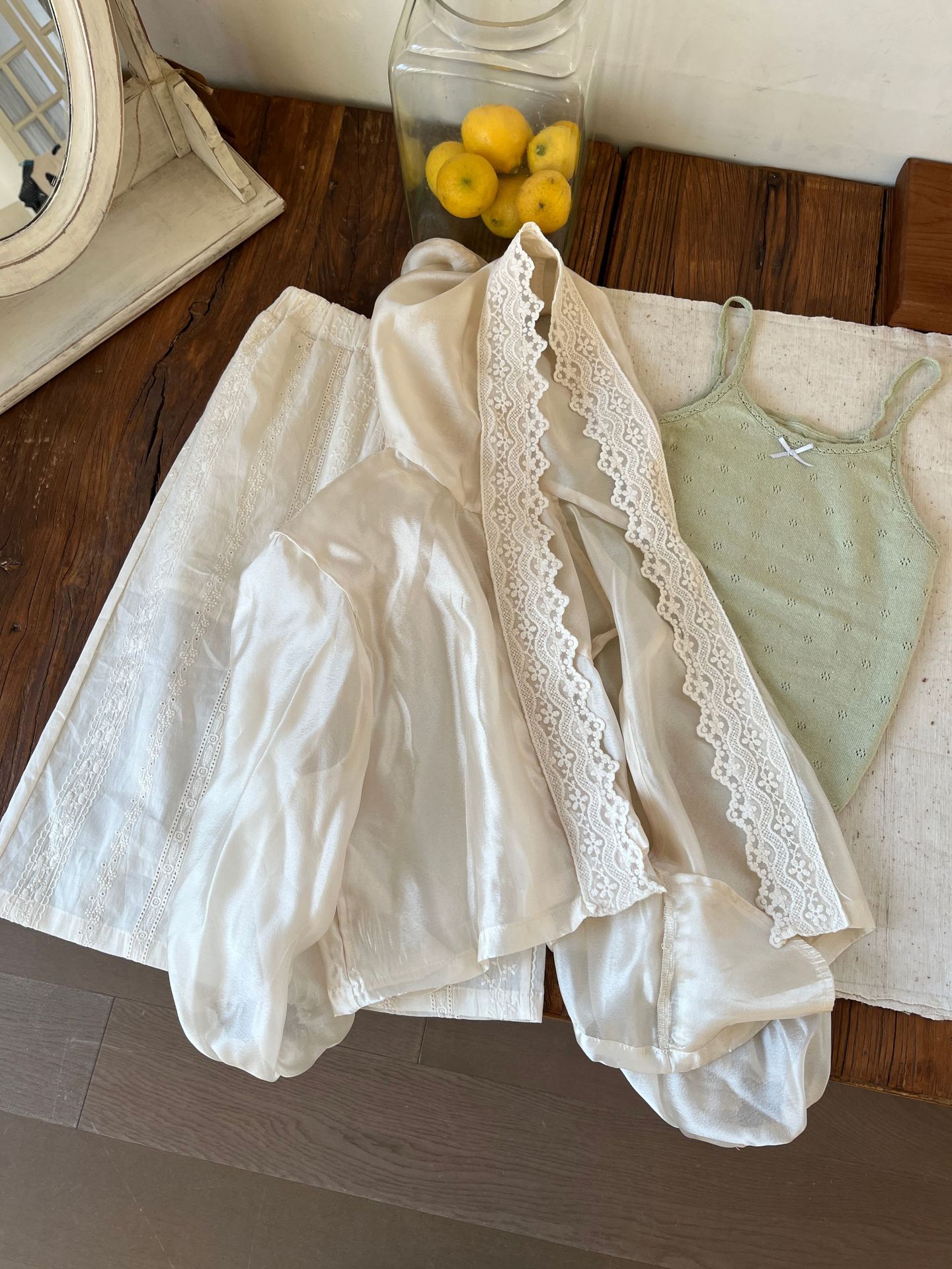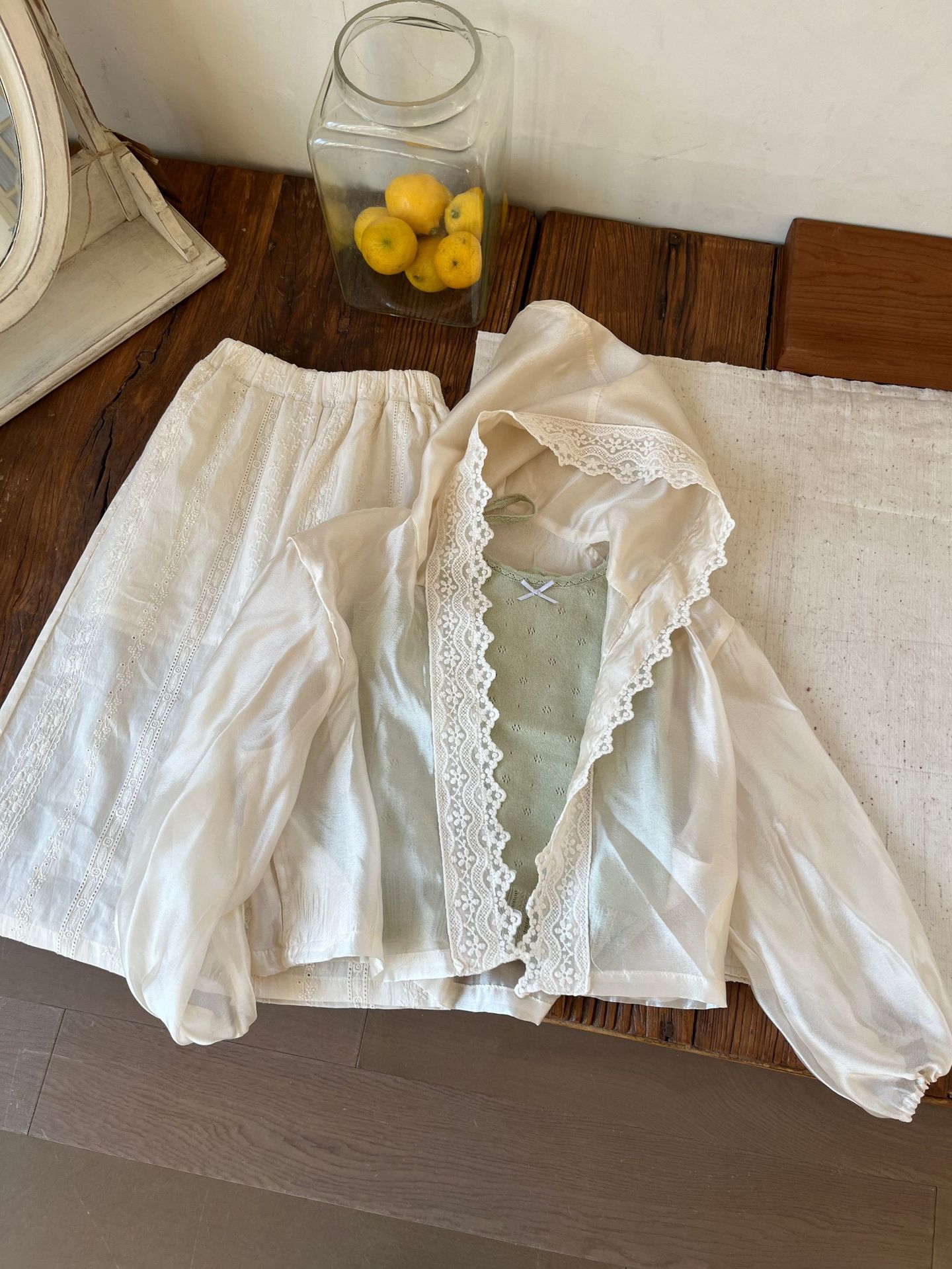 여자 선 스크린 의류 2025 여름 한국 스타일 어린이 황혼의 구름 원사 선 스크린 의류 아기의 레이스 레이스 긴 소매 코트